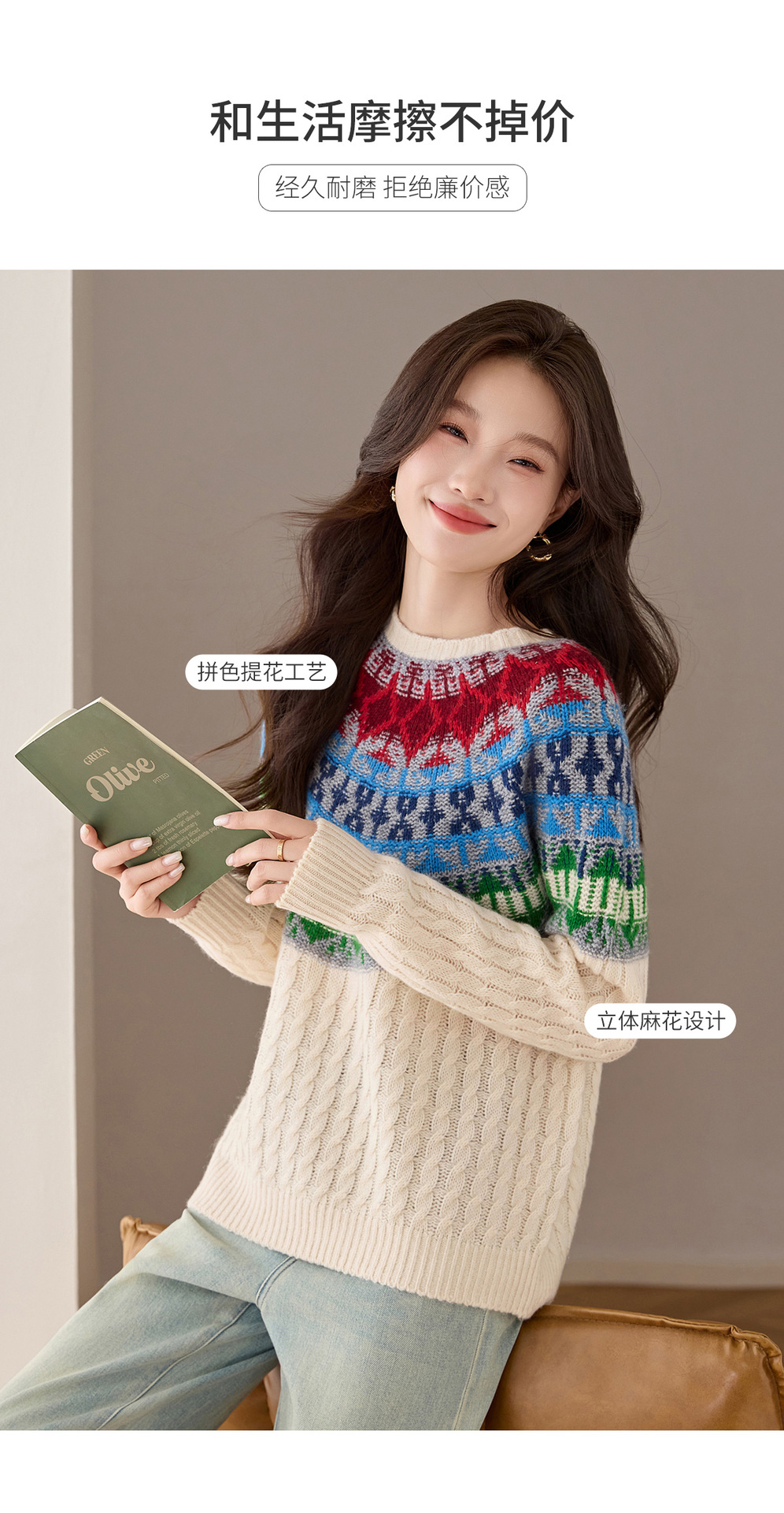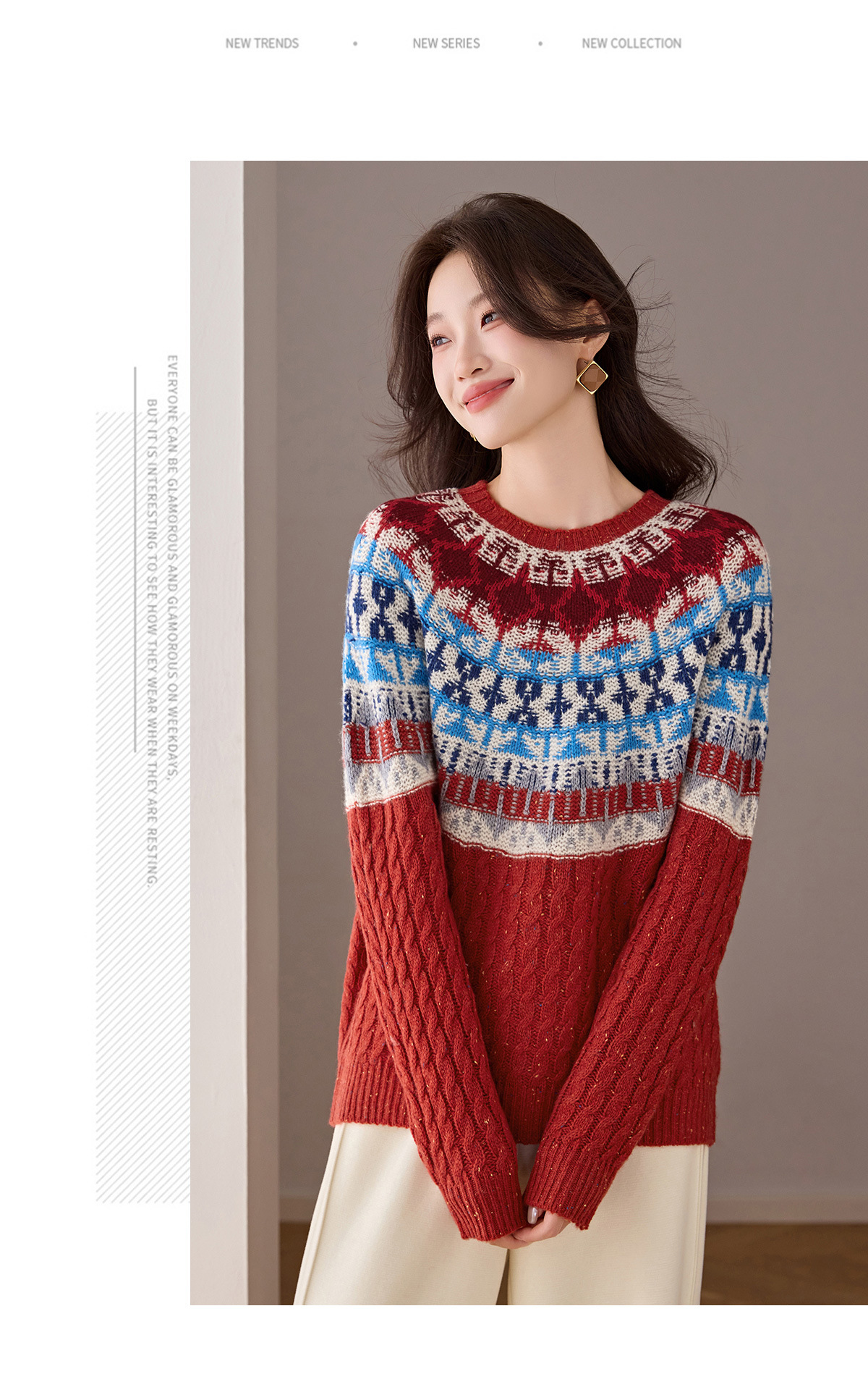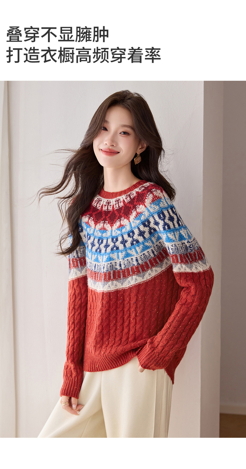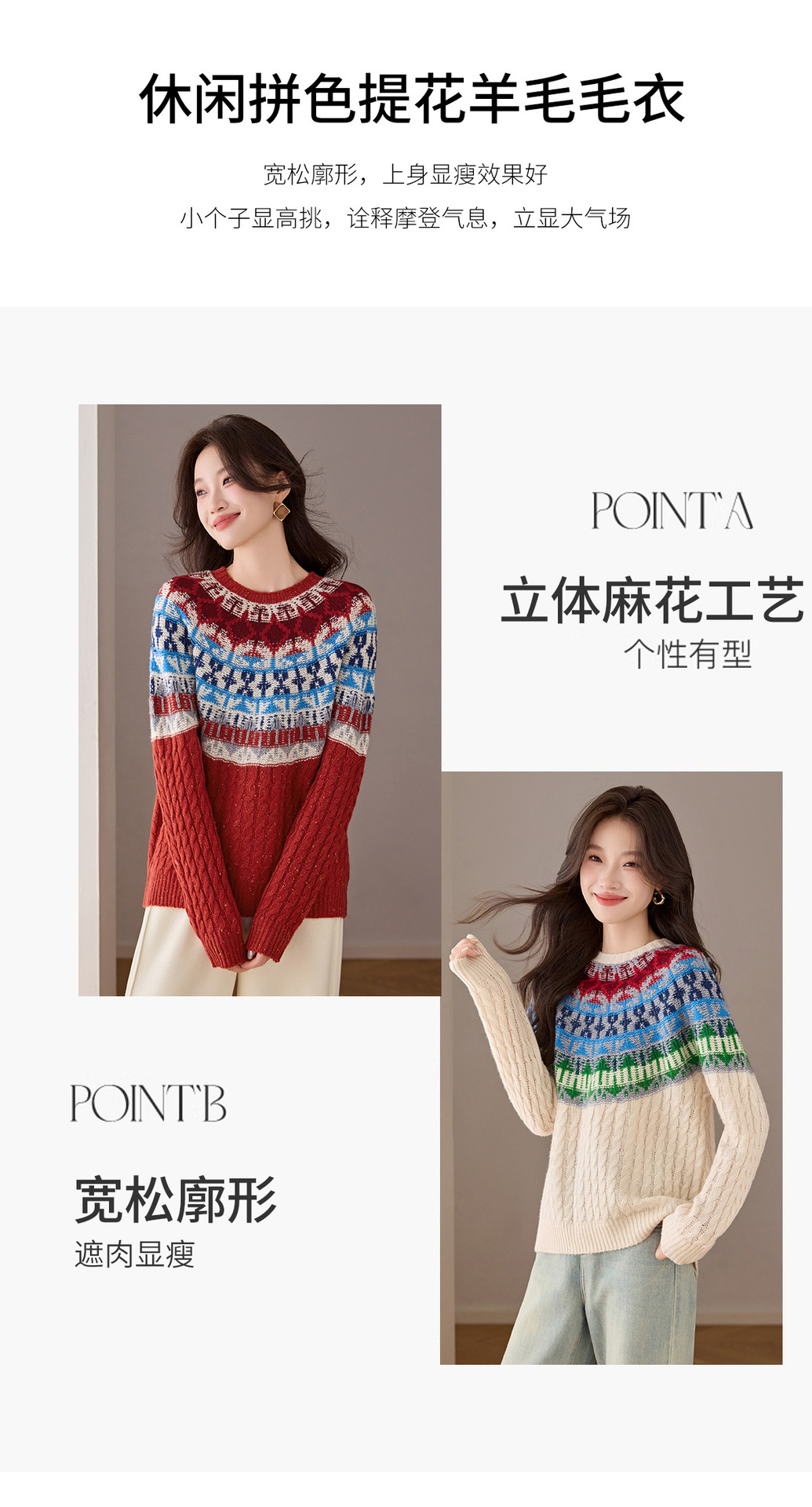 QF 20-1577复古花纹毛衣羊毛减龄小衫