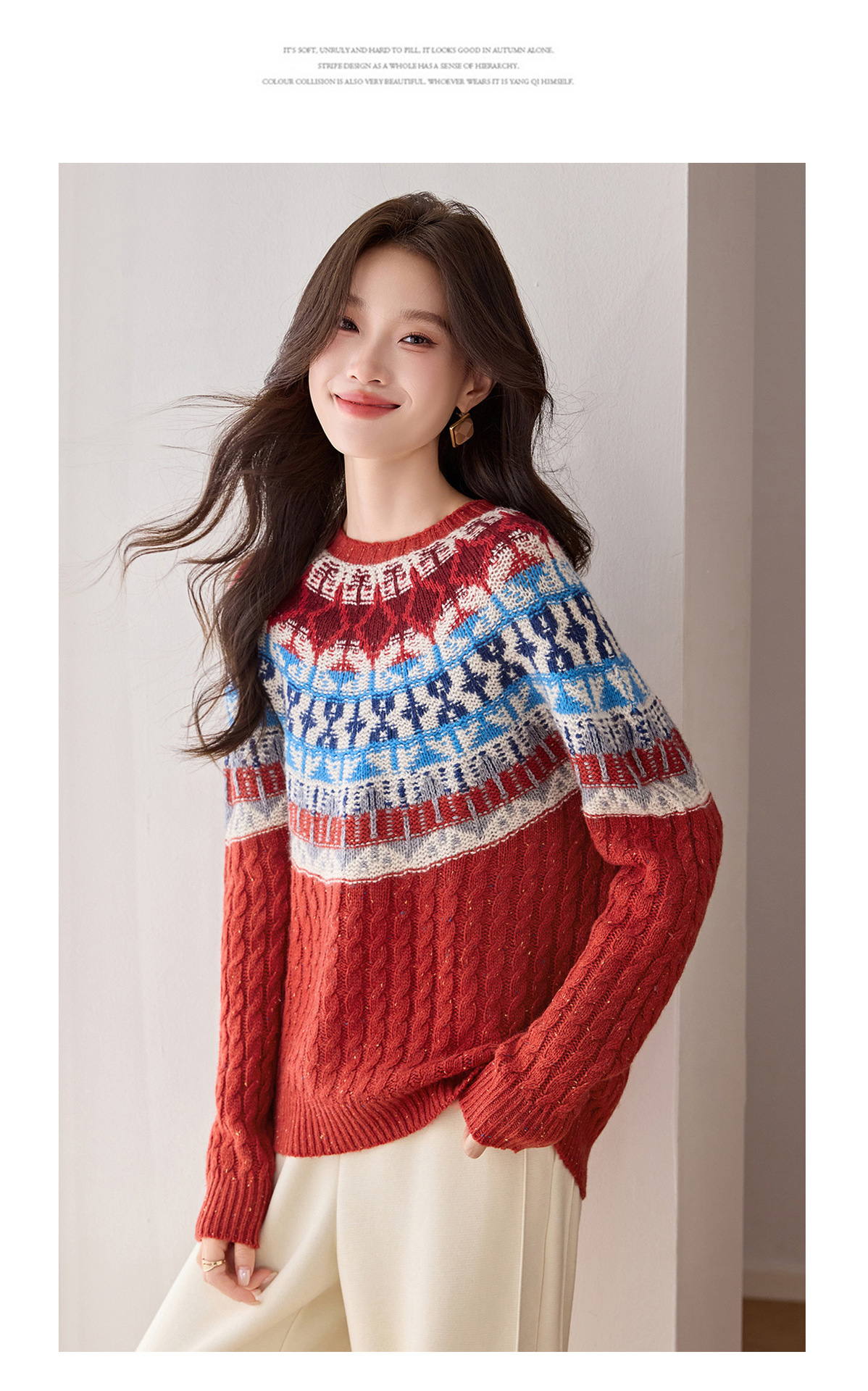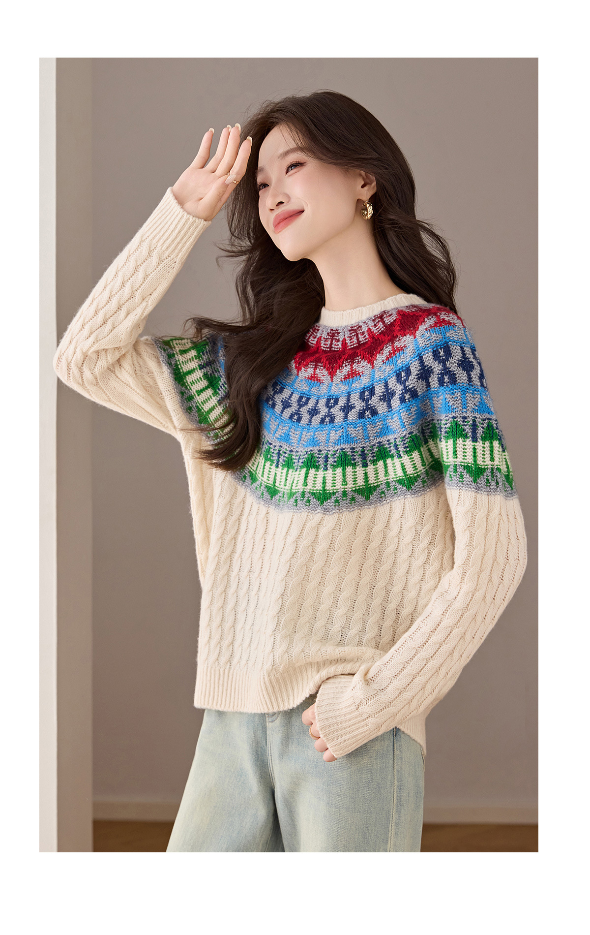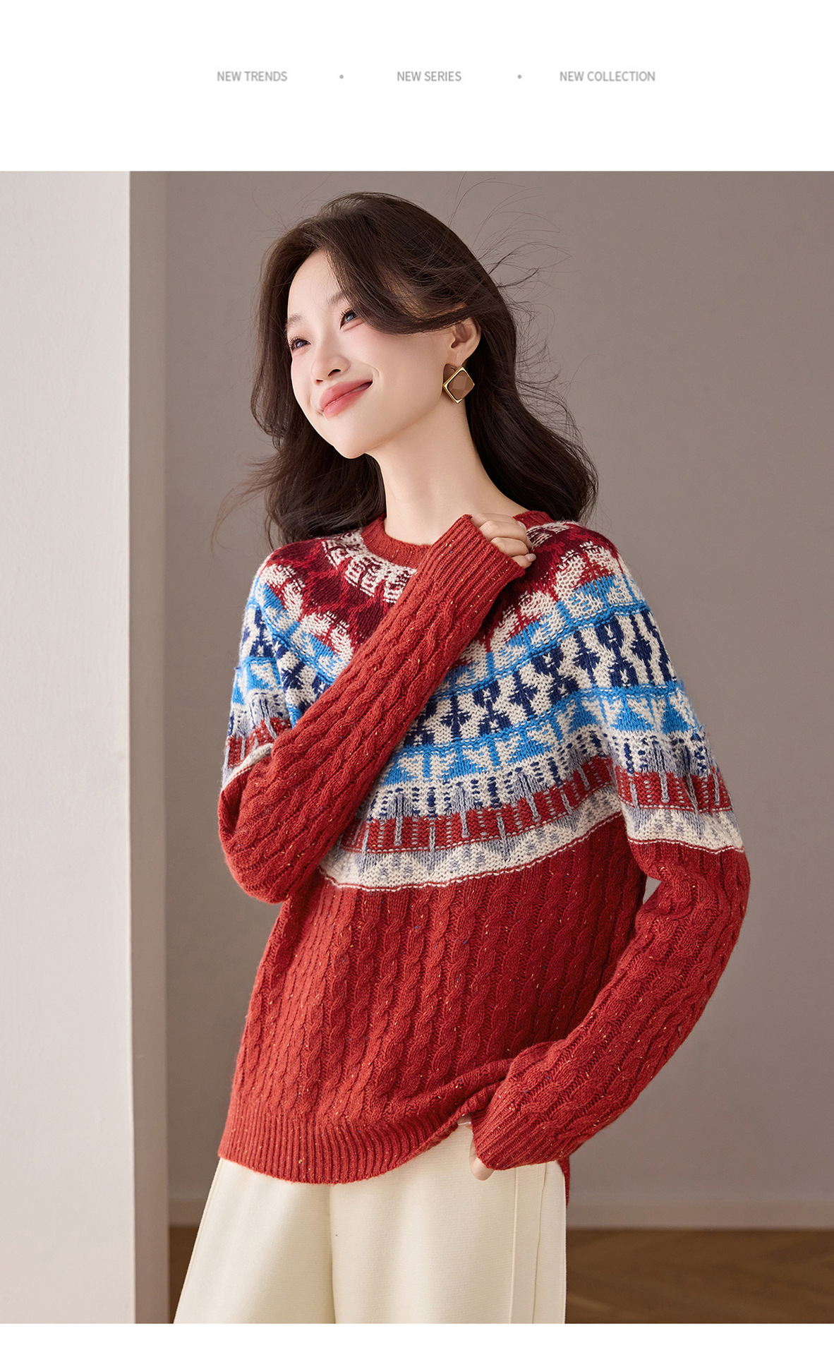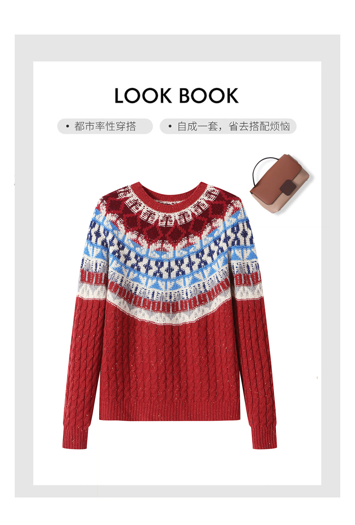 QF 20-1577复古花纹毛衣羊毛减龄小衫