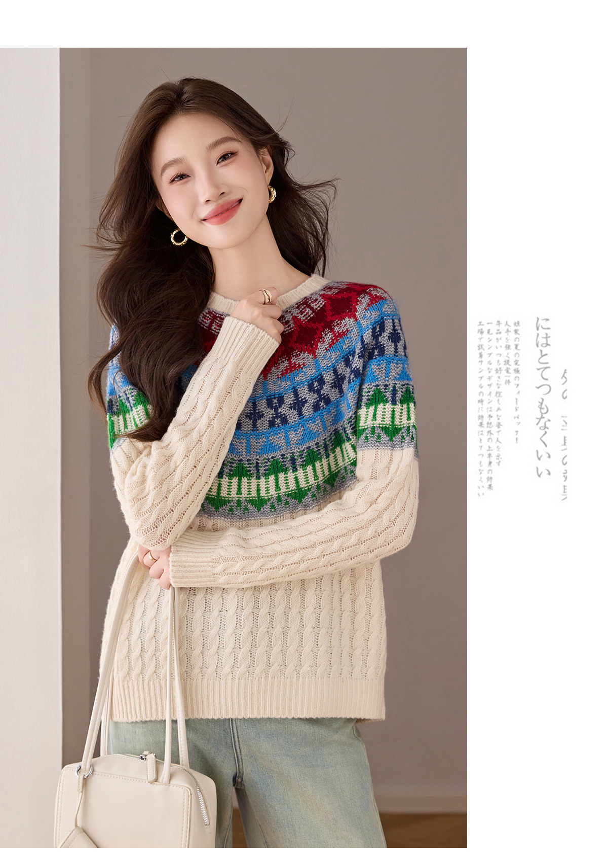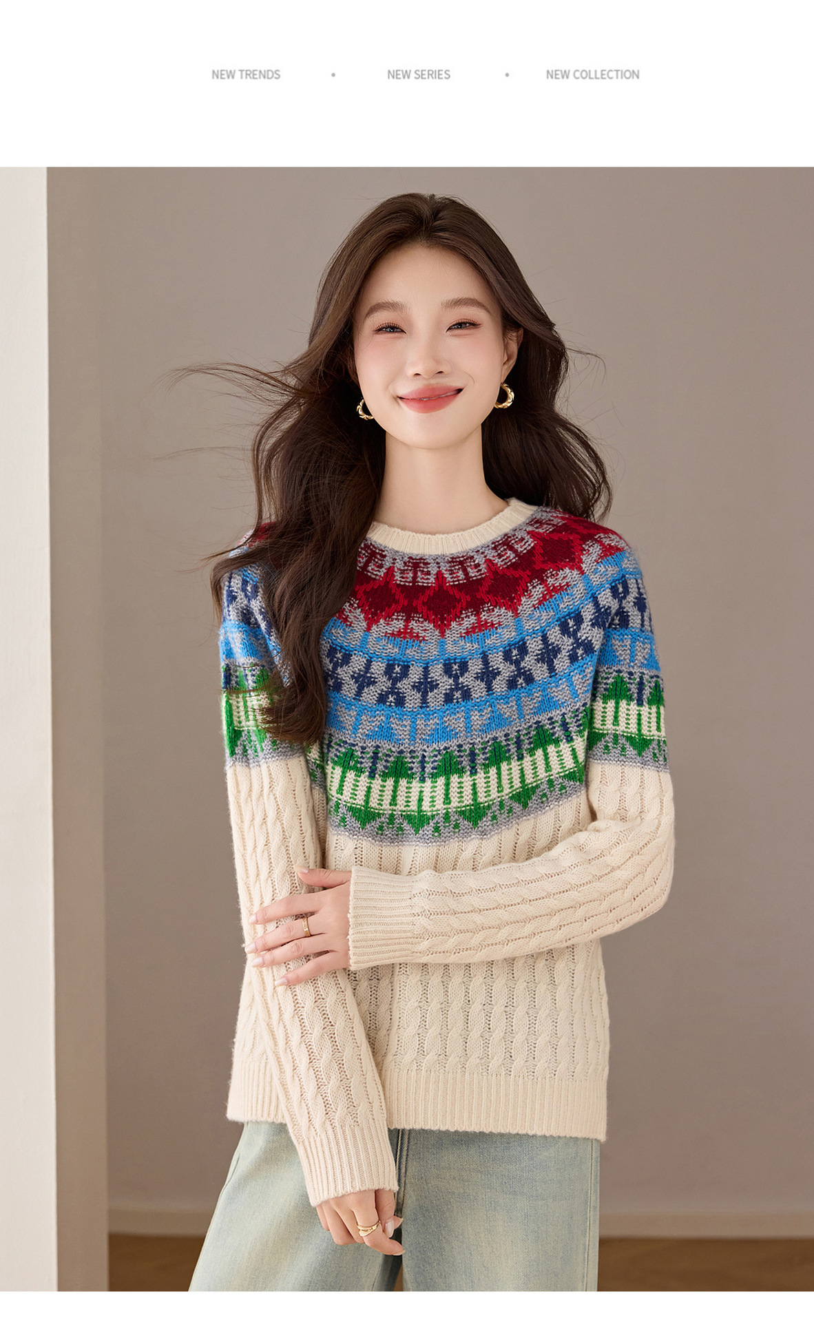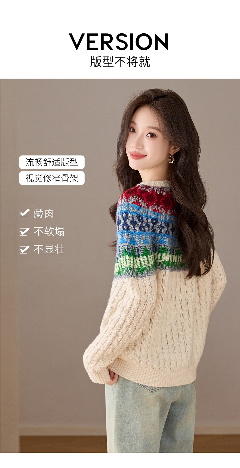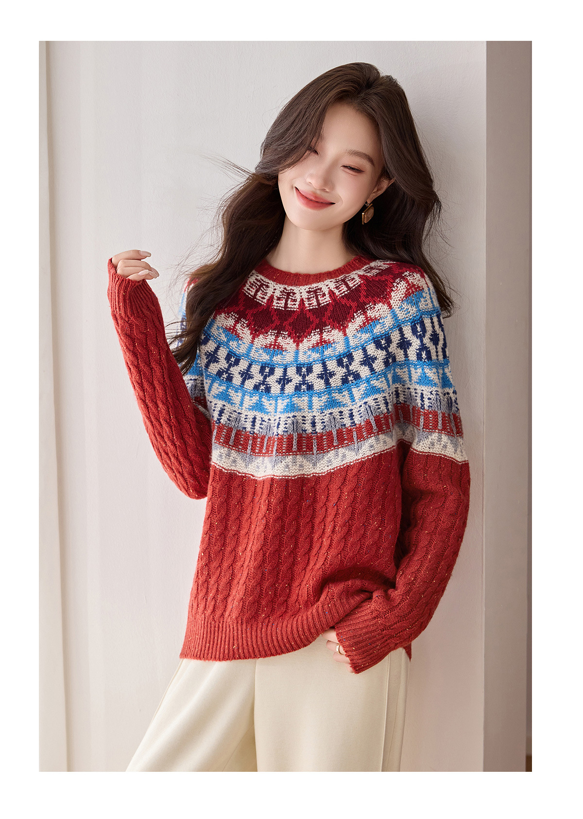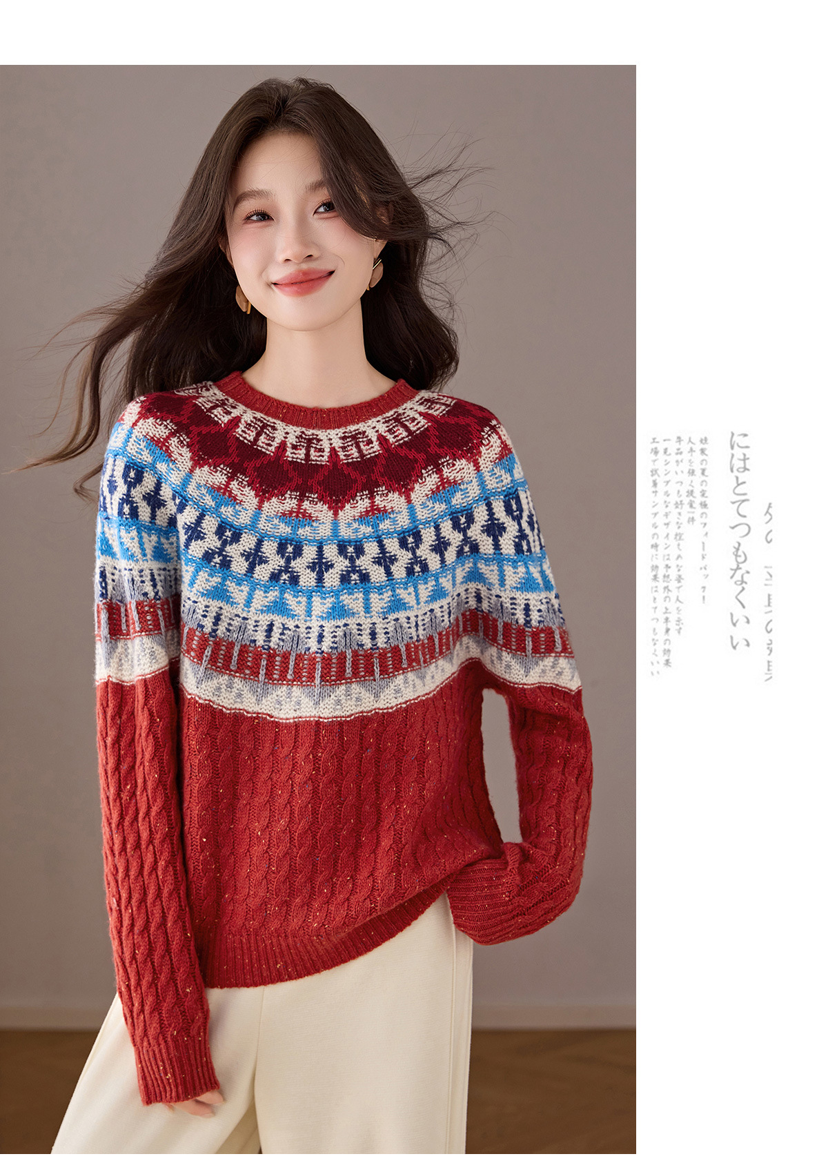 QF 20-1577复古花纹毛衣羊毛减龄小衫
