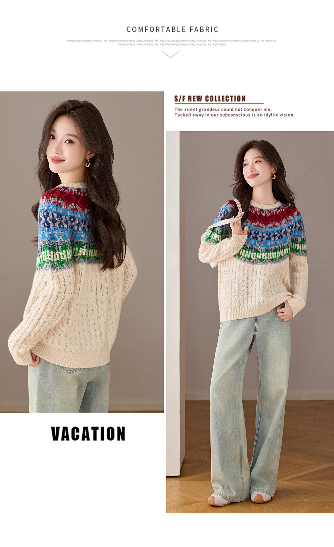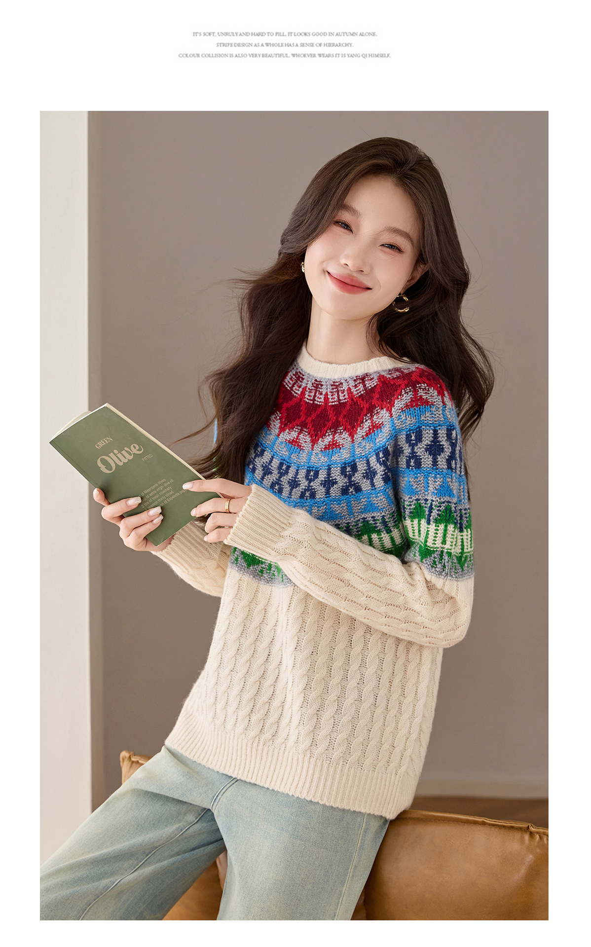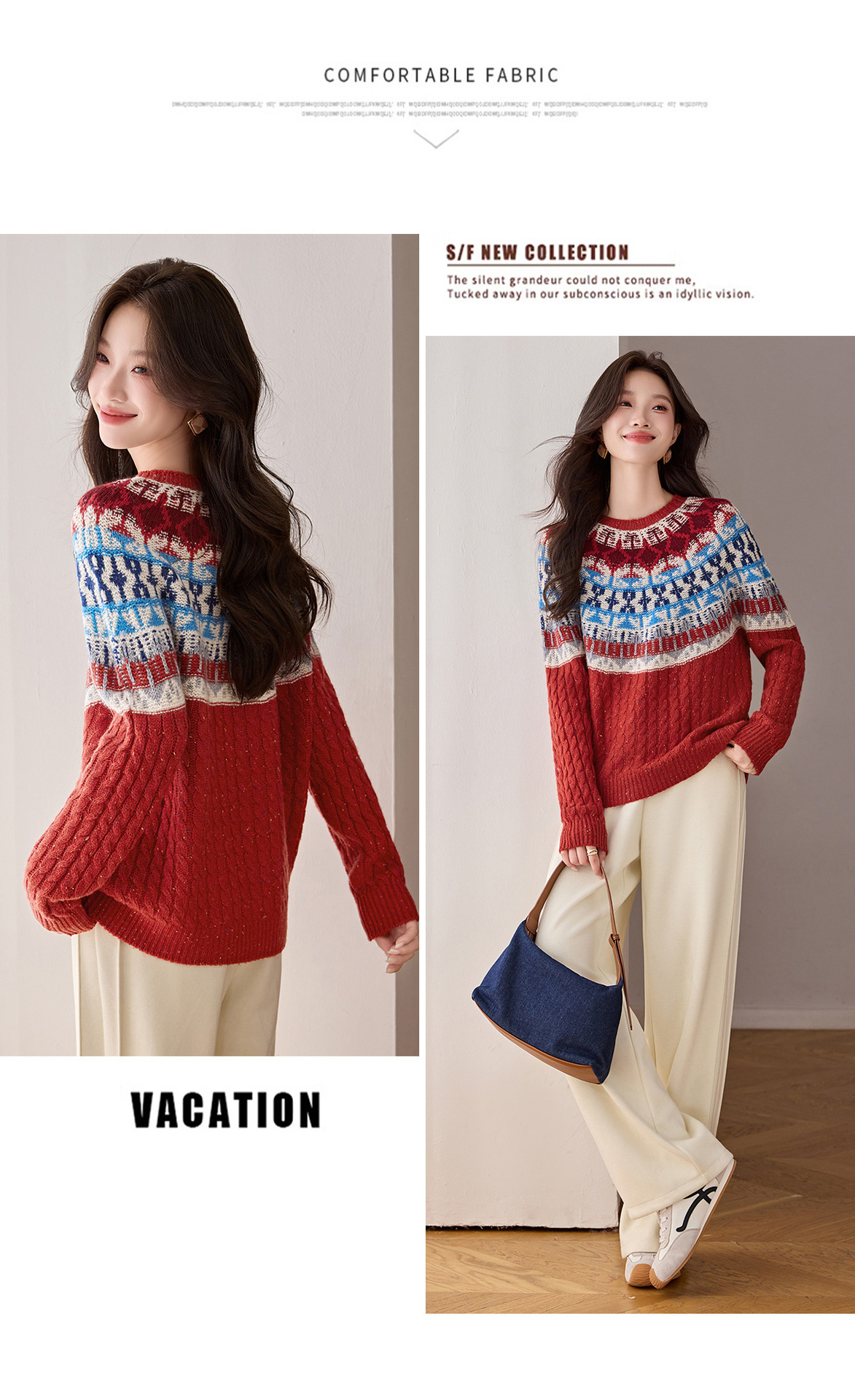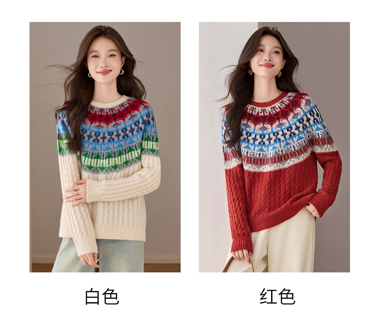 QF 20-1577复古花纹毛衣羊毛减龄小衫