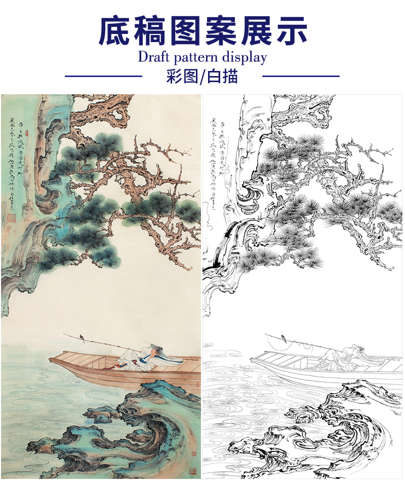 任重花鸟工笔画白描底稿《停棹图》临摹勾线高清打印稿RD13