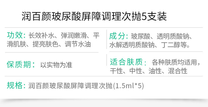 【门店直发 支持同城配送】润百颜 玻尿酸屏障调理次抛精华液1.5ml*5支(包装随机发货)