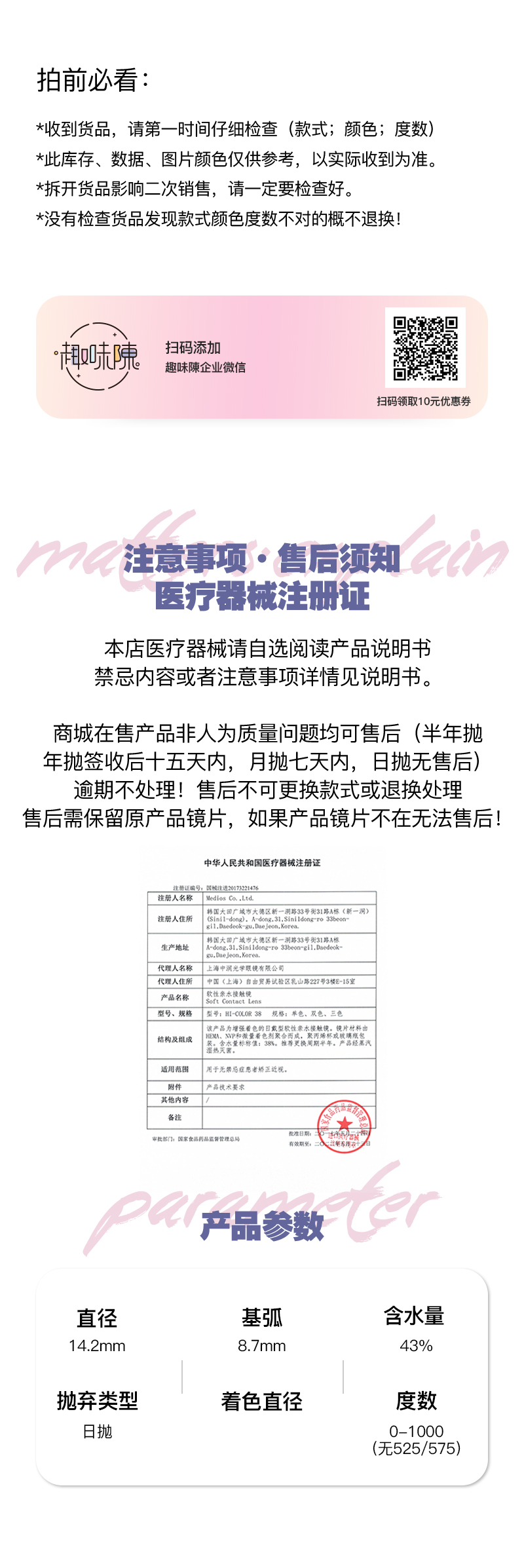 Bollycon:雀石灰(日抛)一盒十片,度数不同需买两盒