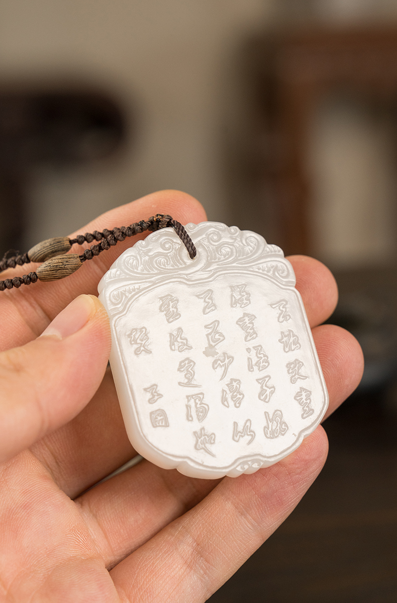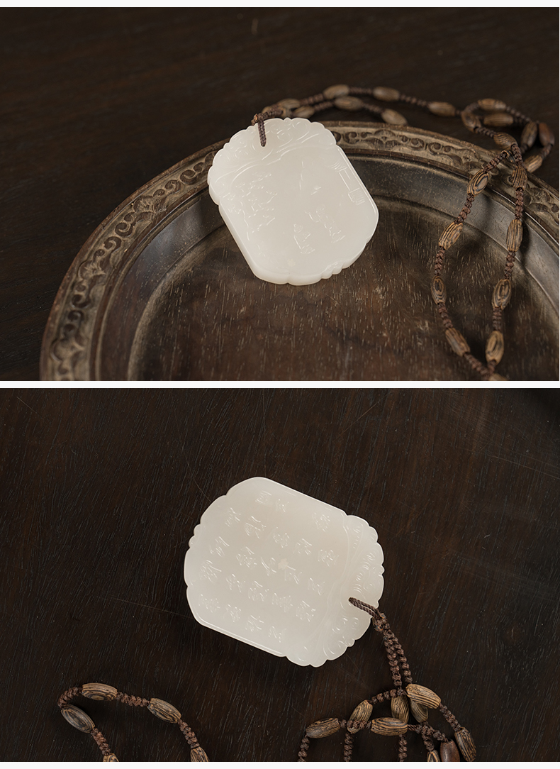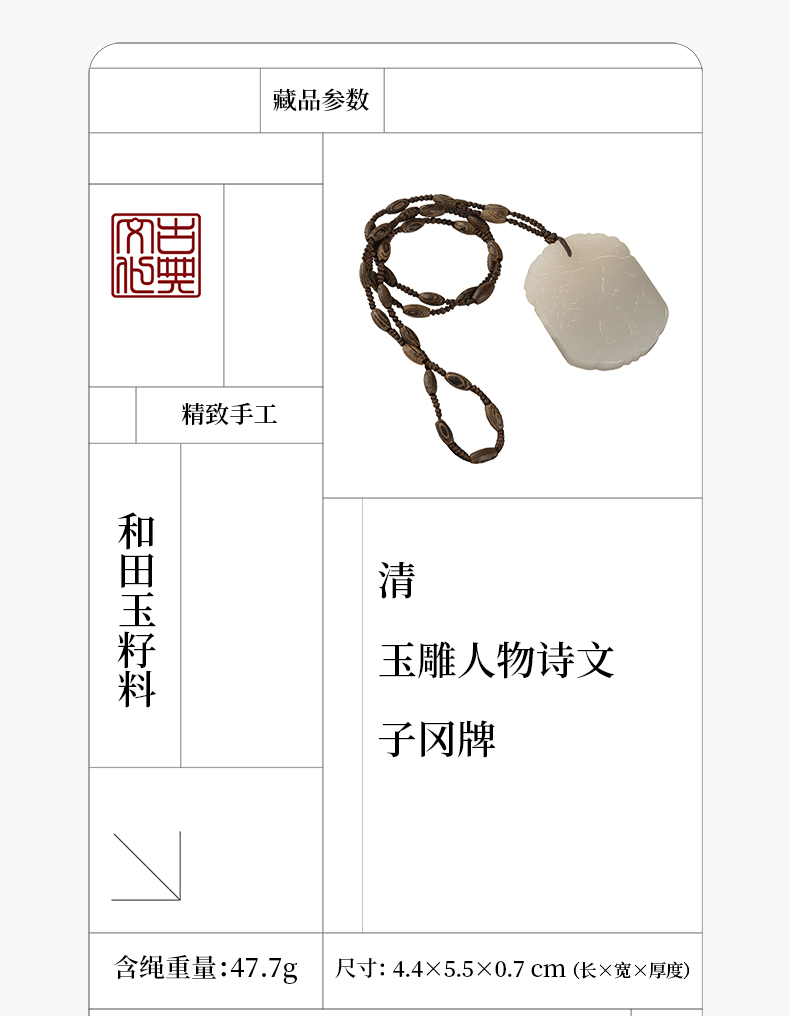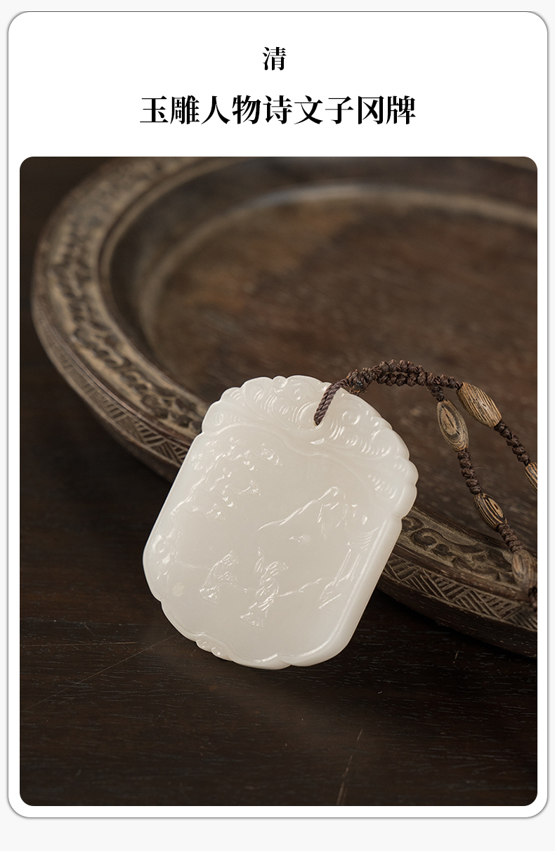 清 玉雕人物诗文子冈牌