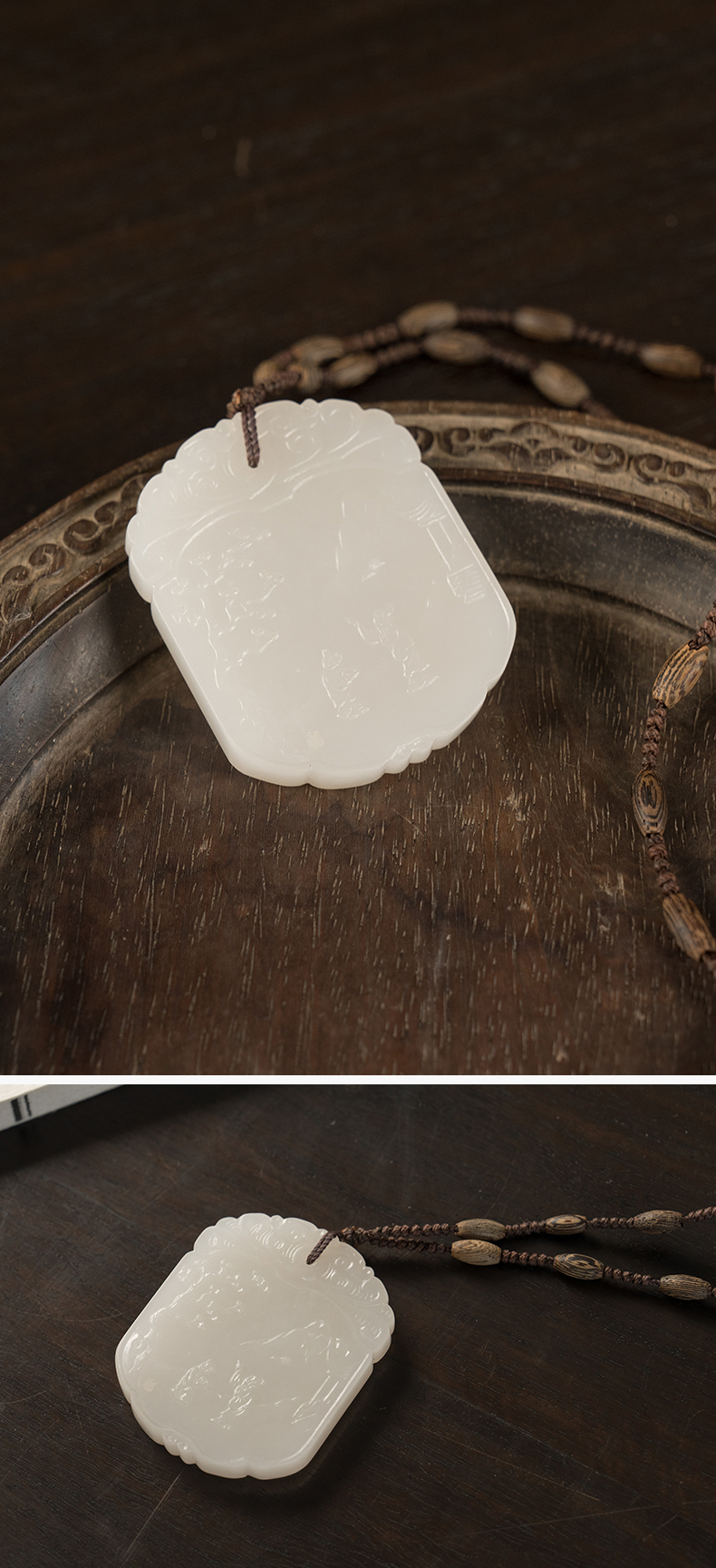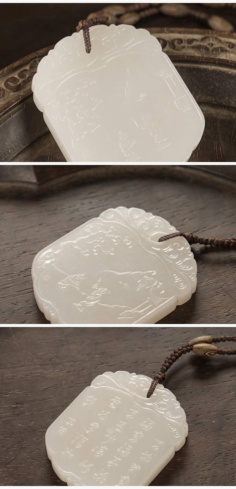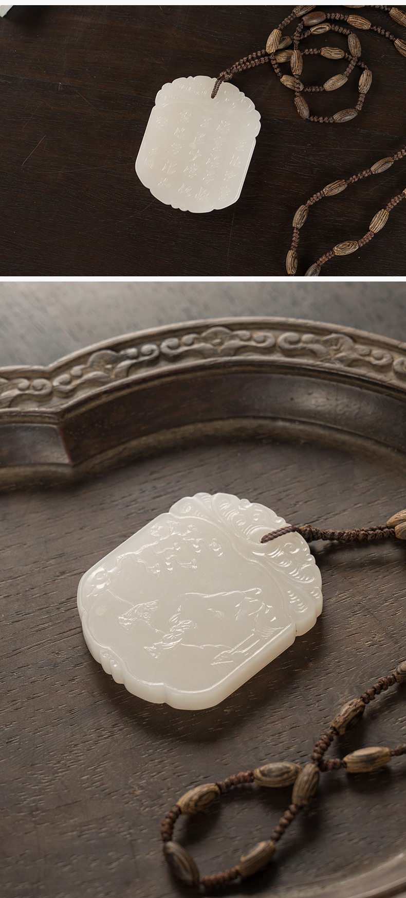 清 玉雕人物诗文子冈牌