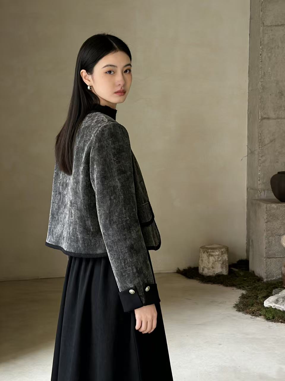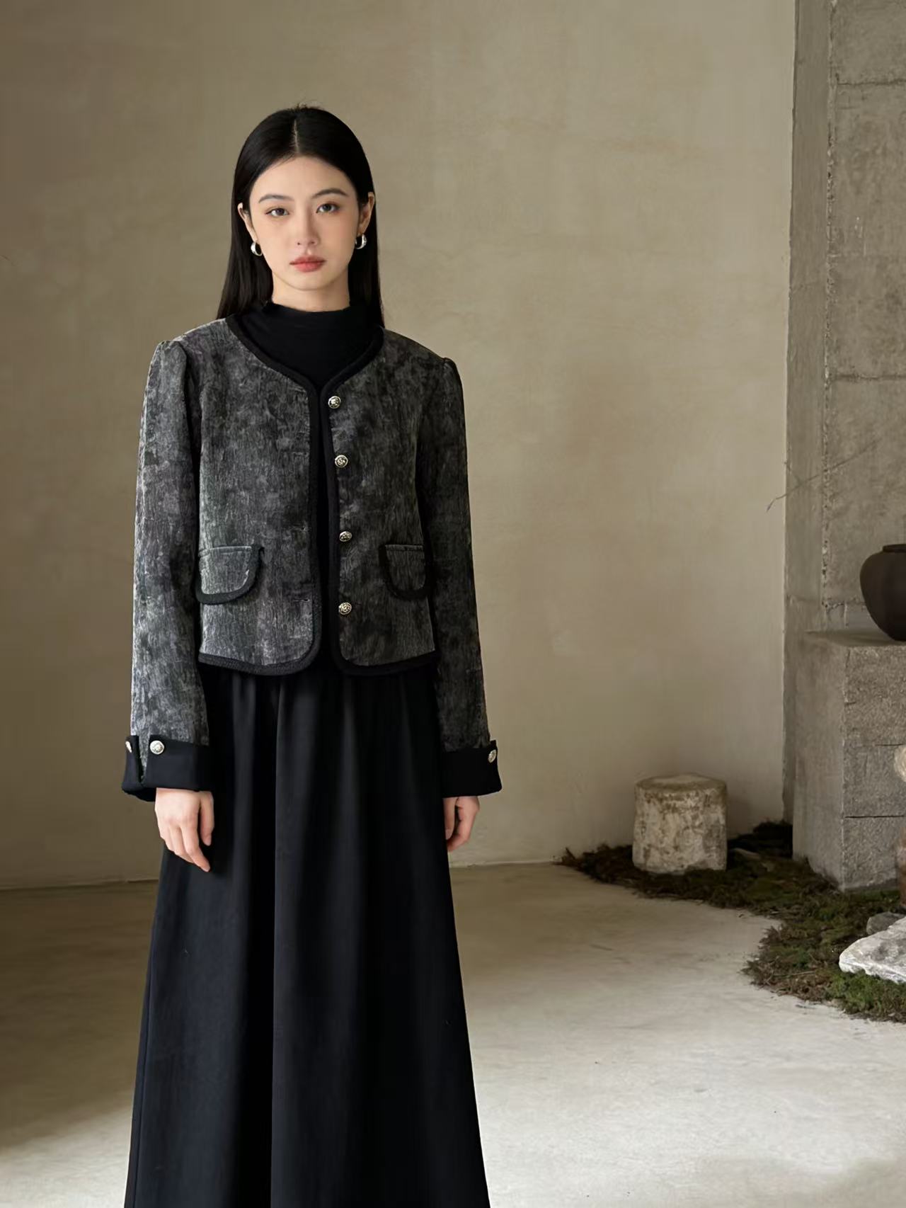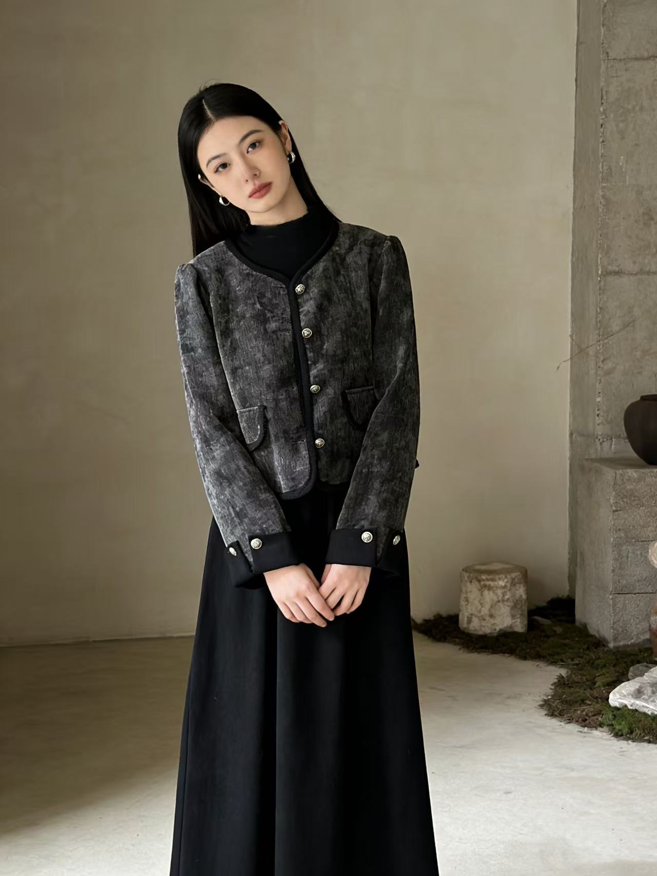 活动爆款~【自营】衣周期~(二件套)Q88小香风复古丝绒外套➕黑色打底连衣裙套装-喜出
