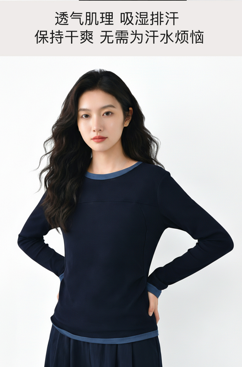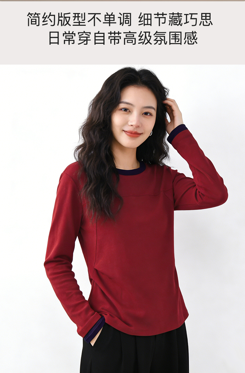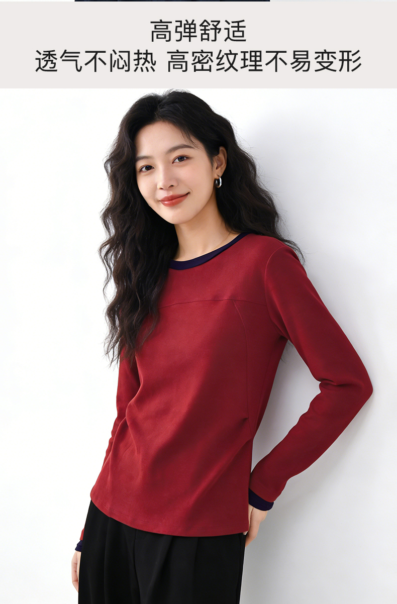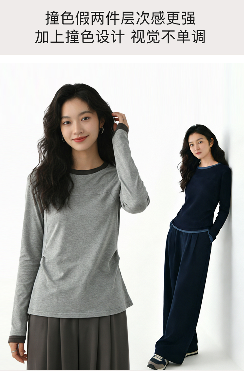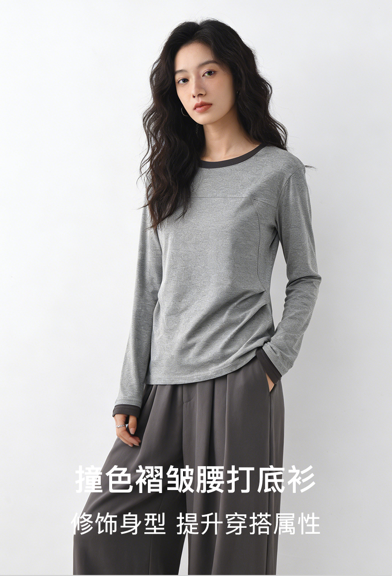 【秒杀】女士撞色褶皱腰打底衫C06C76