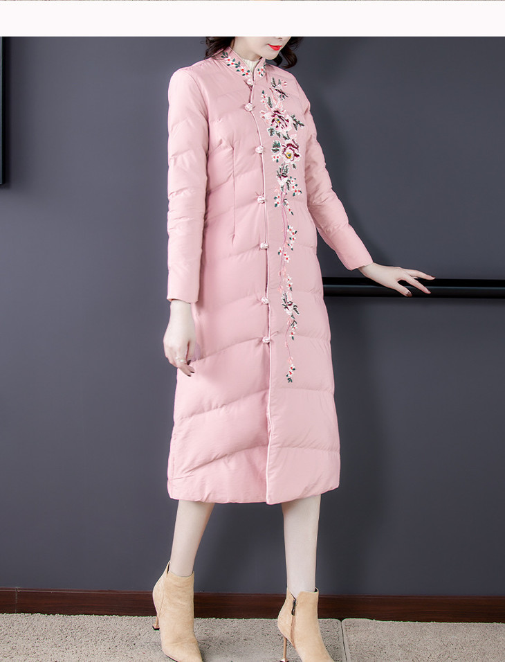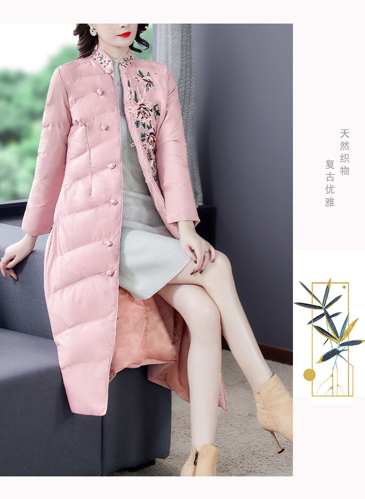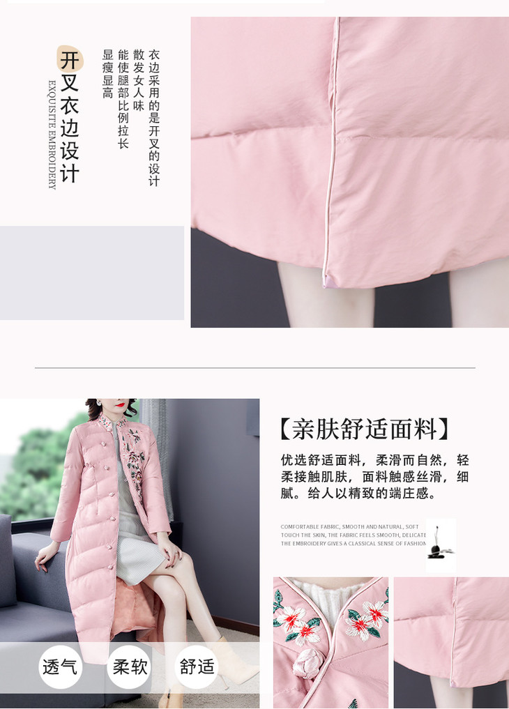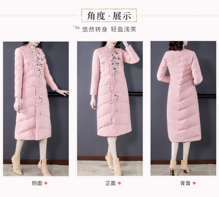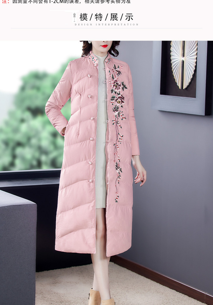 QNY-8920冬季新款重工刺绣长袖盘扣中长款棉服