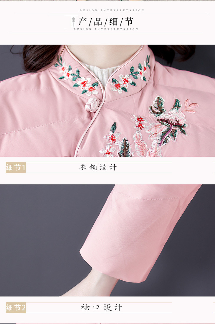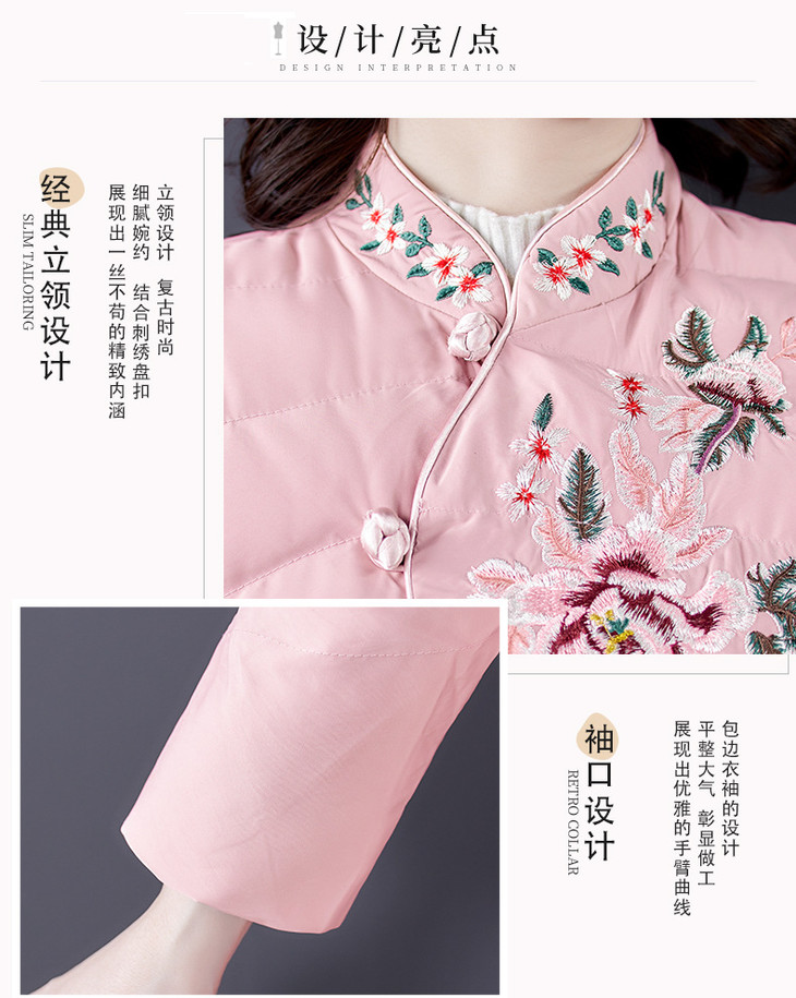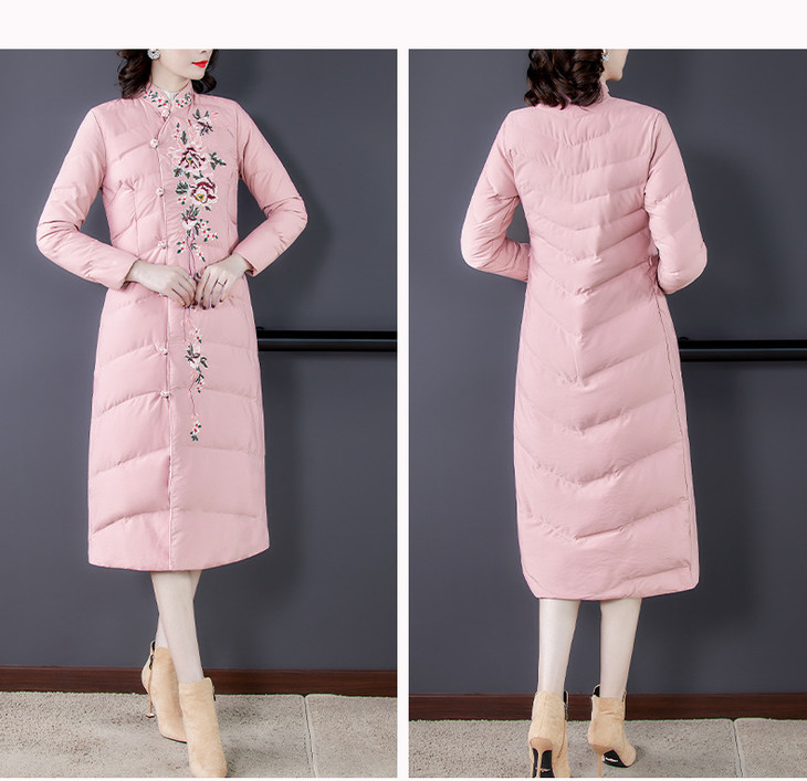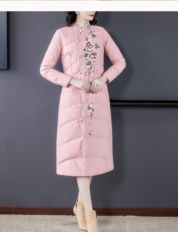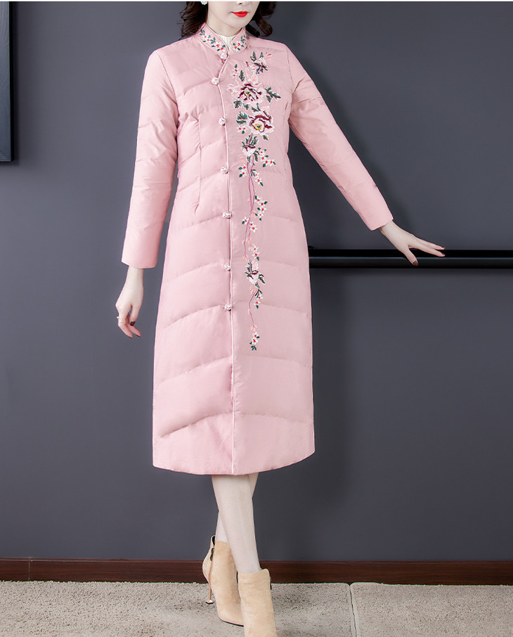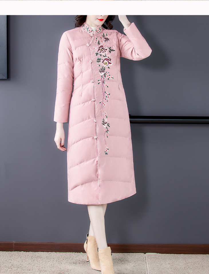QNY-8920冬季新款重工刺绣长袖盘扣中长款棉服