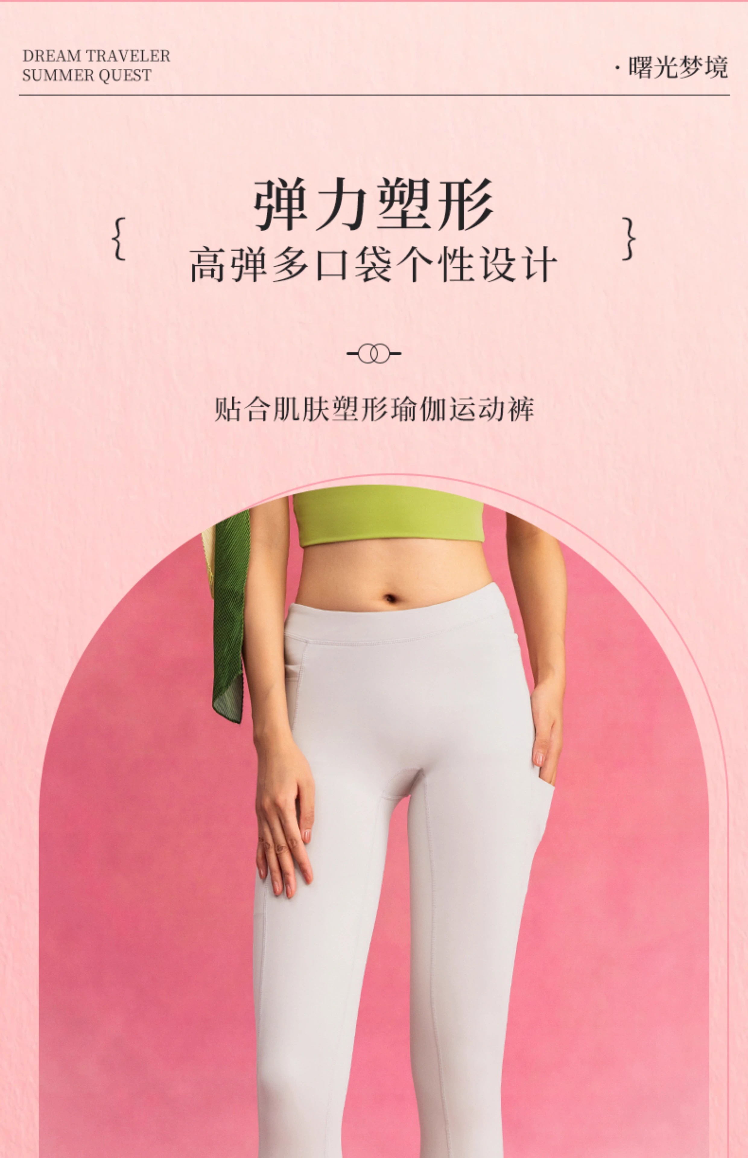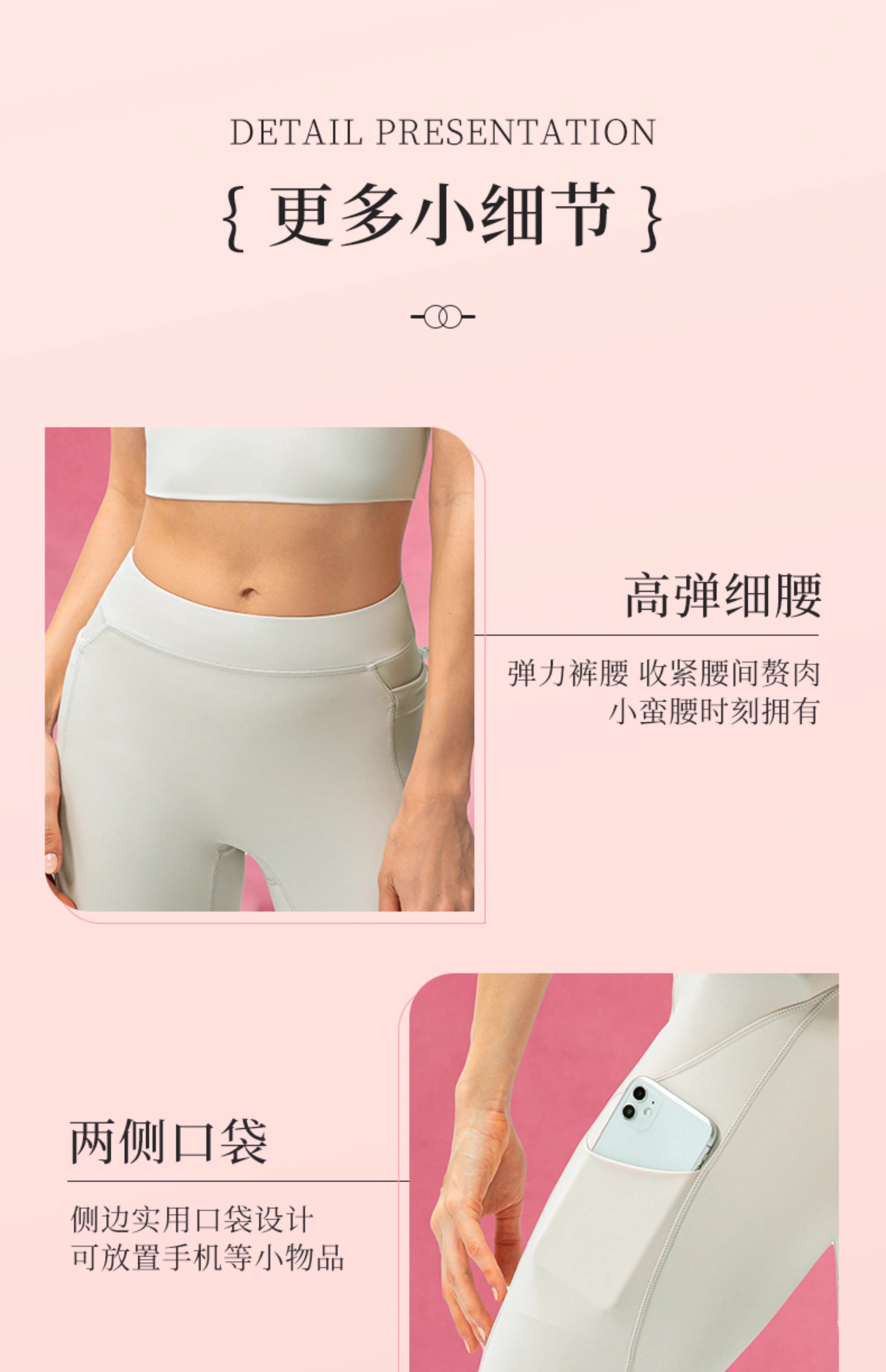 跃牌【欲动春风】系列毛巾扣锦纶裸感无缝高弹紧身运动长裤22372(此款为欧码,建议拍小一码!)