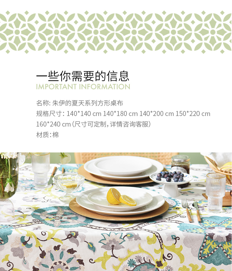 朱伊的夏天系列方形桌布餐厅轻奢高级桌布