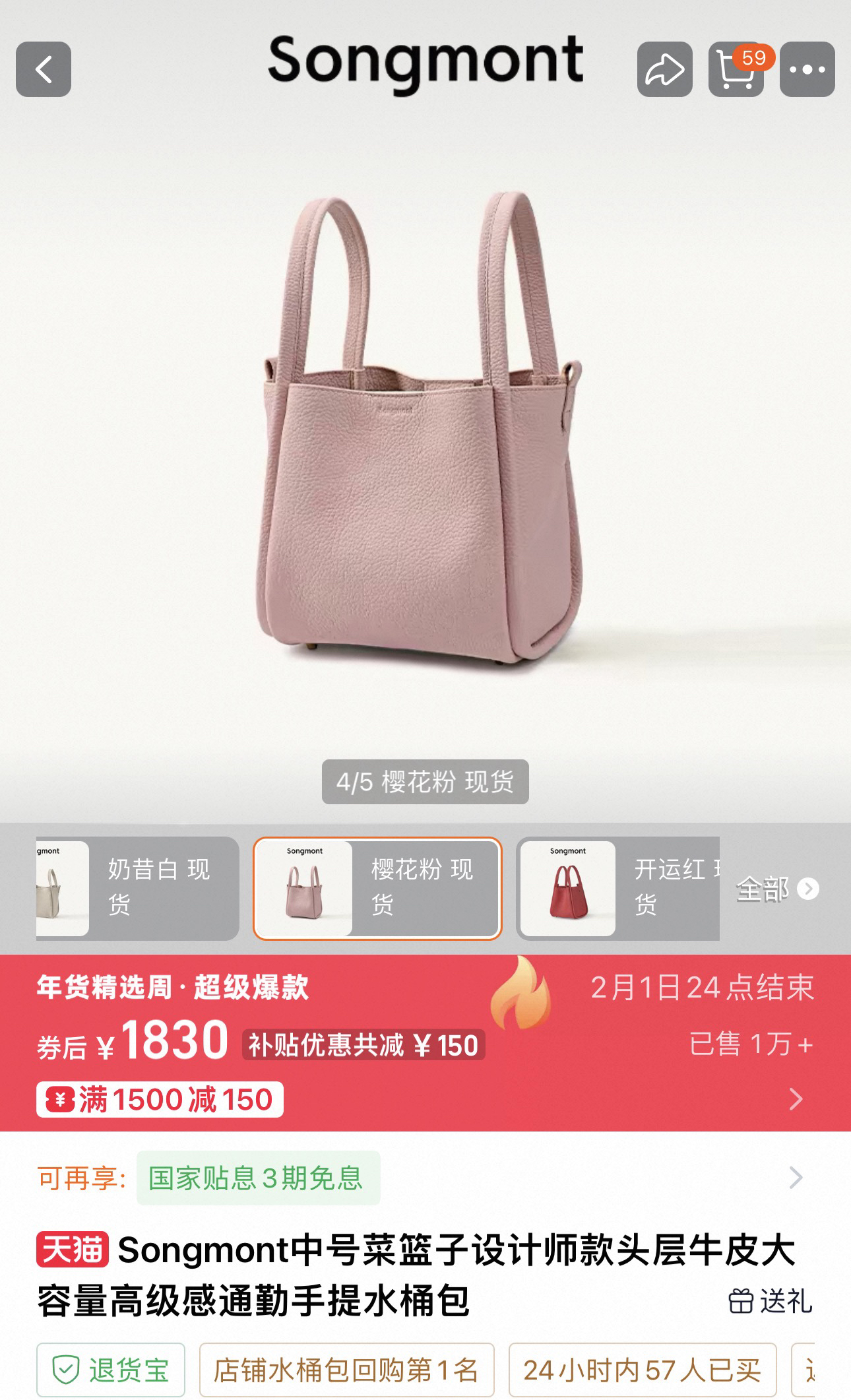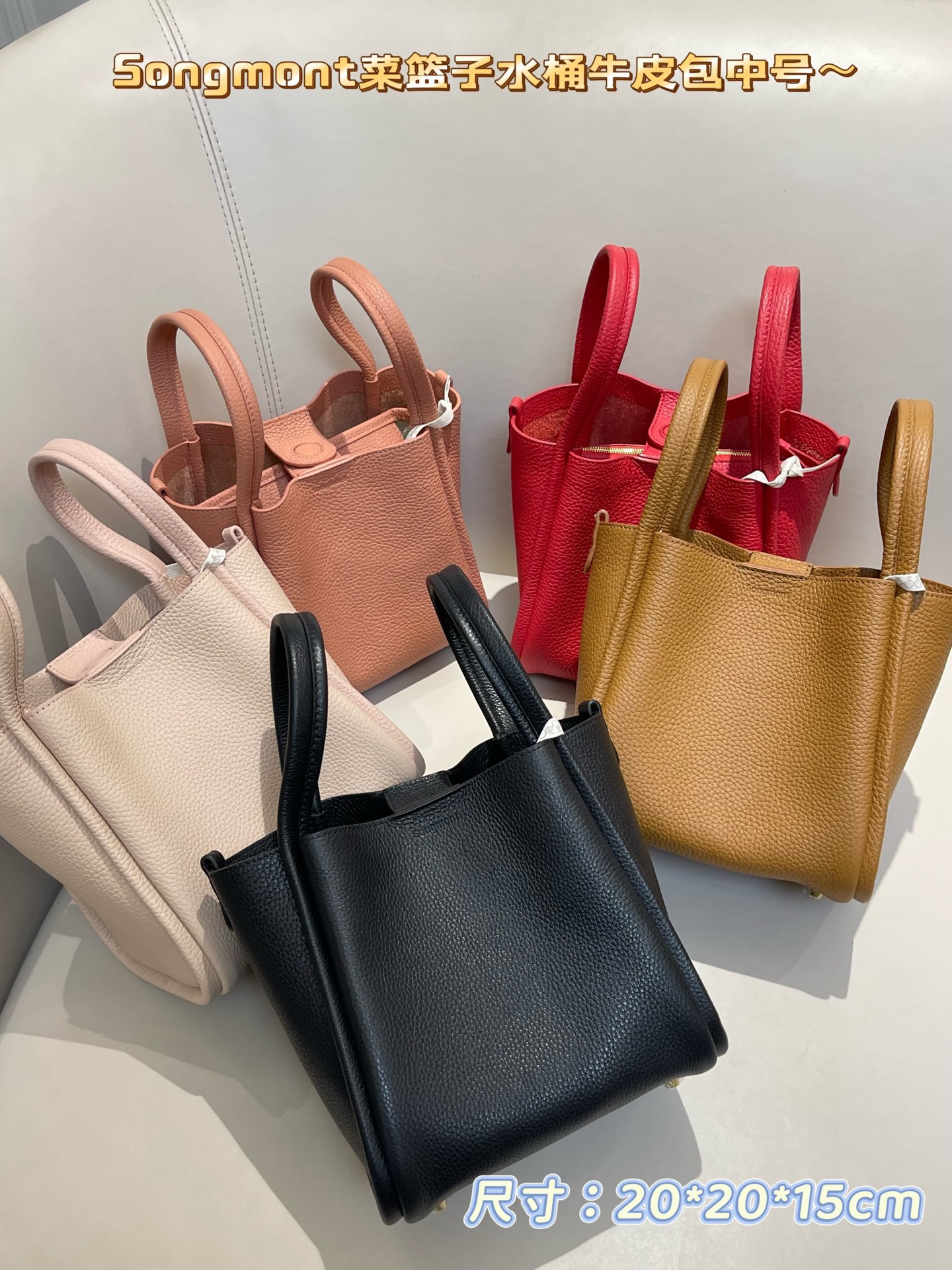 💰599顺丰包邮 已入库 奥莱订单余裁 市面最高版本,正品Songmont女士菜篮子水桶牛皮包~官网在售1830 已热销10000➕🔥 其火爆程度不用多说了!同步5⃣️全色,可作为年货,自留款 可直接送人!