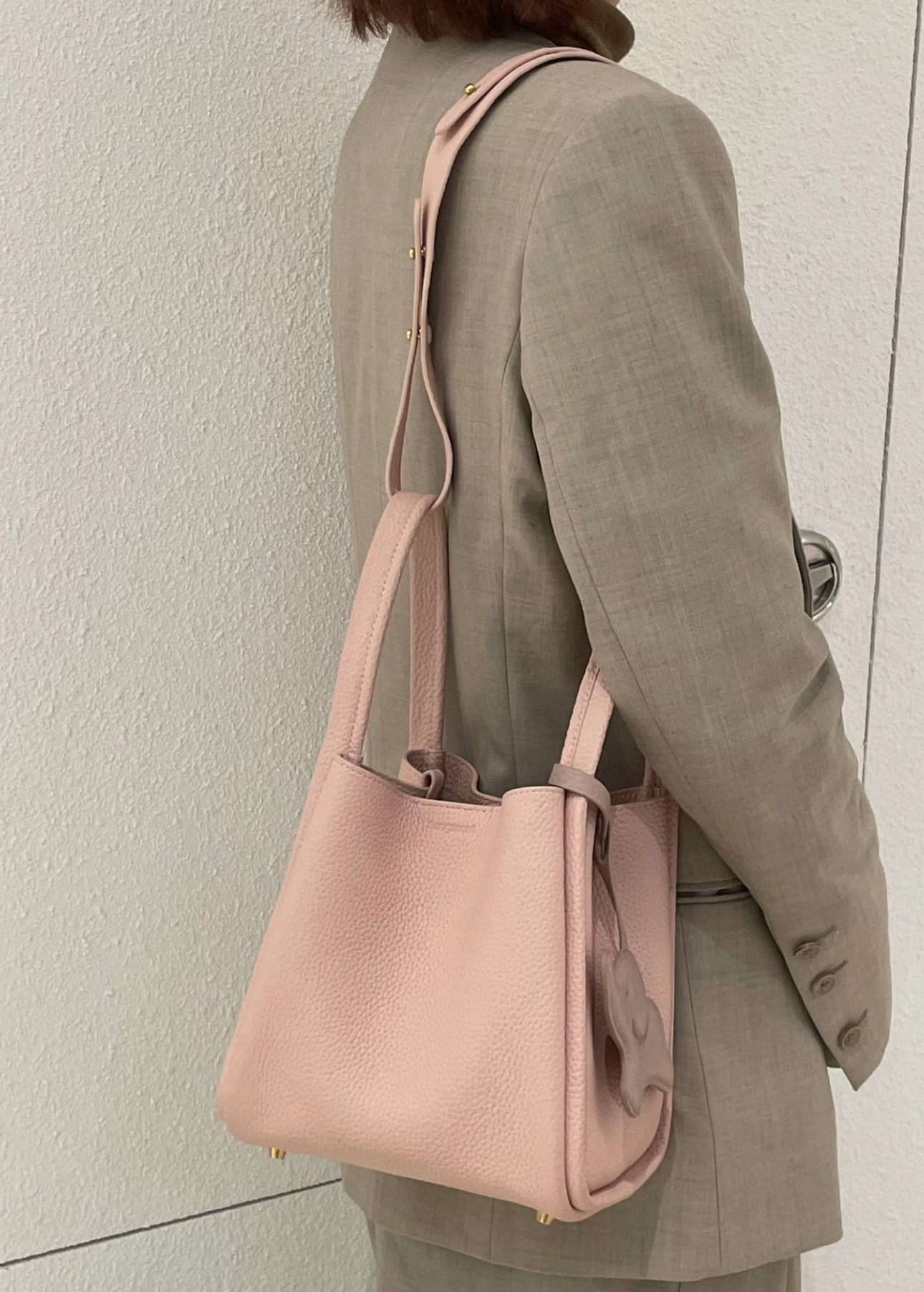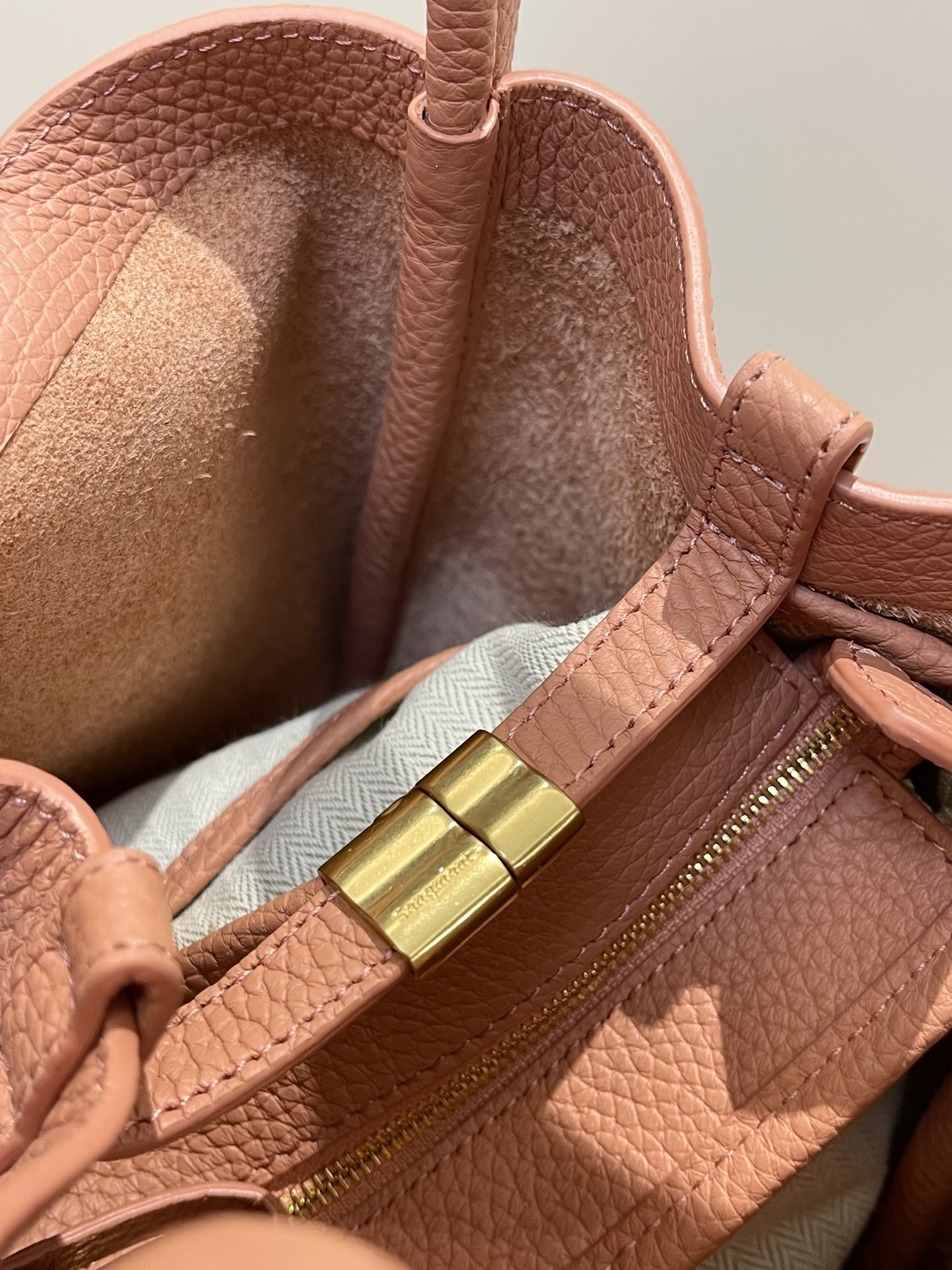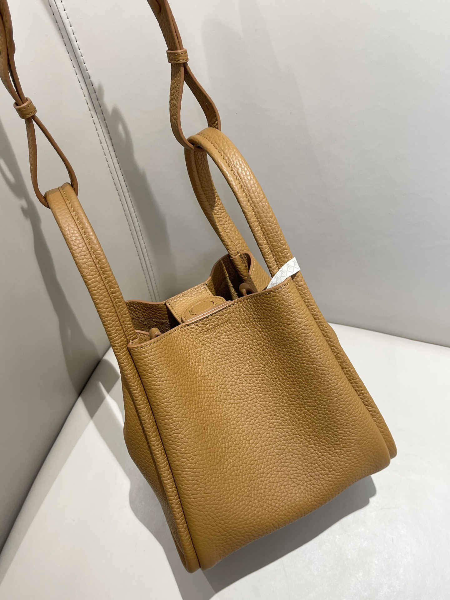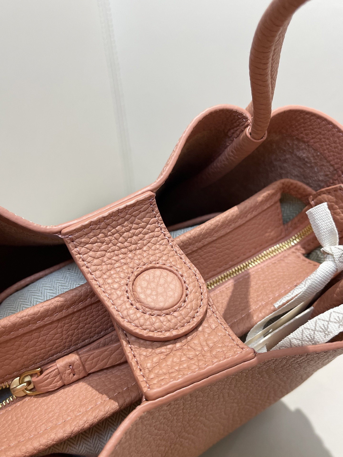 甄选优质全粒面头层牛皮,手感柔软细腻有韧性,自带的荔枝纹纹路清晰细腻 使用后日益油润有光泽度,越背越有味道,包型挺括不软塌 内里底部支撑不易变形 搭载“菜篮子”的独特造型 优雅低调,水桶廓形勾勒利落的线条,不加以过多修饰却高级感满满~