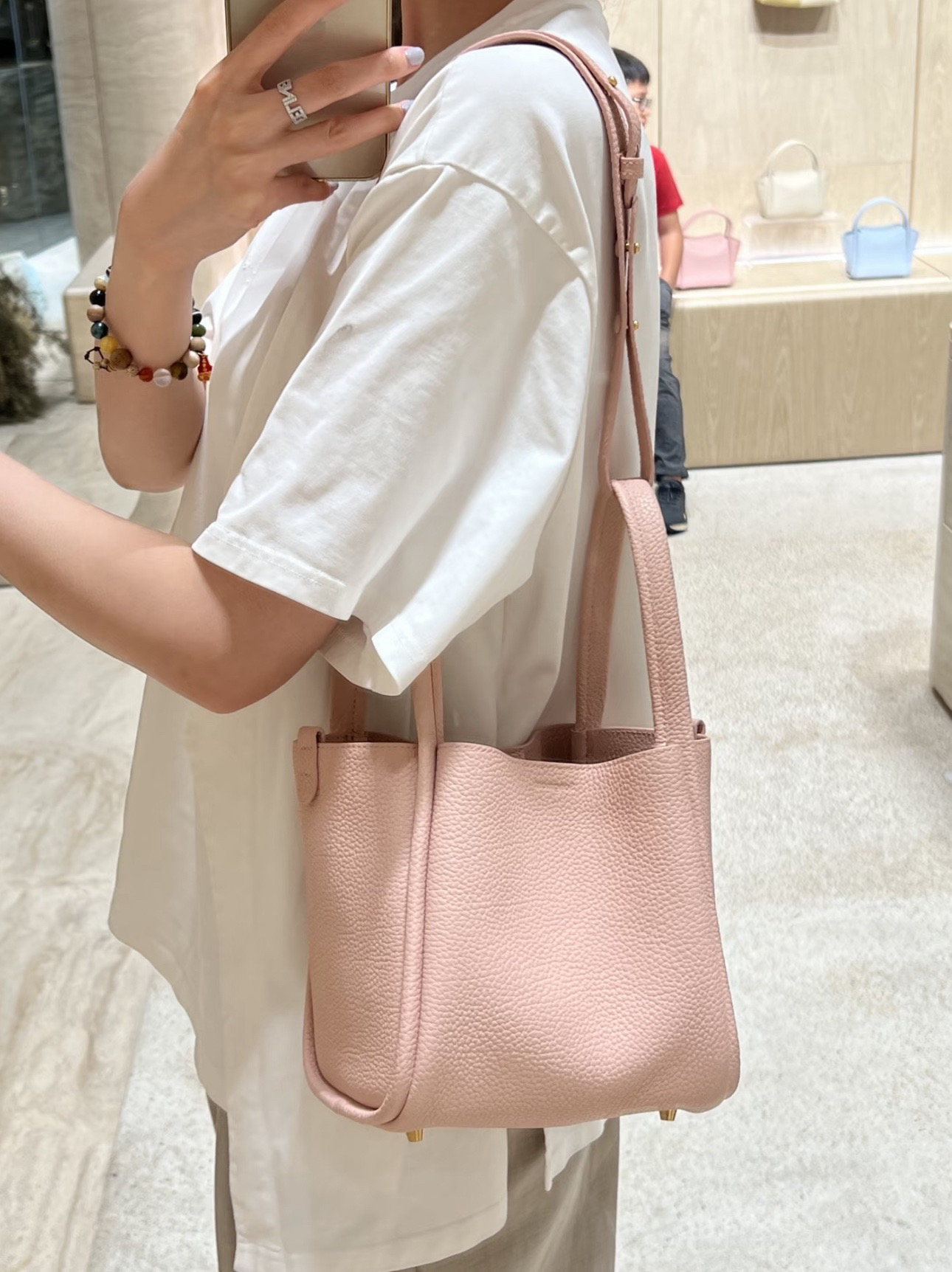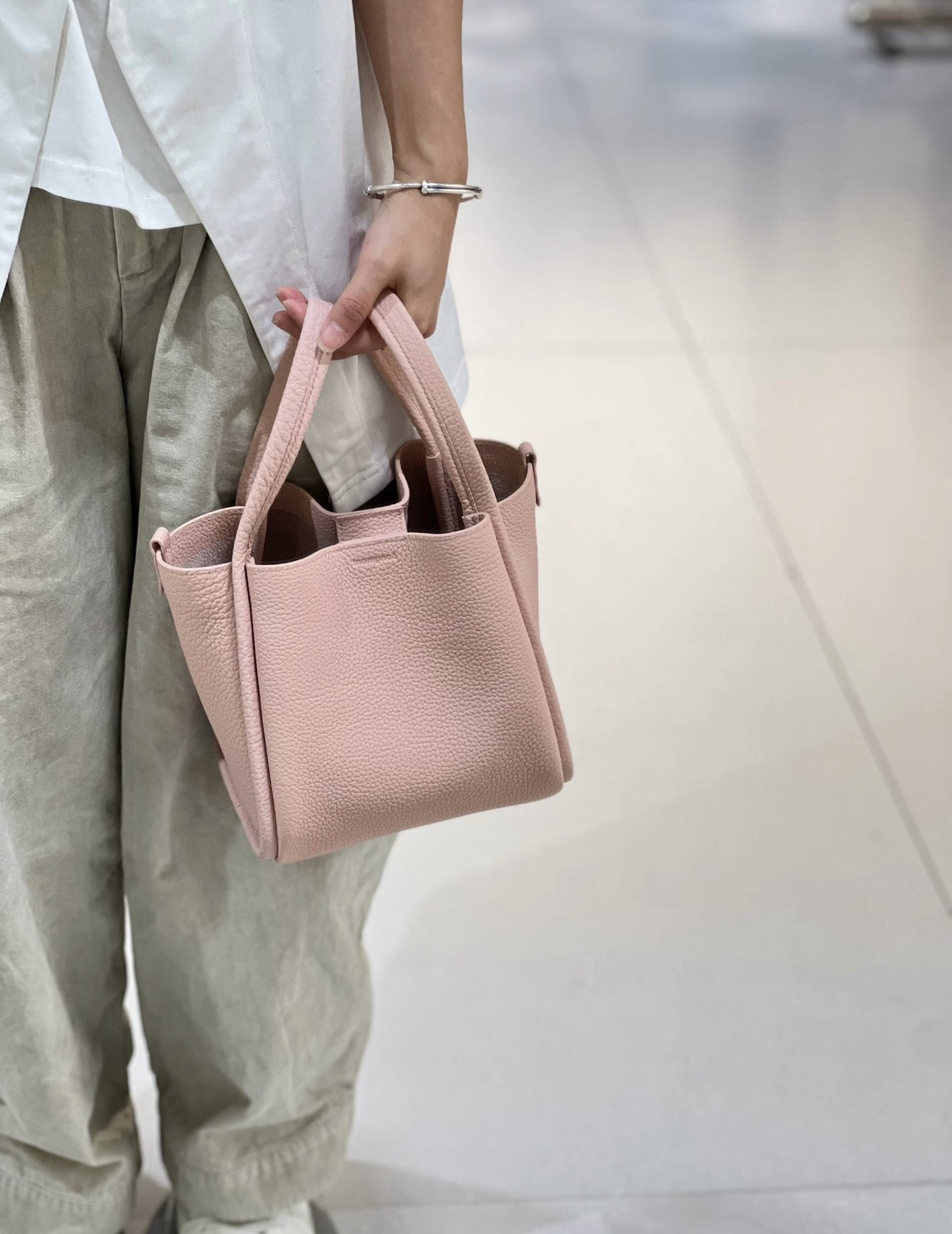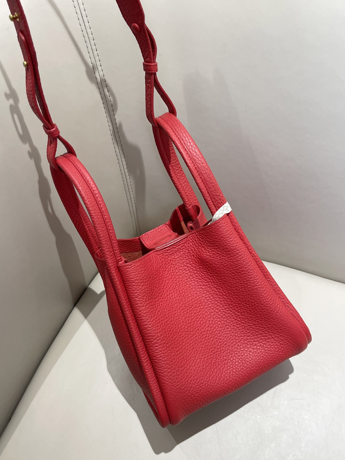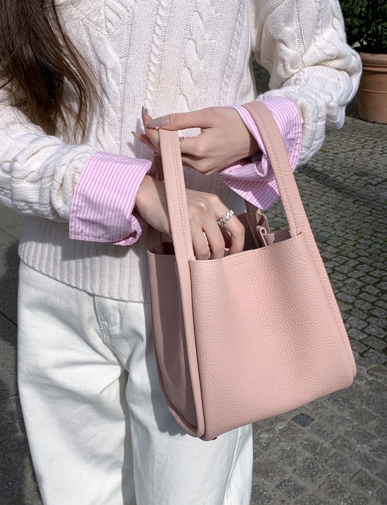 甄选优质全粒面头层牛皮,手感柔软细腻有韧性,自带的荔枝纹纹路清晰细腻 使用后日益油润有光泽度,越背越有味道,包型挺括不软塌 内里底部支撑不易变形 搭载“菜篮子”的独特造型 优雅低调,水桶廓形勾勒利落的线条,不加以过多修饰却高级感满满~
