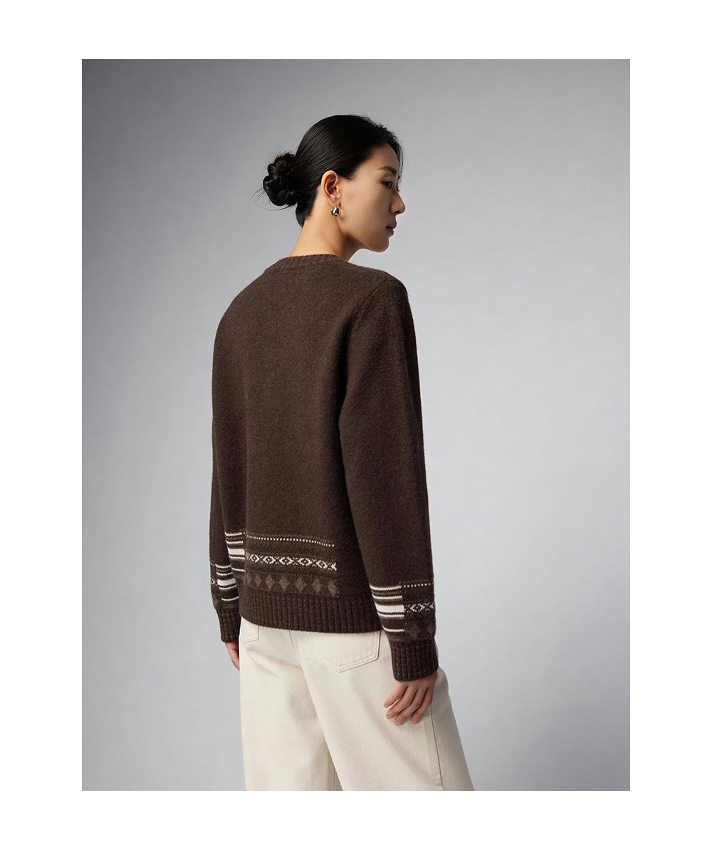 Bella Futura 沁雪丝语 · 费尔岛圆领撞色钩花牦牛绒绵羊毛针织开衫