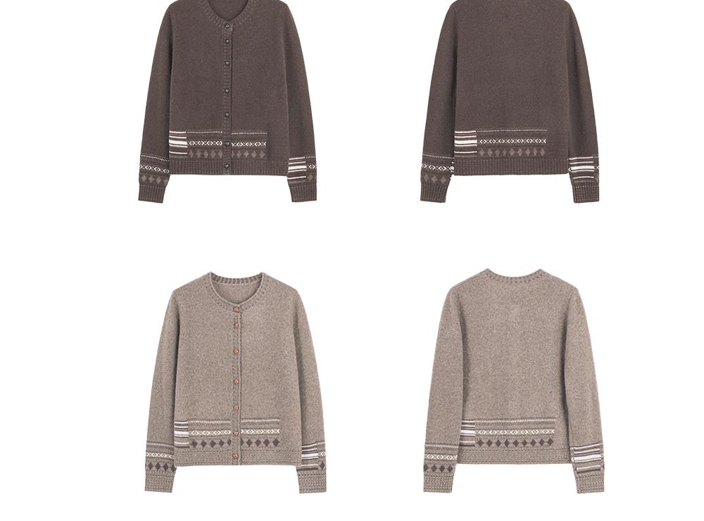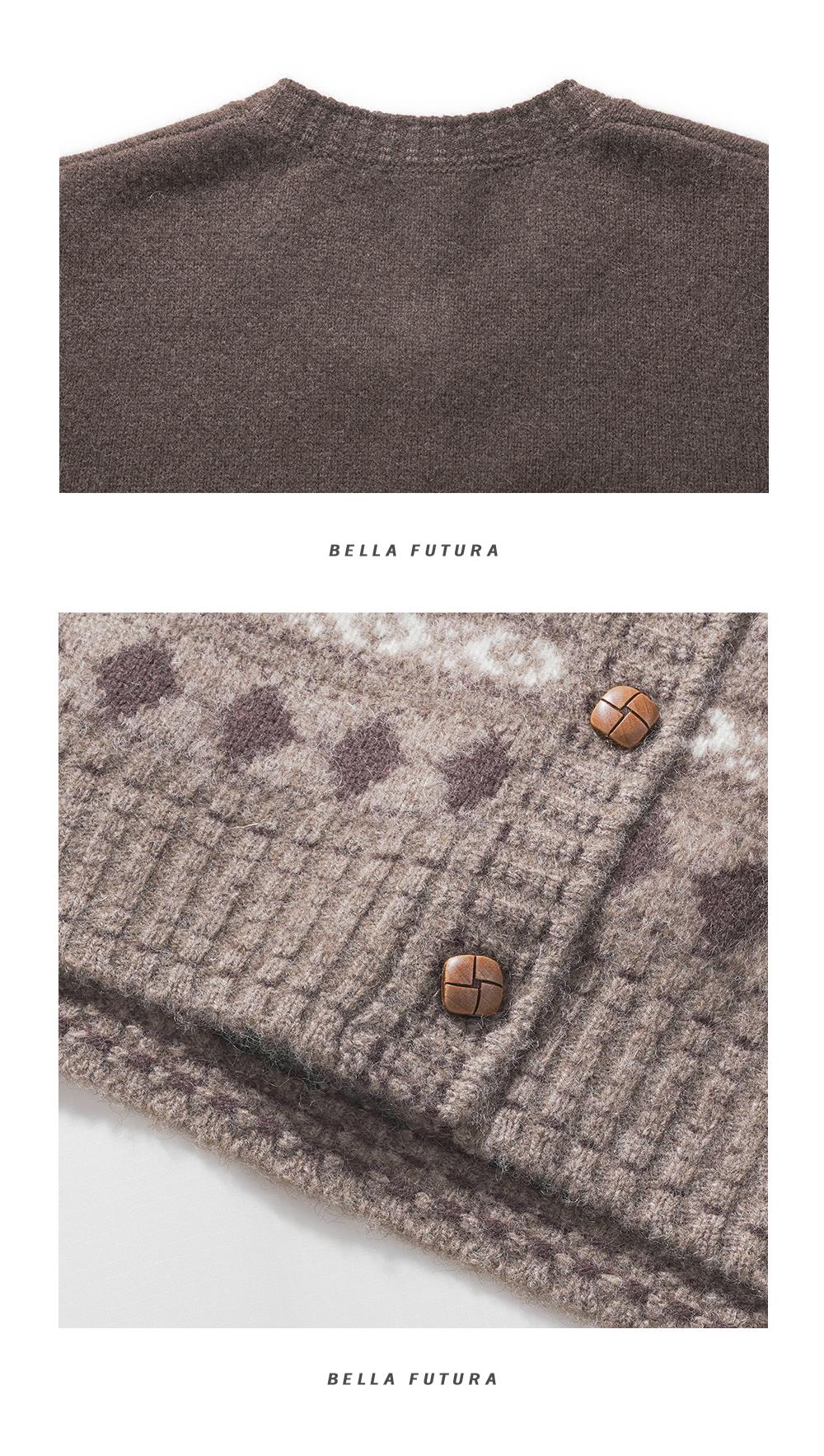 Bella Futura 沁雪丝语 · 费尔岛圆领撞色钩花牦牛绒绵羊毛针织开衫 商品图7