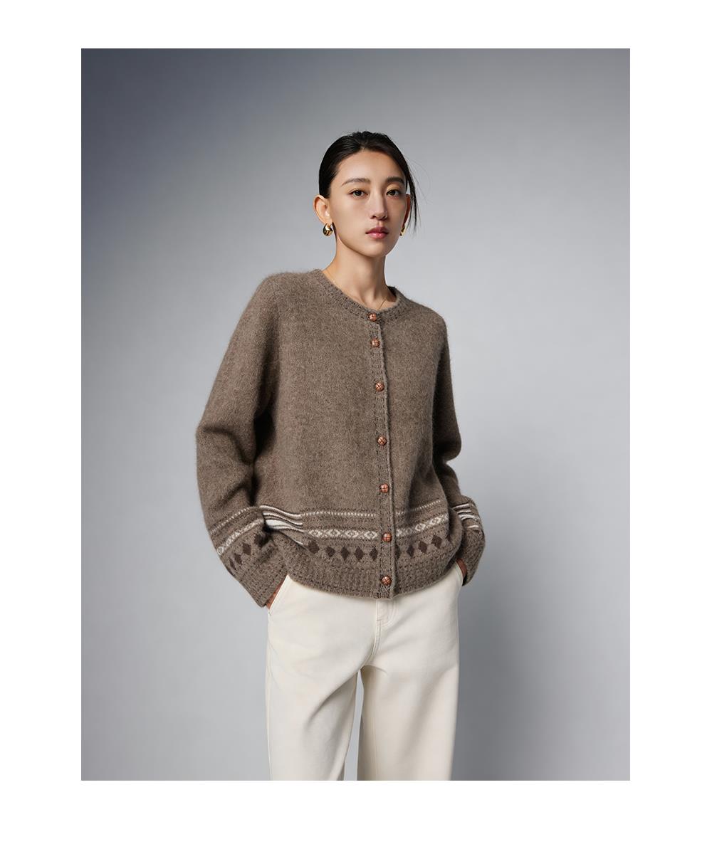 Bella Futura 沁雪丝语 · 费尔岛圆领撞色钩花牦牛绒绵羊毛针织开衫 商品图5