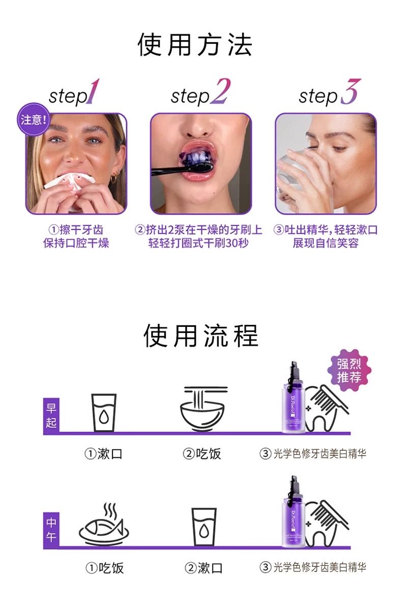 护肤品只卖正品!入口的东西更是‼️ 48小时下架‼️ ‼️使用光感美白去渍牙膏非常简单方便。只需在早晚刷牙时挤出适量牙膏,用牙刷轻轻刷洗牙齿即可。