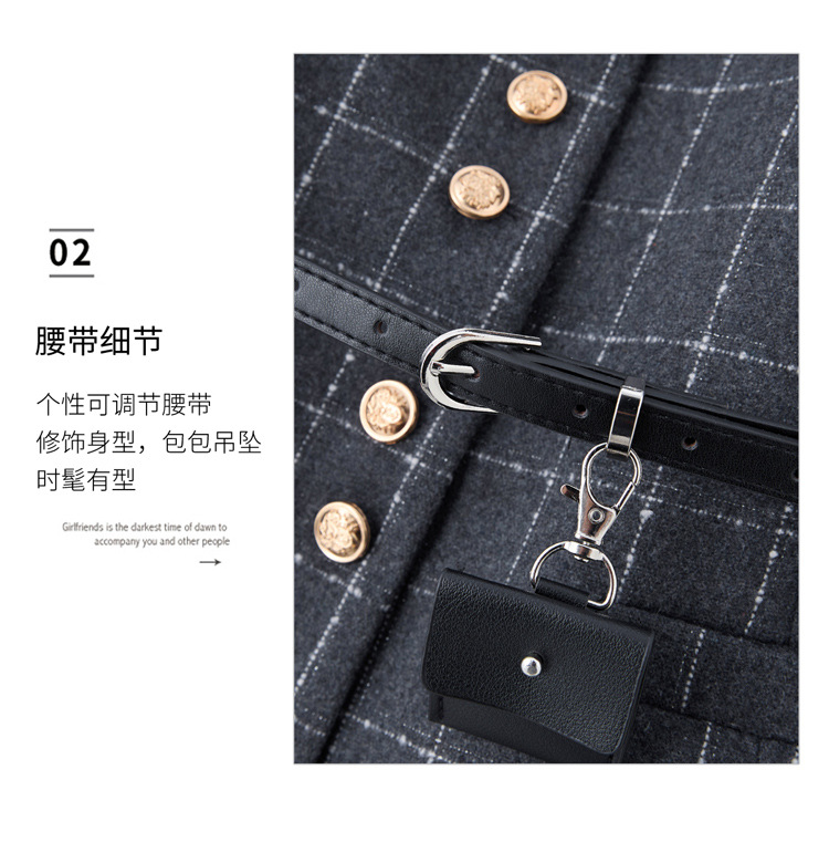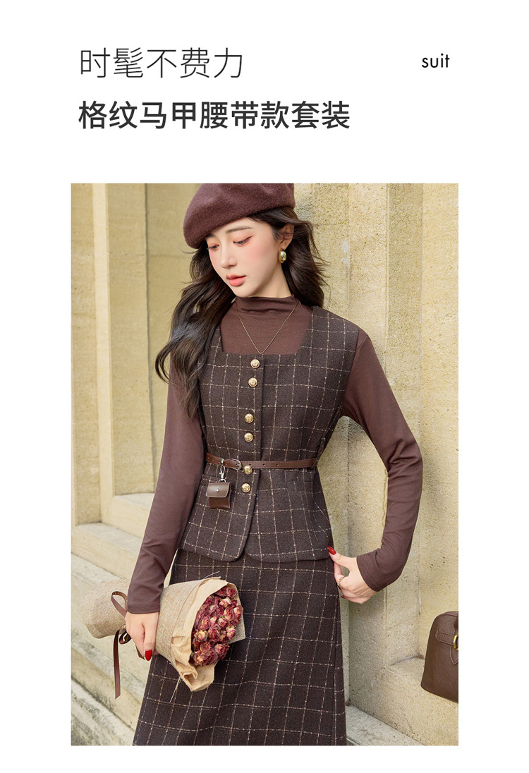 HR YJLY8673百搭气质格纹三件套裙配腰带 商品图3