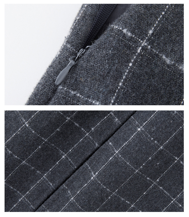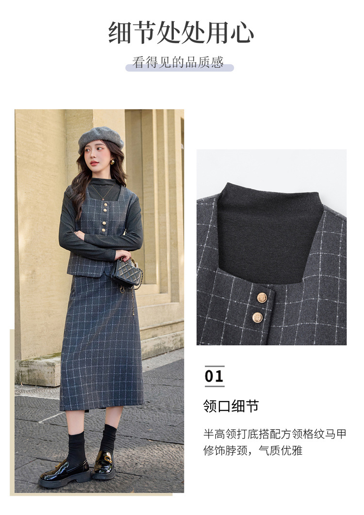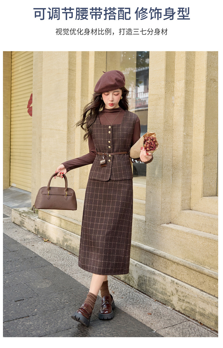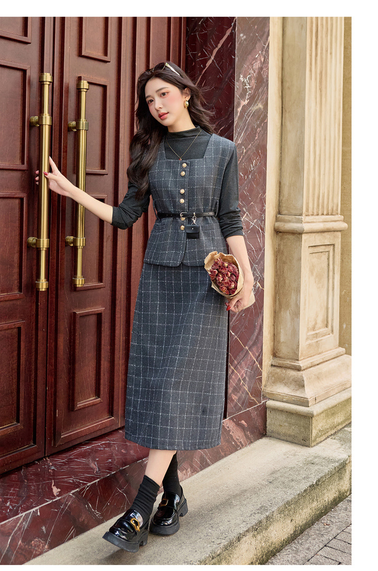 HR YJLY8673百搭气质格纹三件套裙配腰带 商品图4