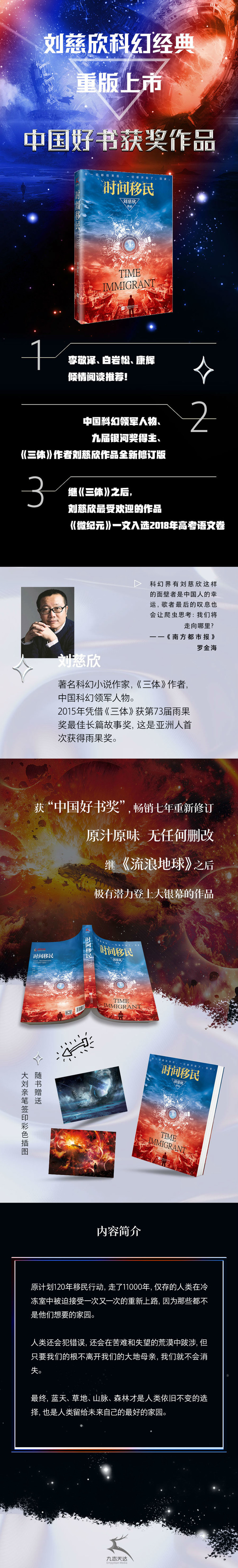 “先遣队已以百年为间隔醒来并出动了5次,最长我们曾在一个时代生活了10年,但每次都无法实现移民,所以没有唤醒您,这个原则是您自己确定的。”先遣队长说。大使这才发现他比上次见面老了许多。