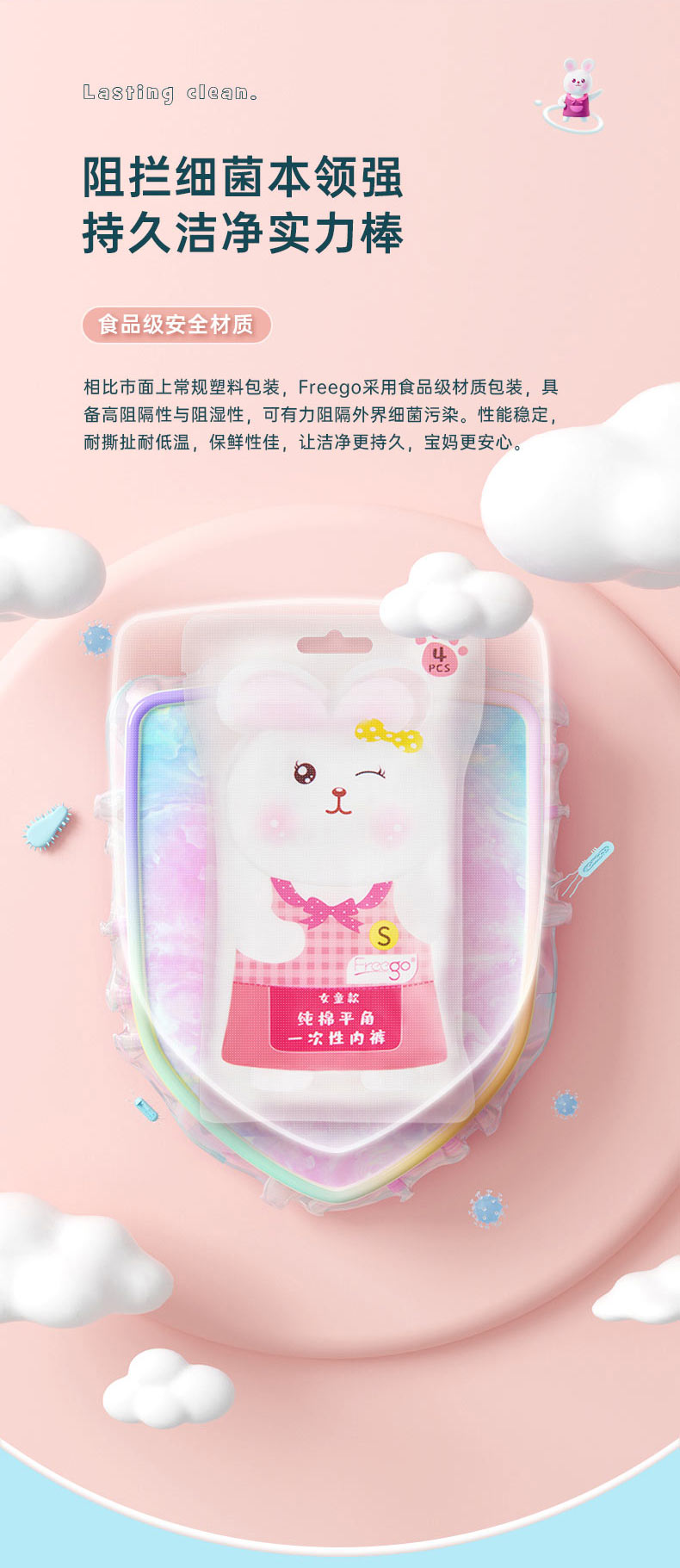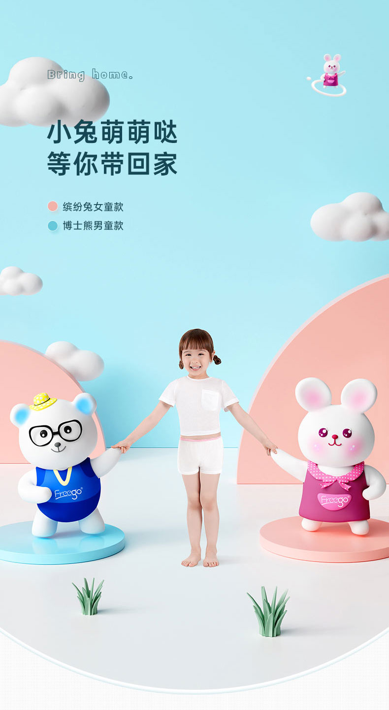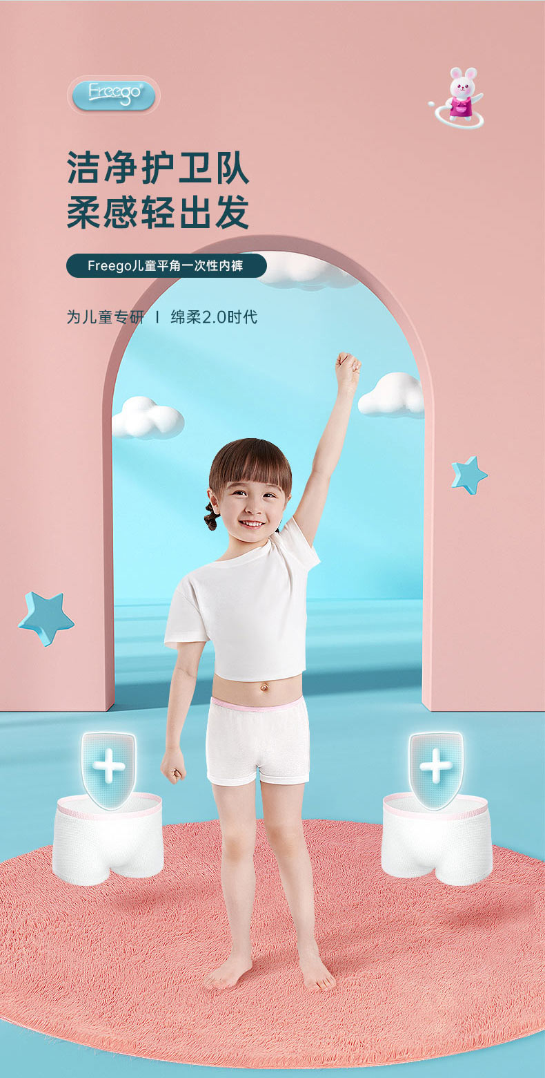 【无菌级】Freego第四代儿童「平角款」5A抗菌一次性纯棉内裤
