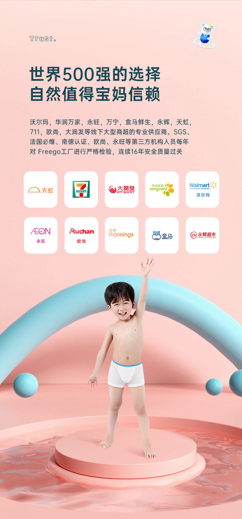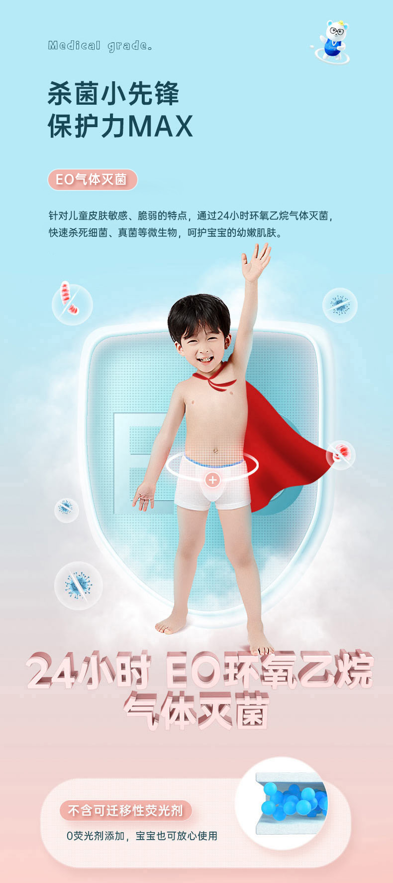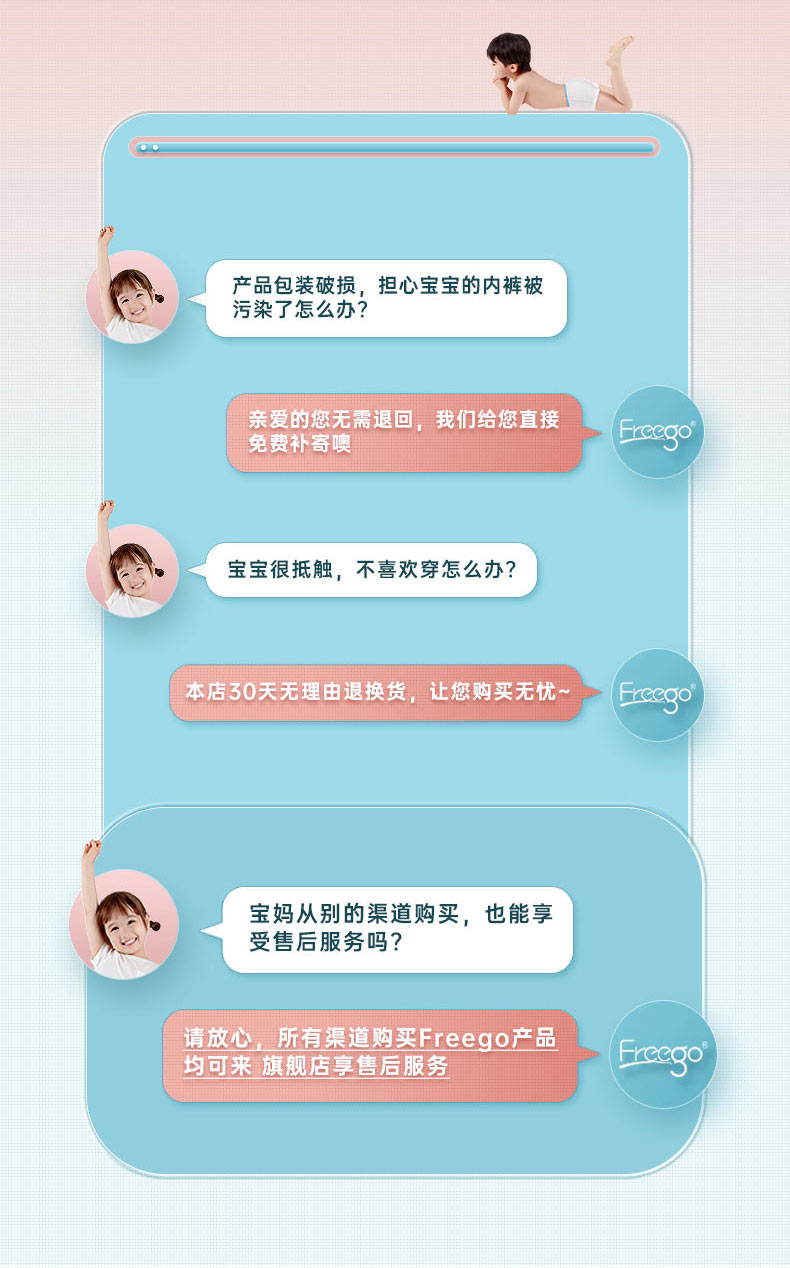 【无菌级】Freego第四代儿童「平角款」5A抗菌一次性纯棉内裤