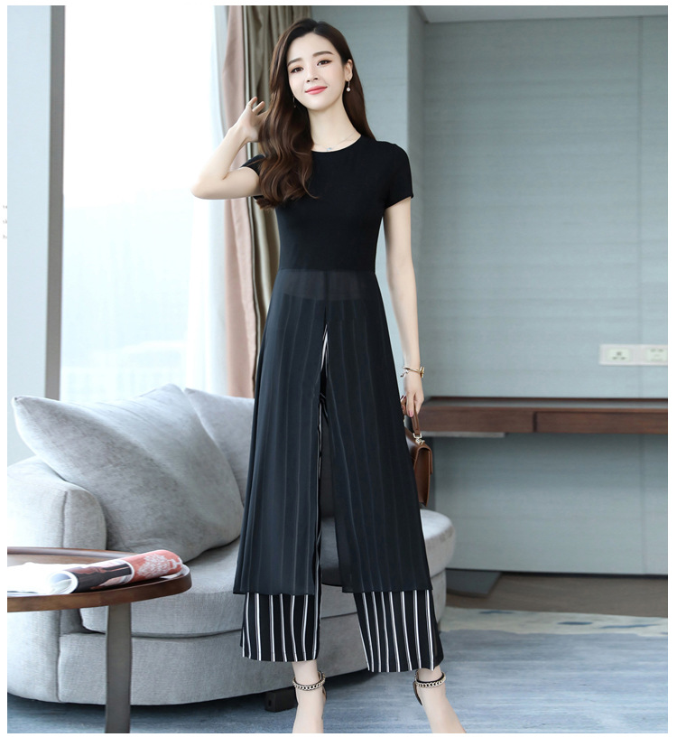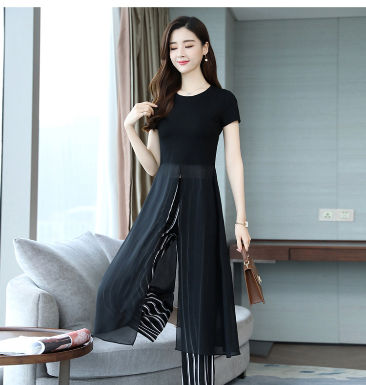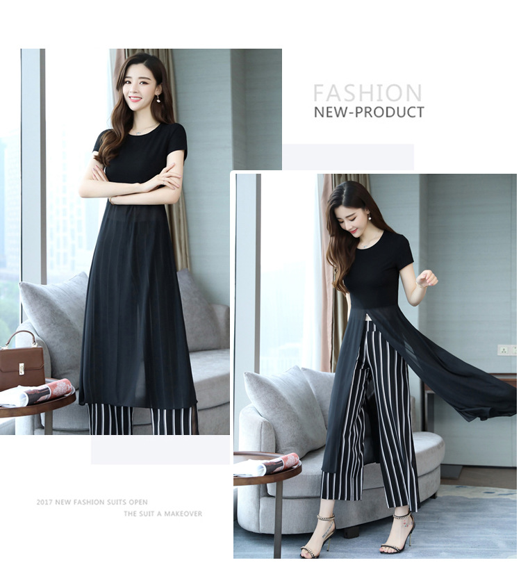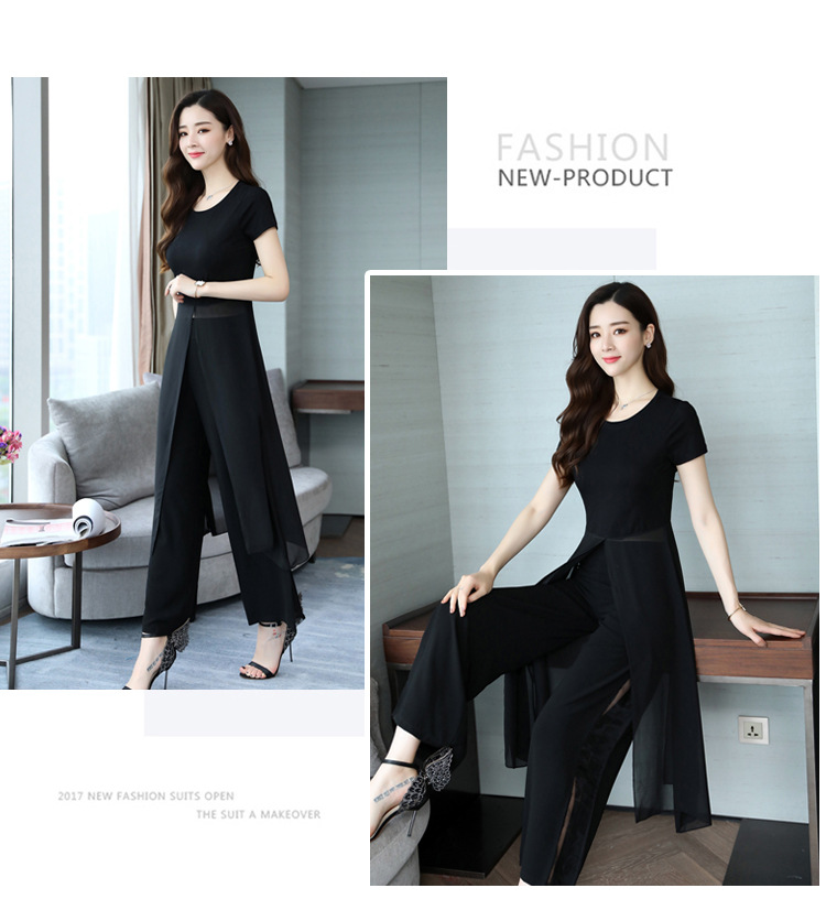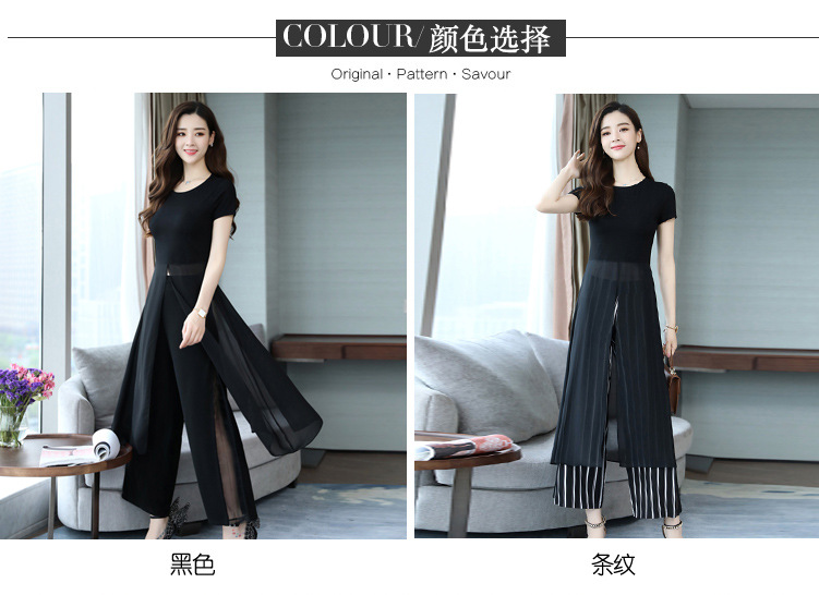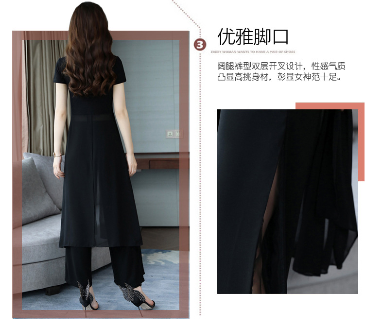优雅女神范时尚套装,气质洋气雪纺衫裤子两件套HR-JNFGN1825