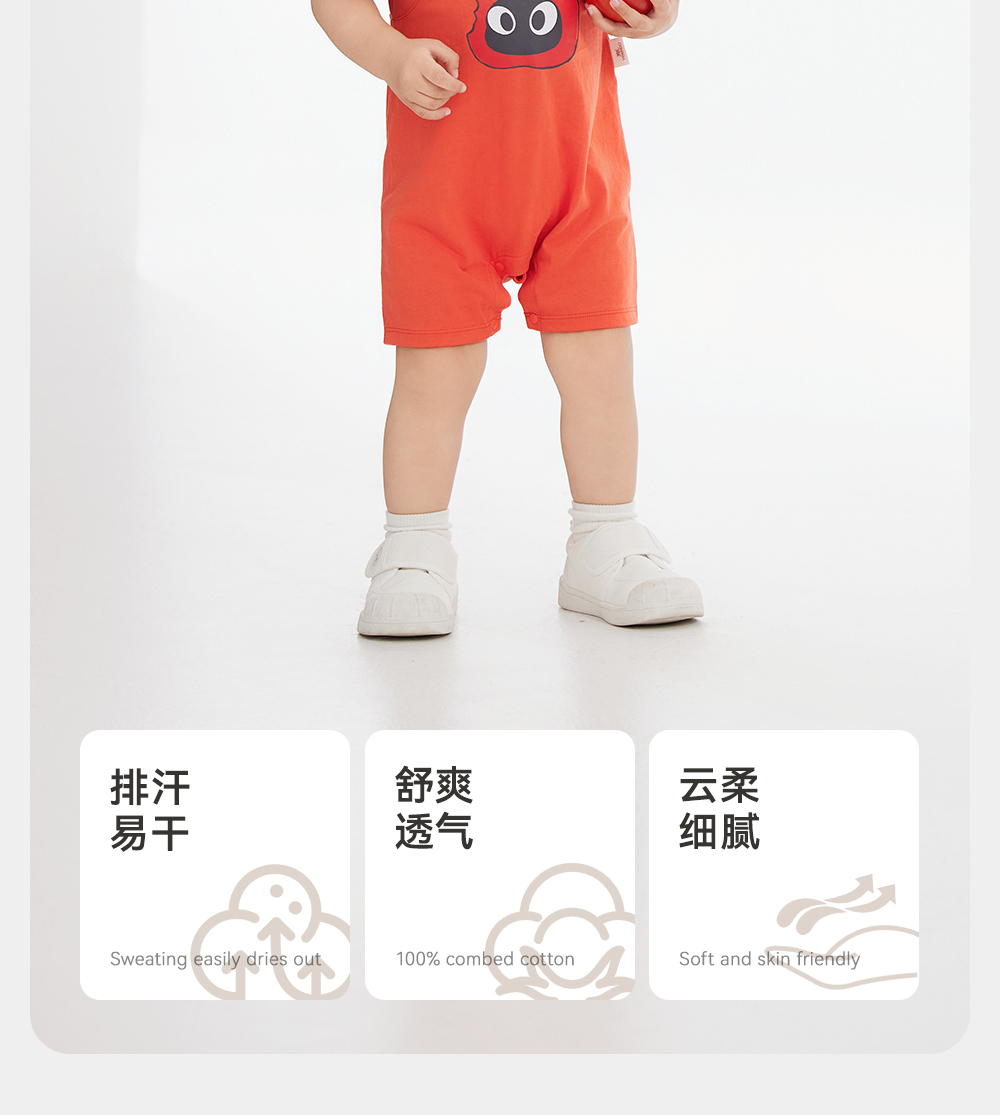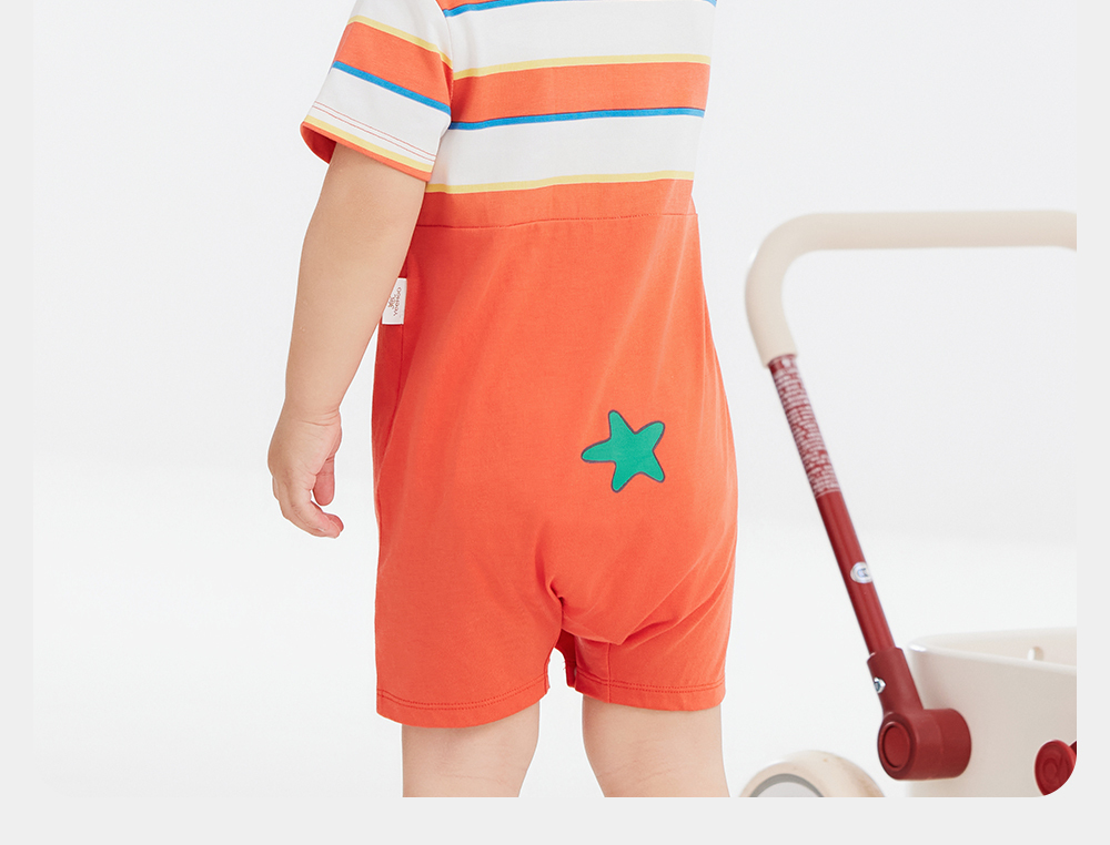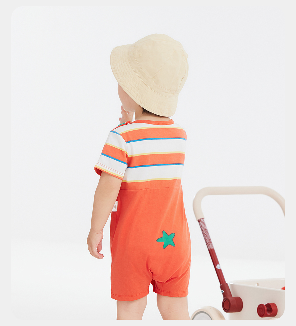 英氏童装哈衣短袖透气婴幼儿连体衣夏季男宝假两件衣服新款
