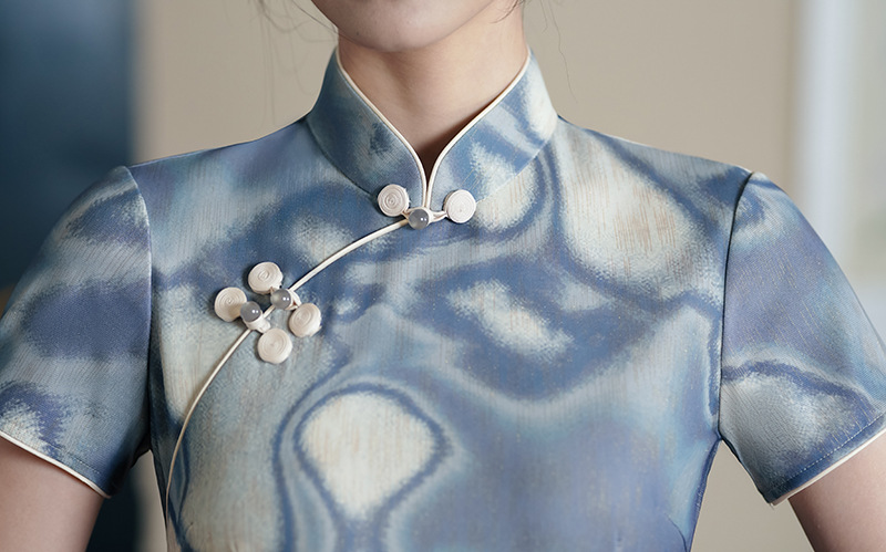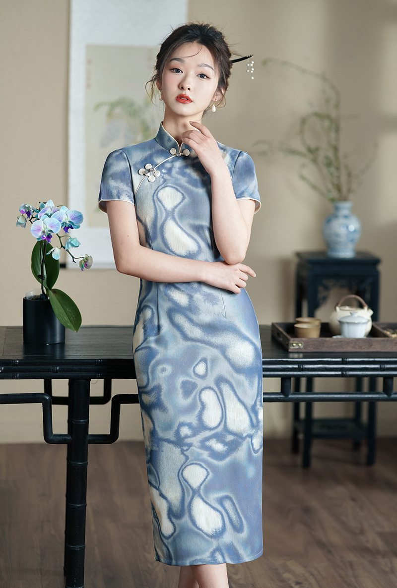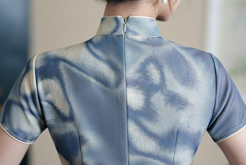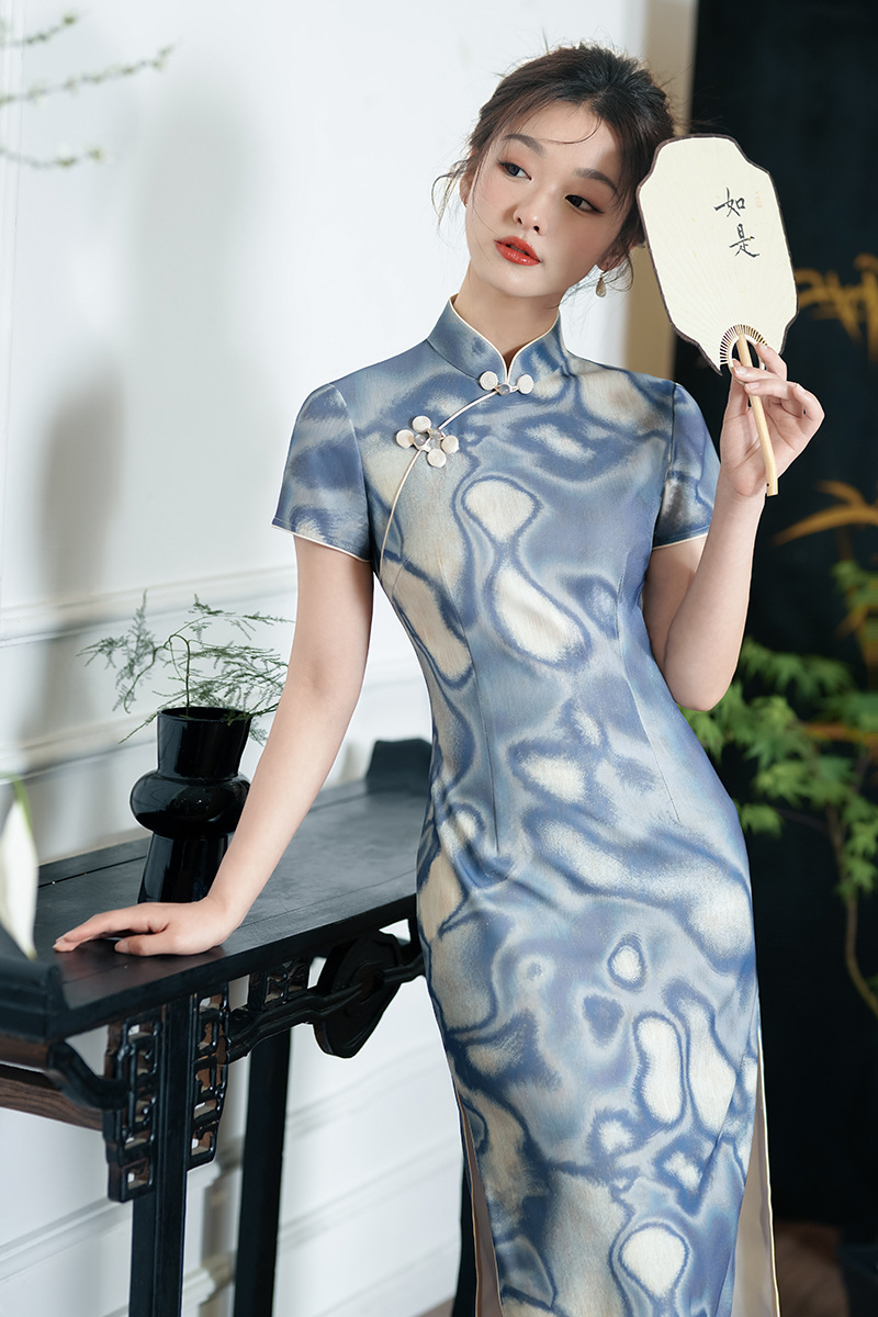 气质优雅,改良小众不规则图案中长款旗袍XL-209