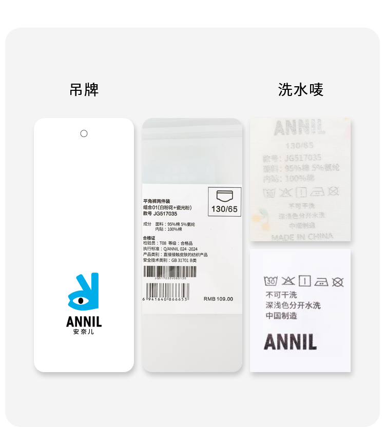 女童平角裤两件装春季新款安奈儿童装JG517035