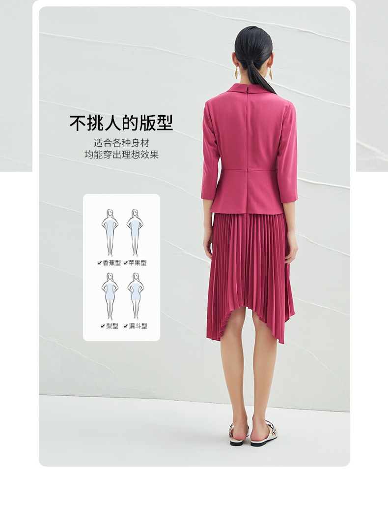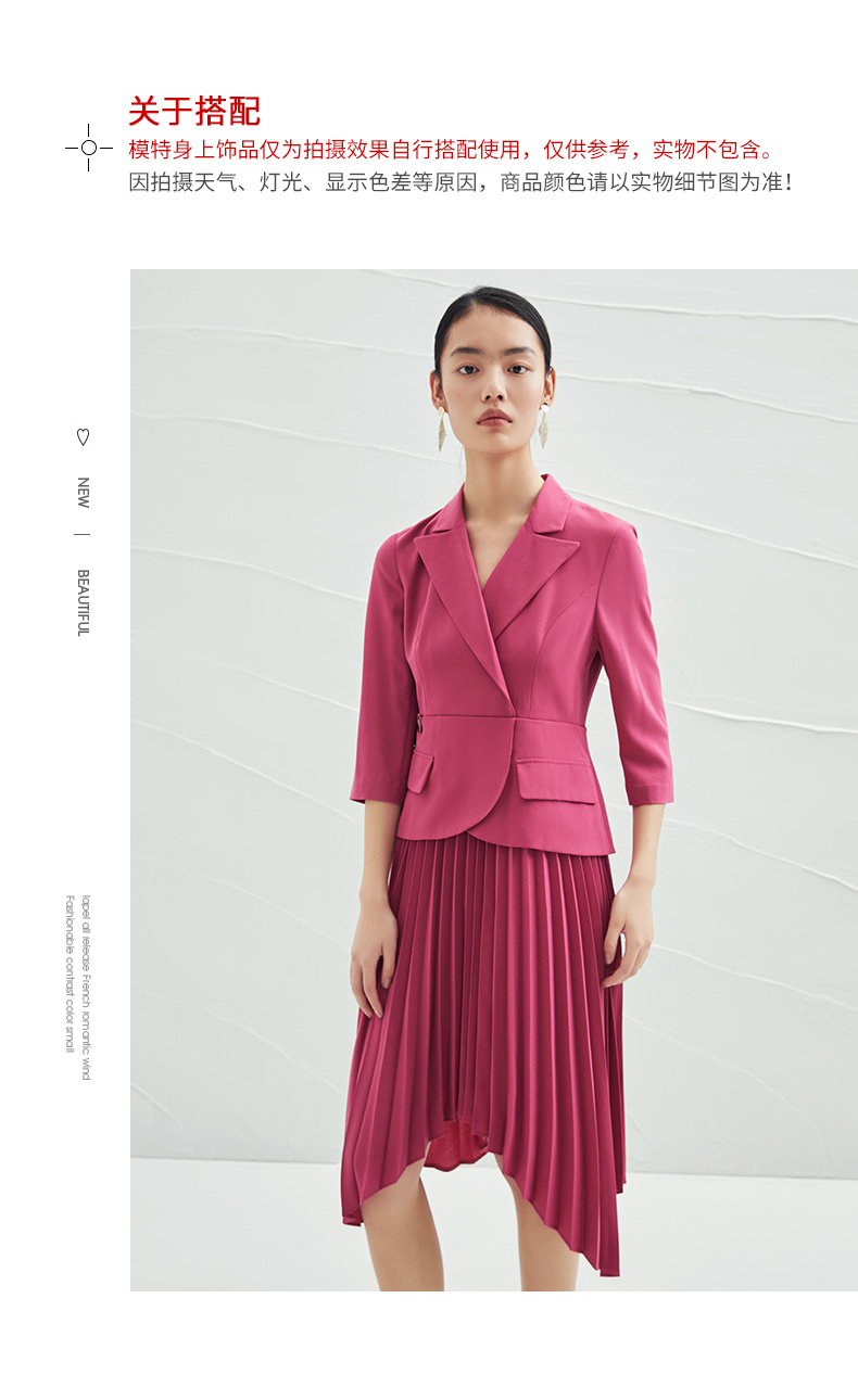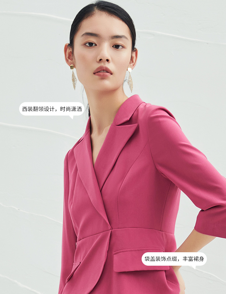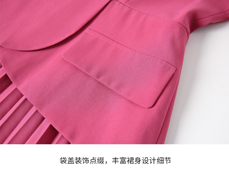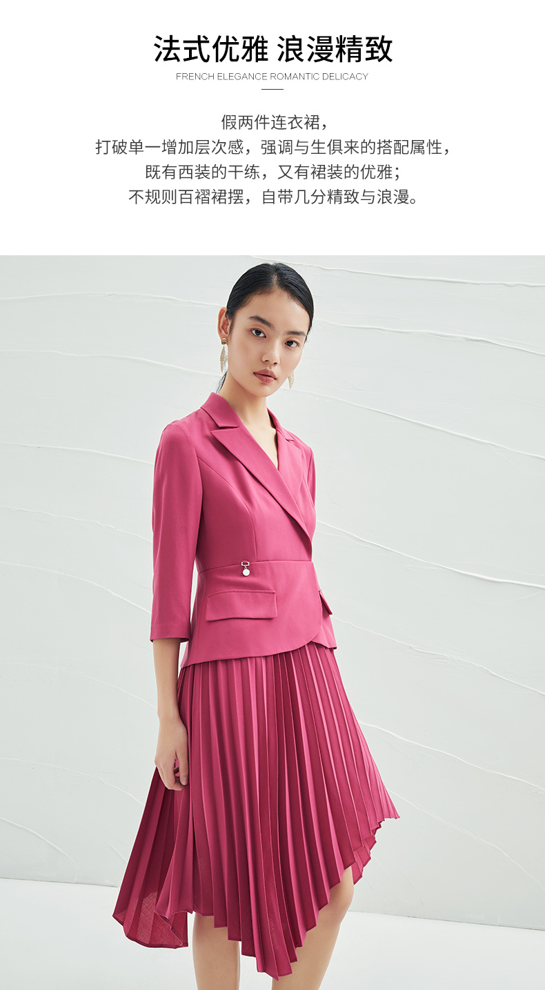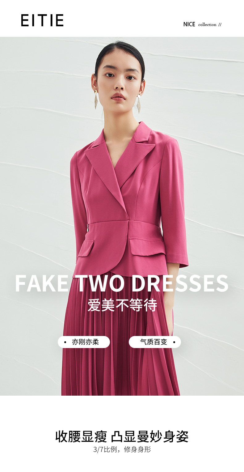 EITIE爱特爱冬季新品高腰修身立体西装拼接优雅不规则裙摆假两件连衣裙6507243
