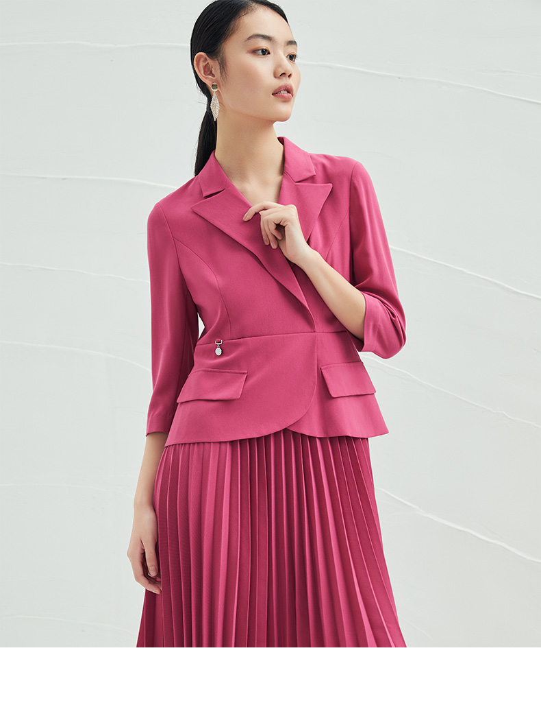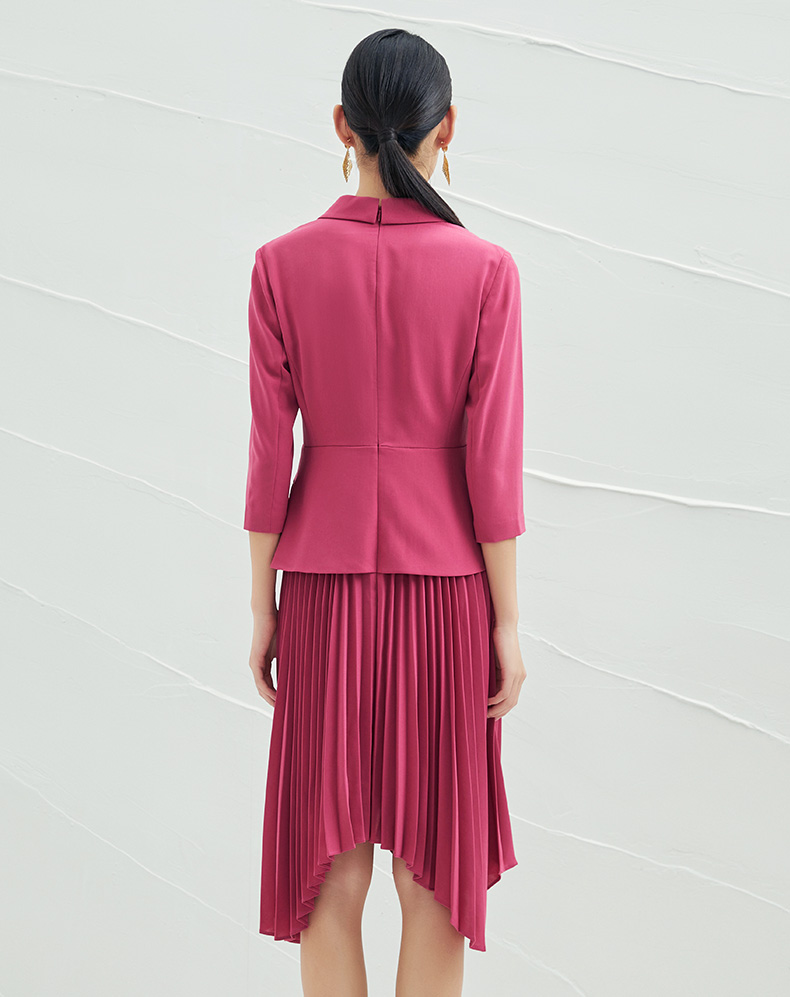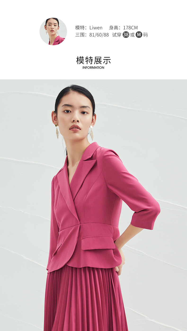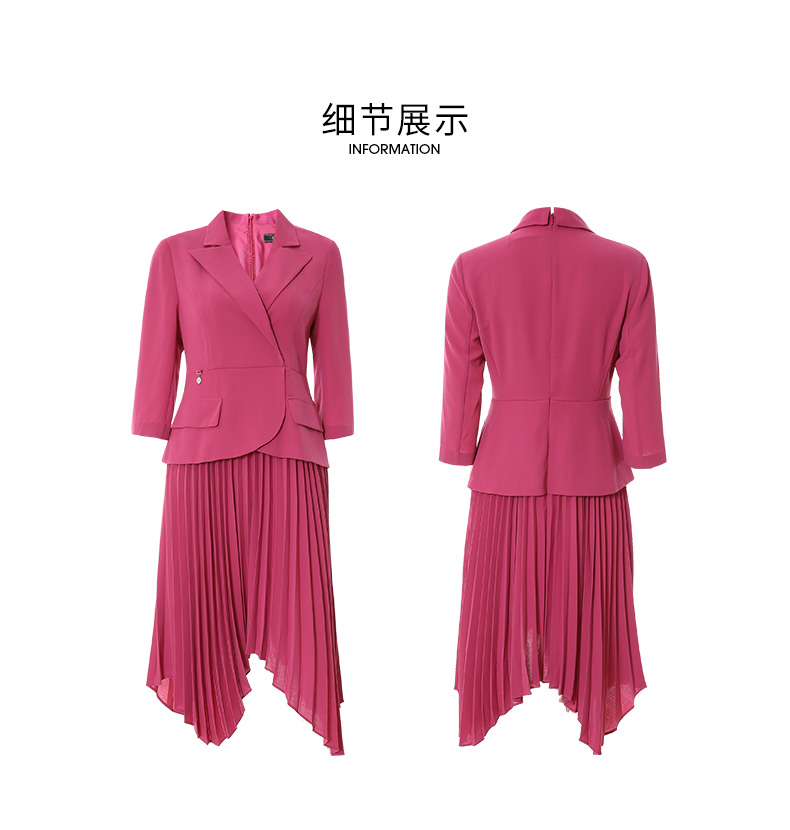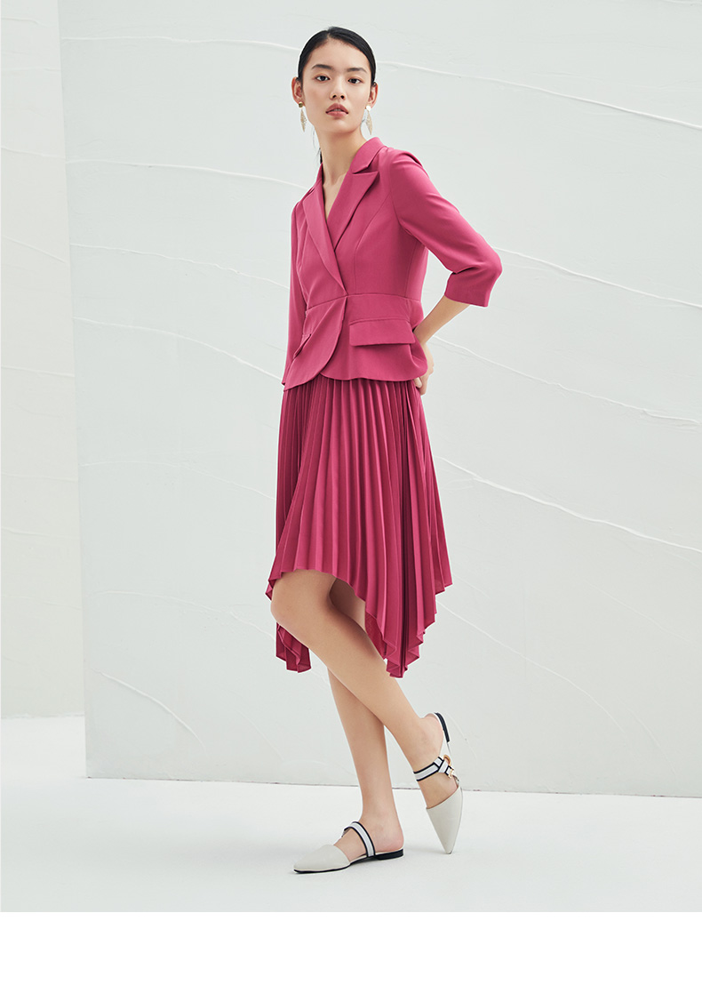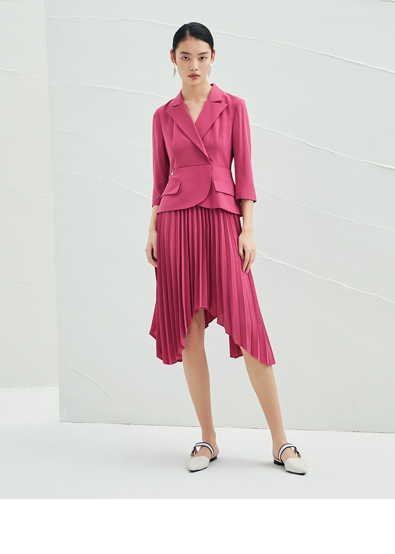 EITIE爱特爱冬季新品高腰修身立体西装拼接优雅不规则裙摆假两件连衣裙6507243