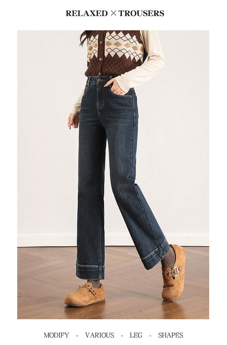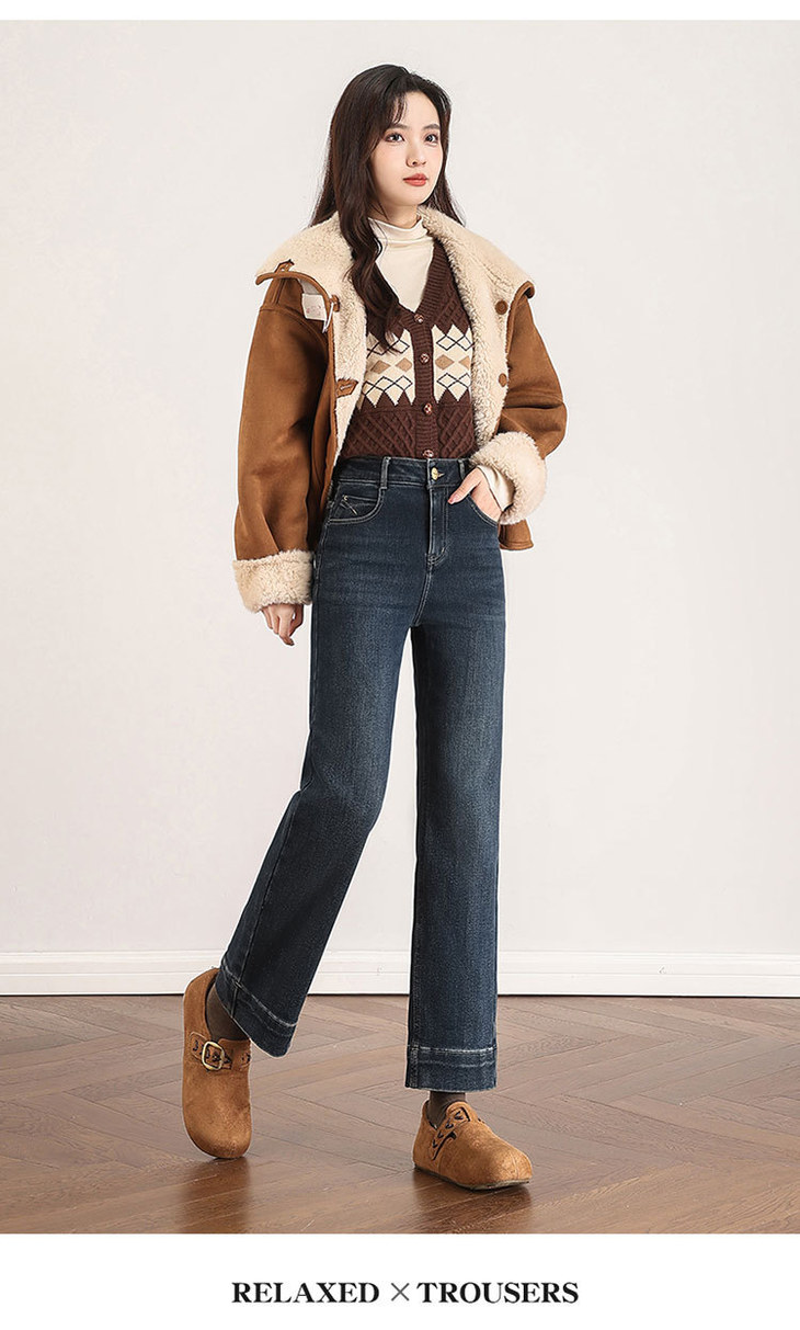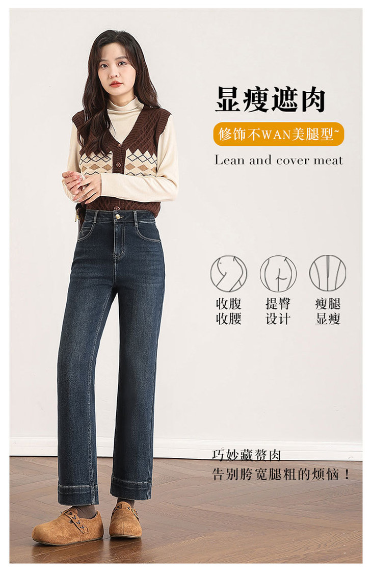 加绒牛仔九分裤复古蓝洋气小直筒裤,显瘦高腰时尚烟管裤MYX-OZY-25271-L