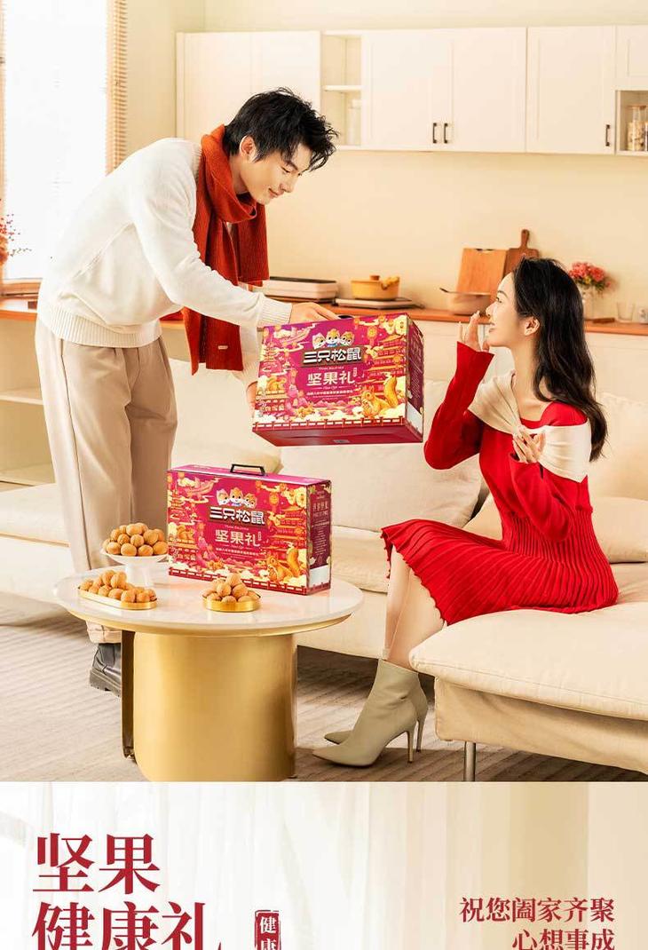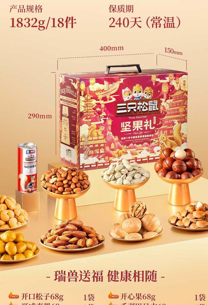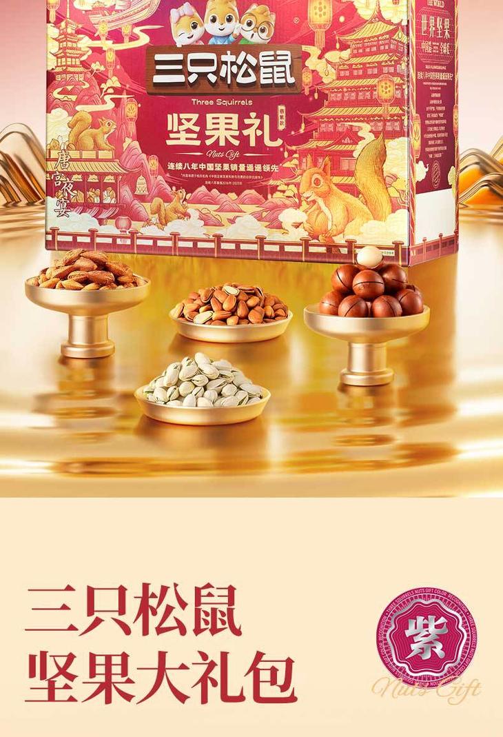 【三只松鼠_坚果礼盒鼎紫款18袋1832g】送礼零食大礼包干果年货
