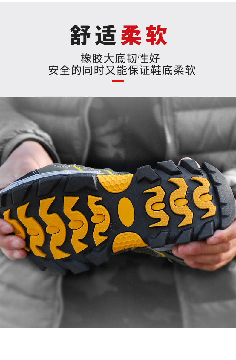 劳保鞋男安全工作鞋防砸钢包头防刺穿钢板耐磨橡胶底防护功能鞋