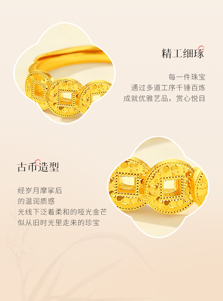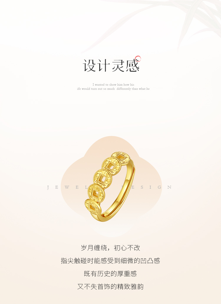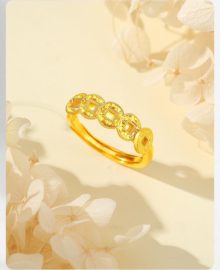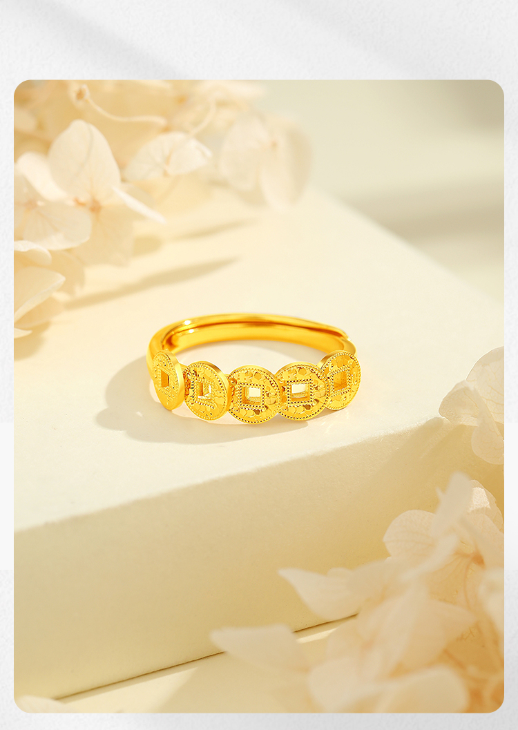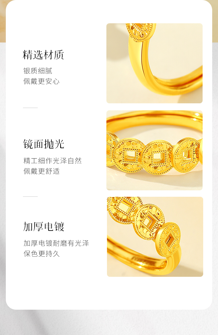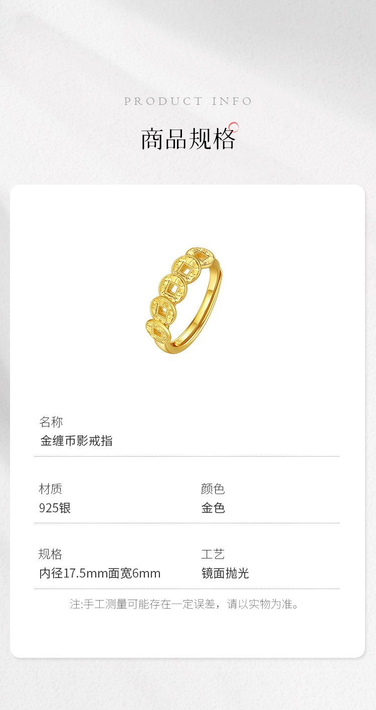 Winy S925 银镀金光面铜钱活口戒指 金缠币影复古小众设计招财吉祥食指戒