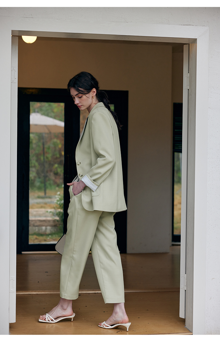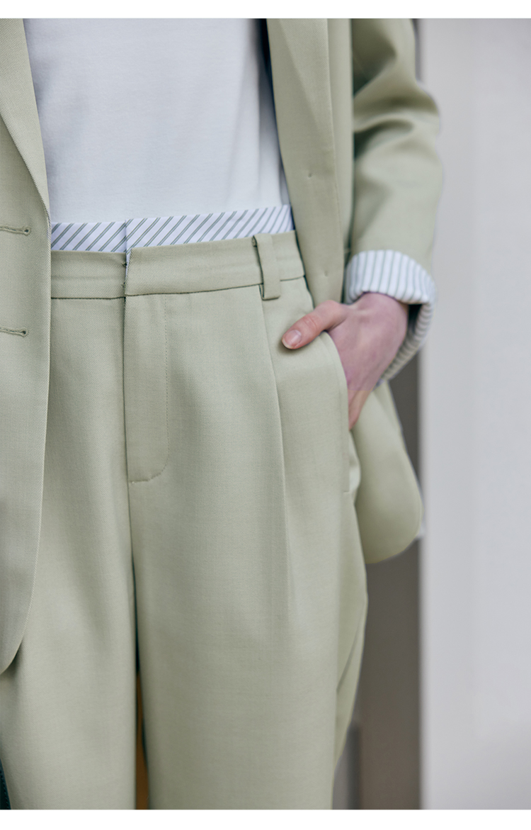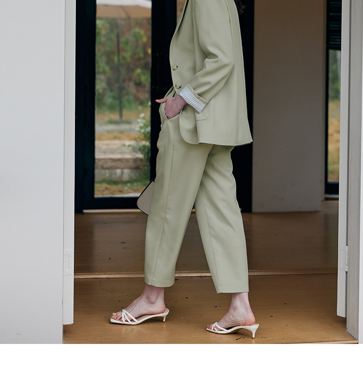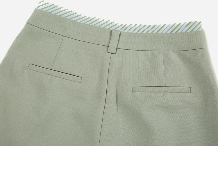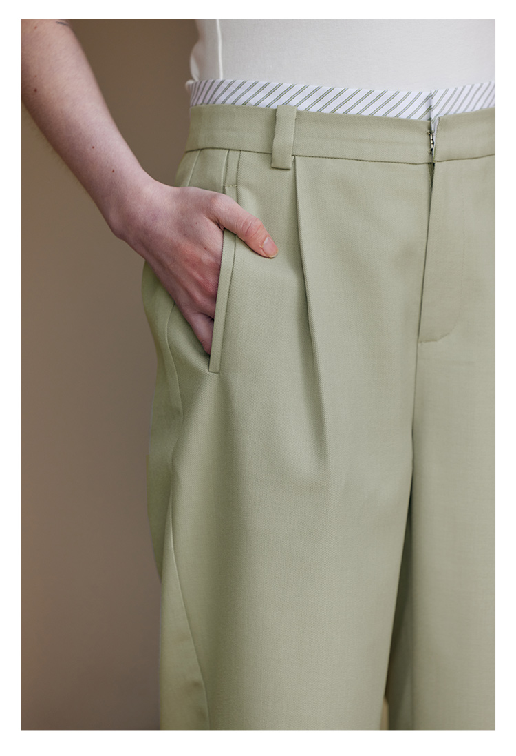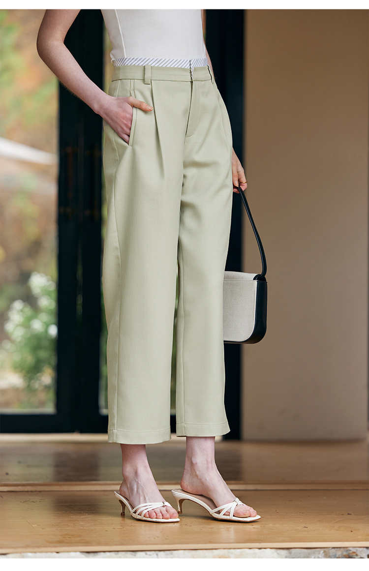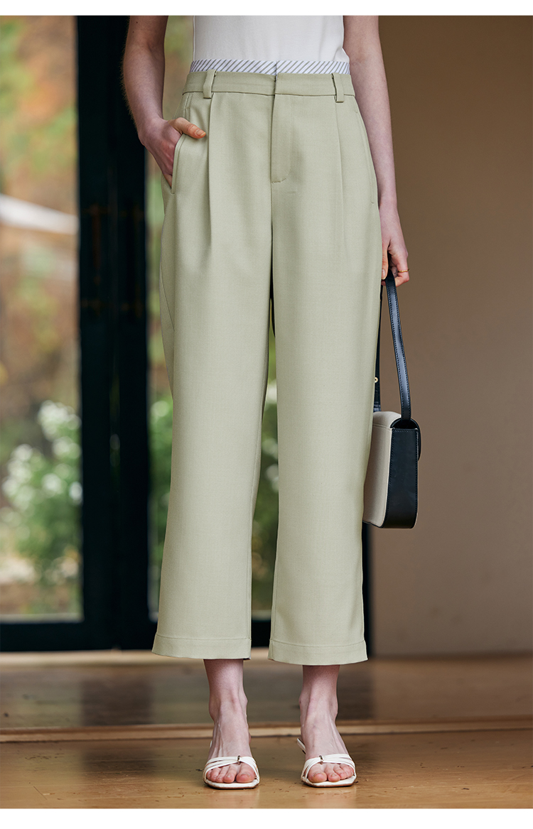 HeyDress豆绿色休闲裤女春季双层高腰显瘦西装裤百搭通勤九分裤子