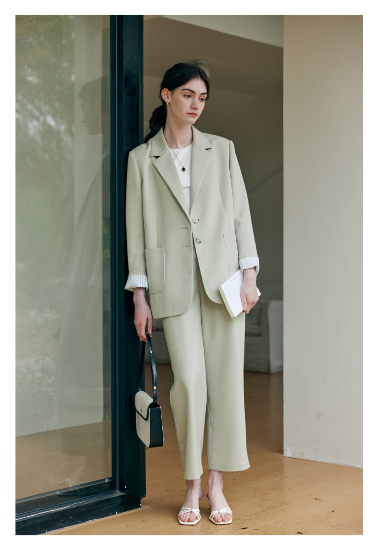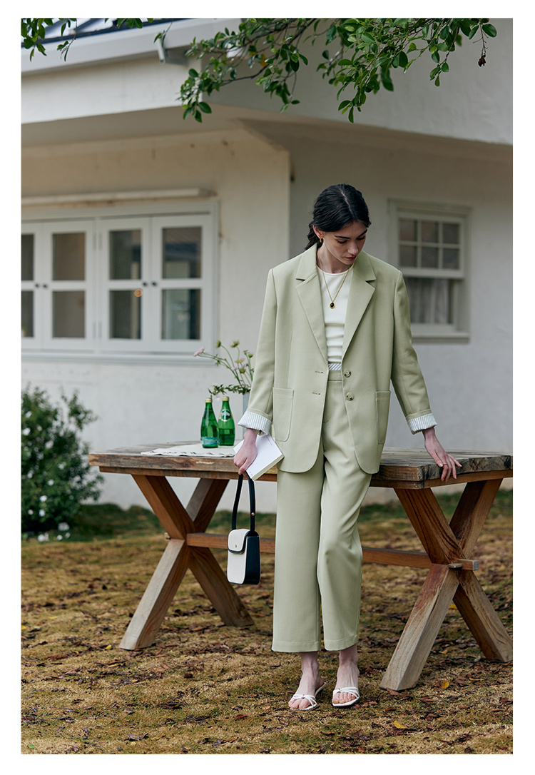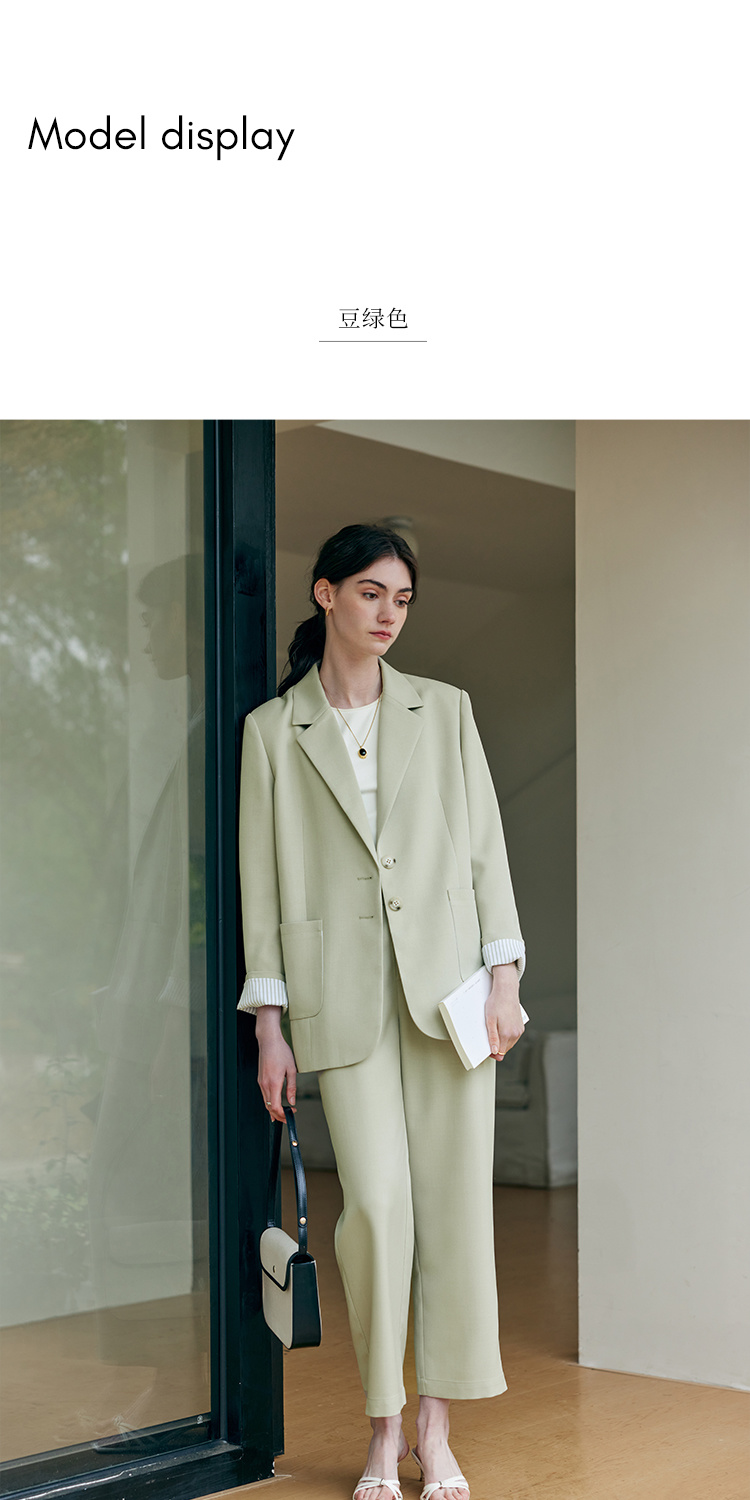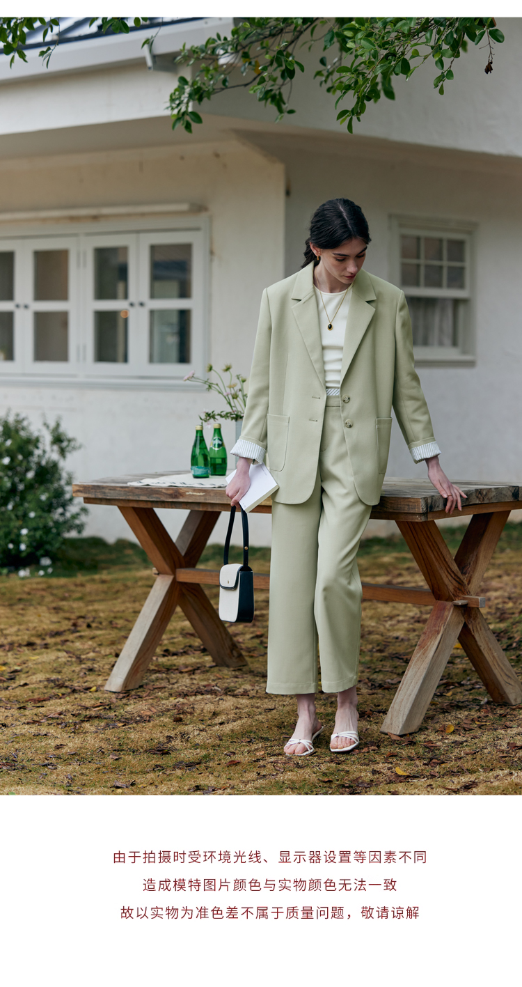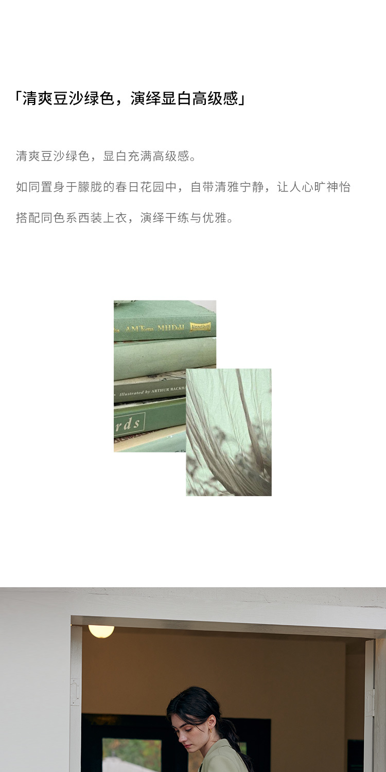 HeyDress豆绿色休闲裤女春季双层高腰显瘦西装裤百搭通勤九分裤子