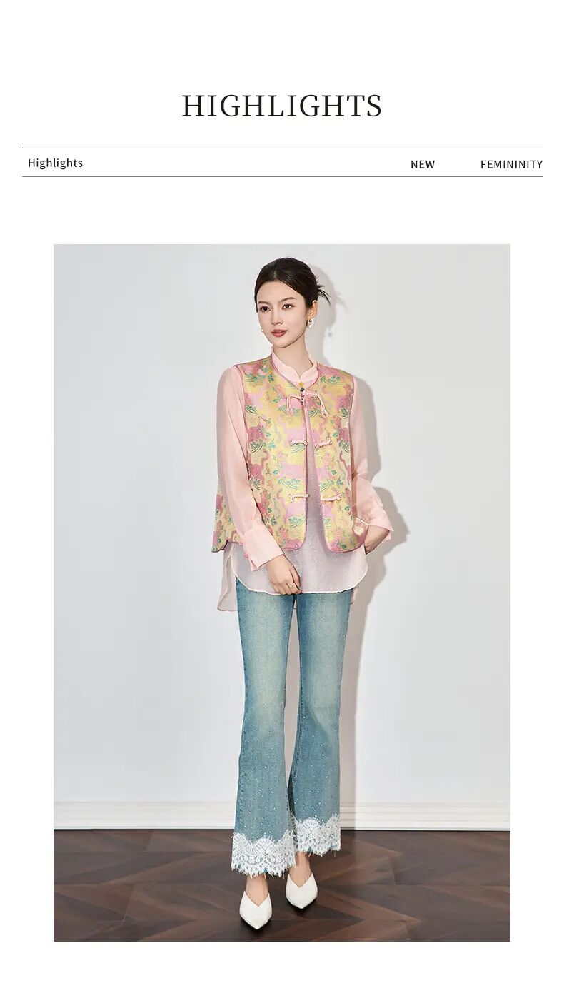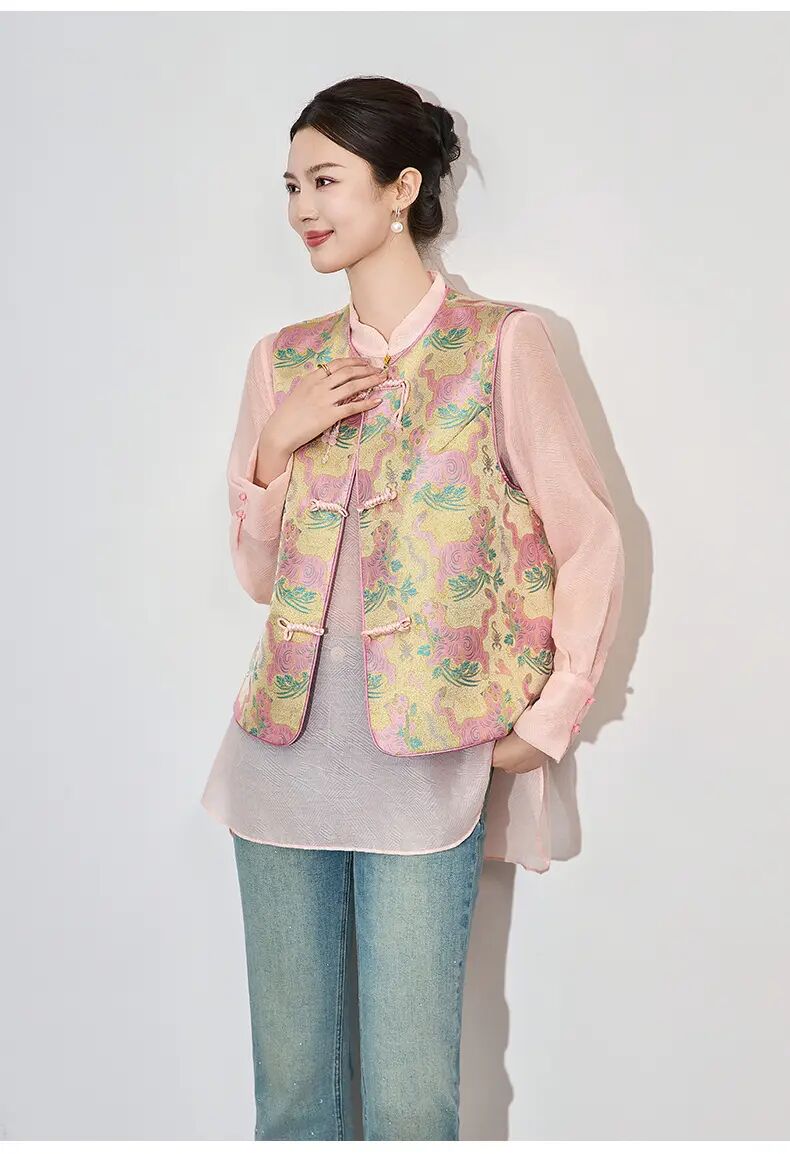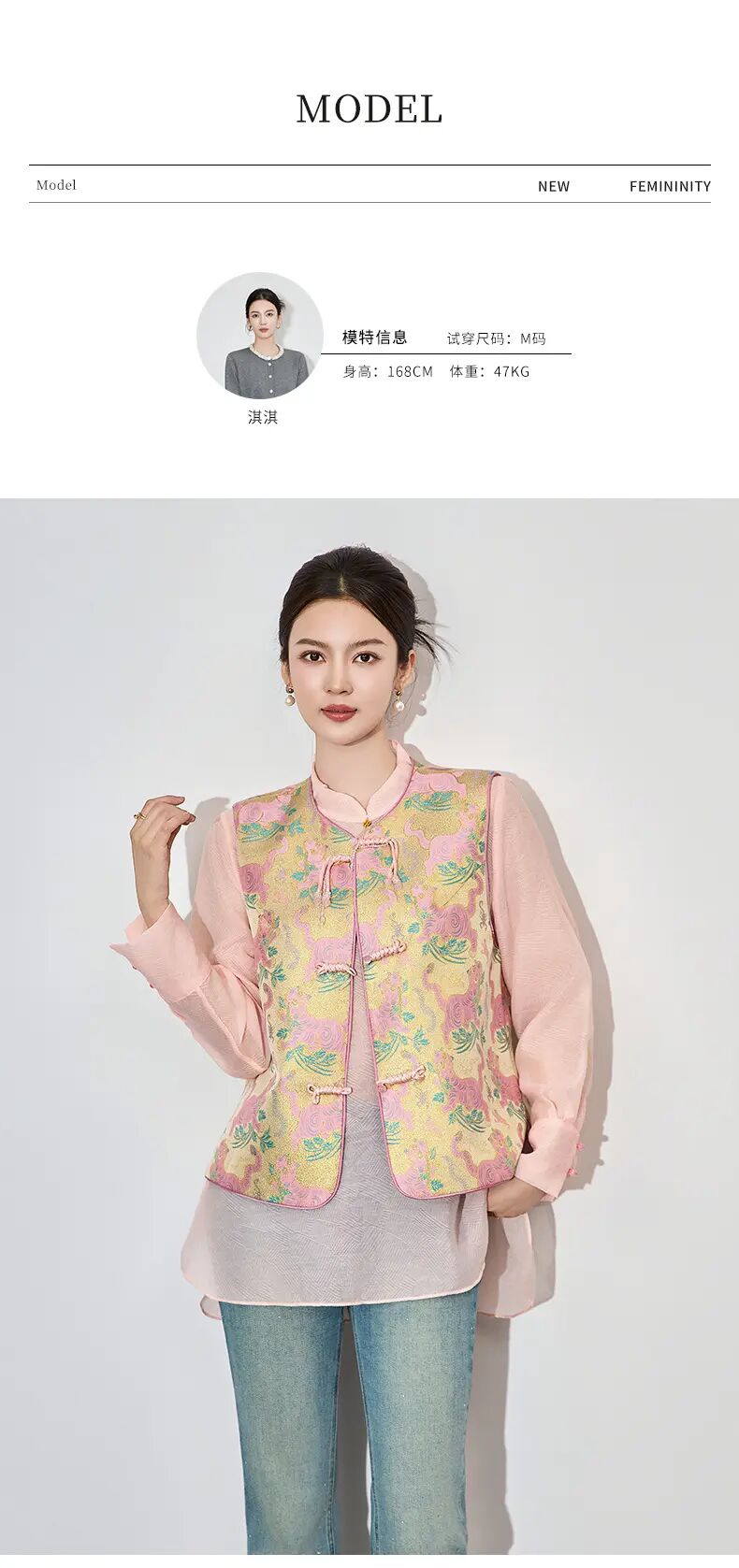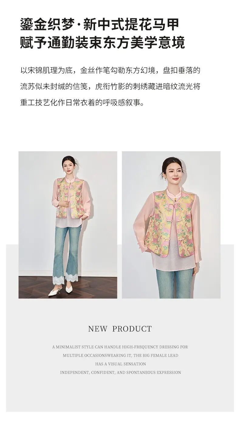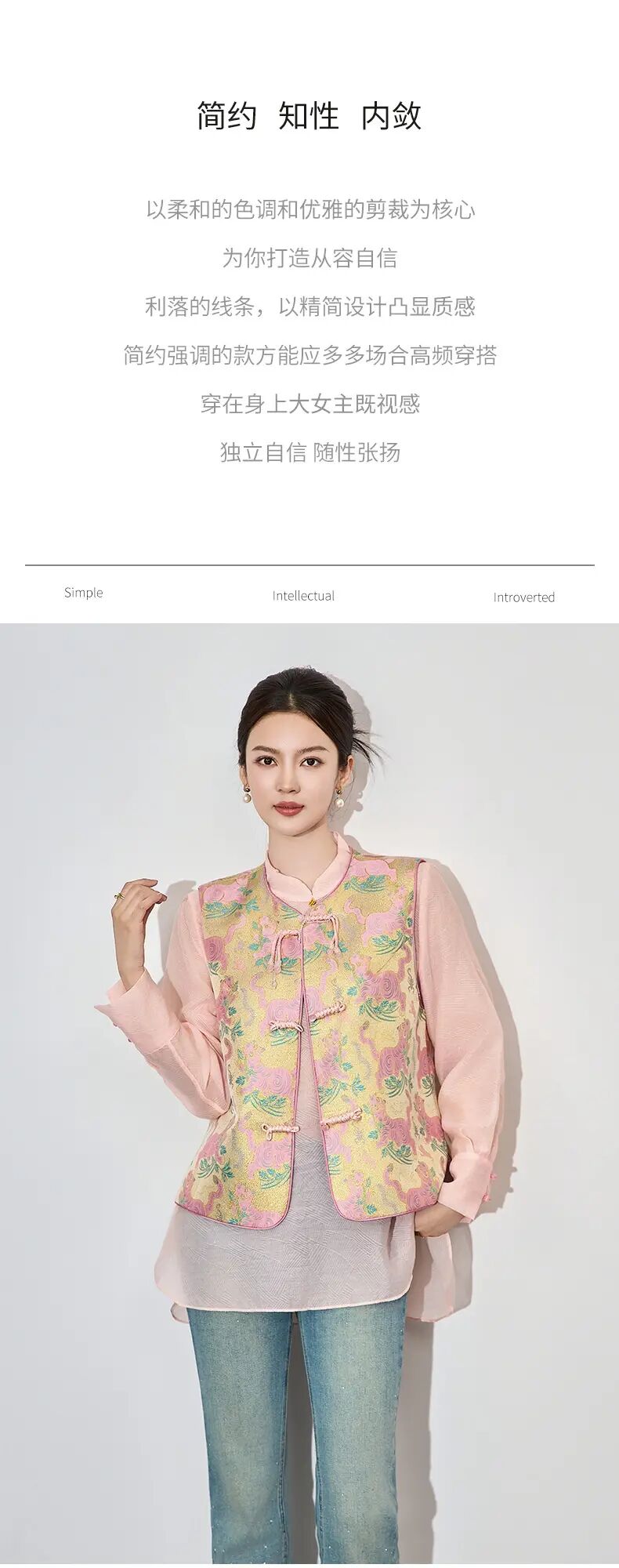 【高货wl】全新升级【铂金会员321/天猫429/差价108】(10506) 洛诗琳轻奢新中式重工金丝提花优雅国风时髦女马甲外套