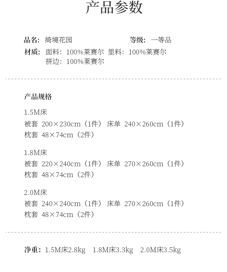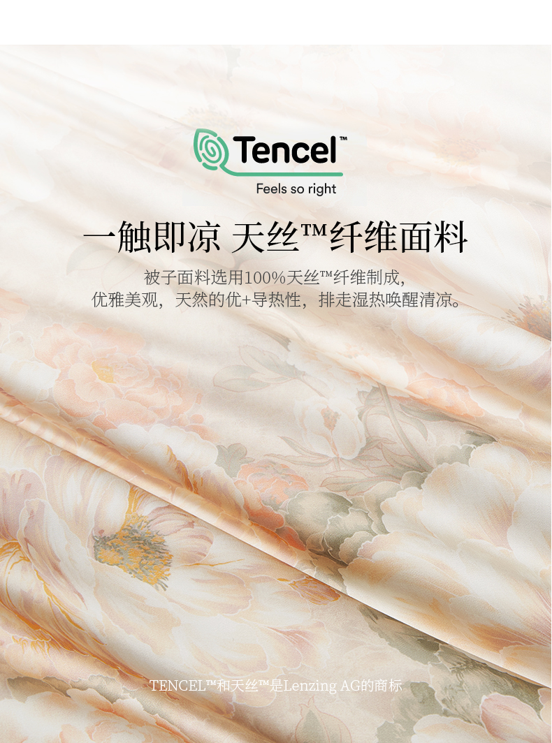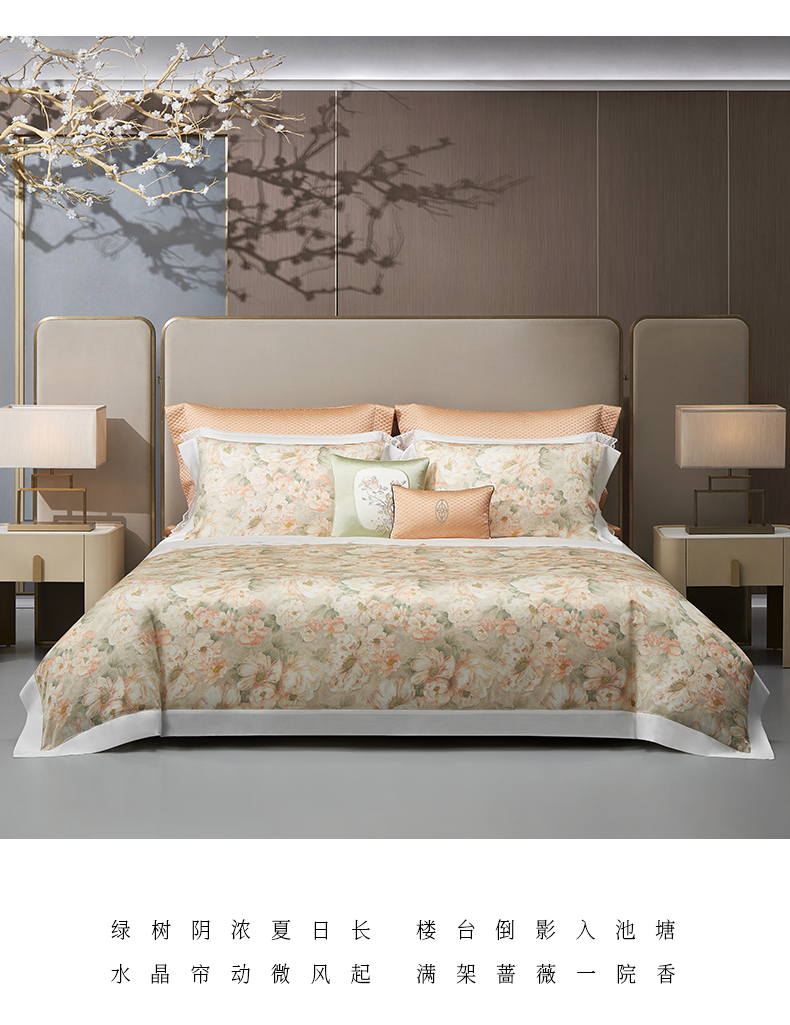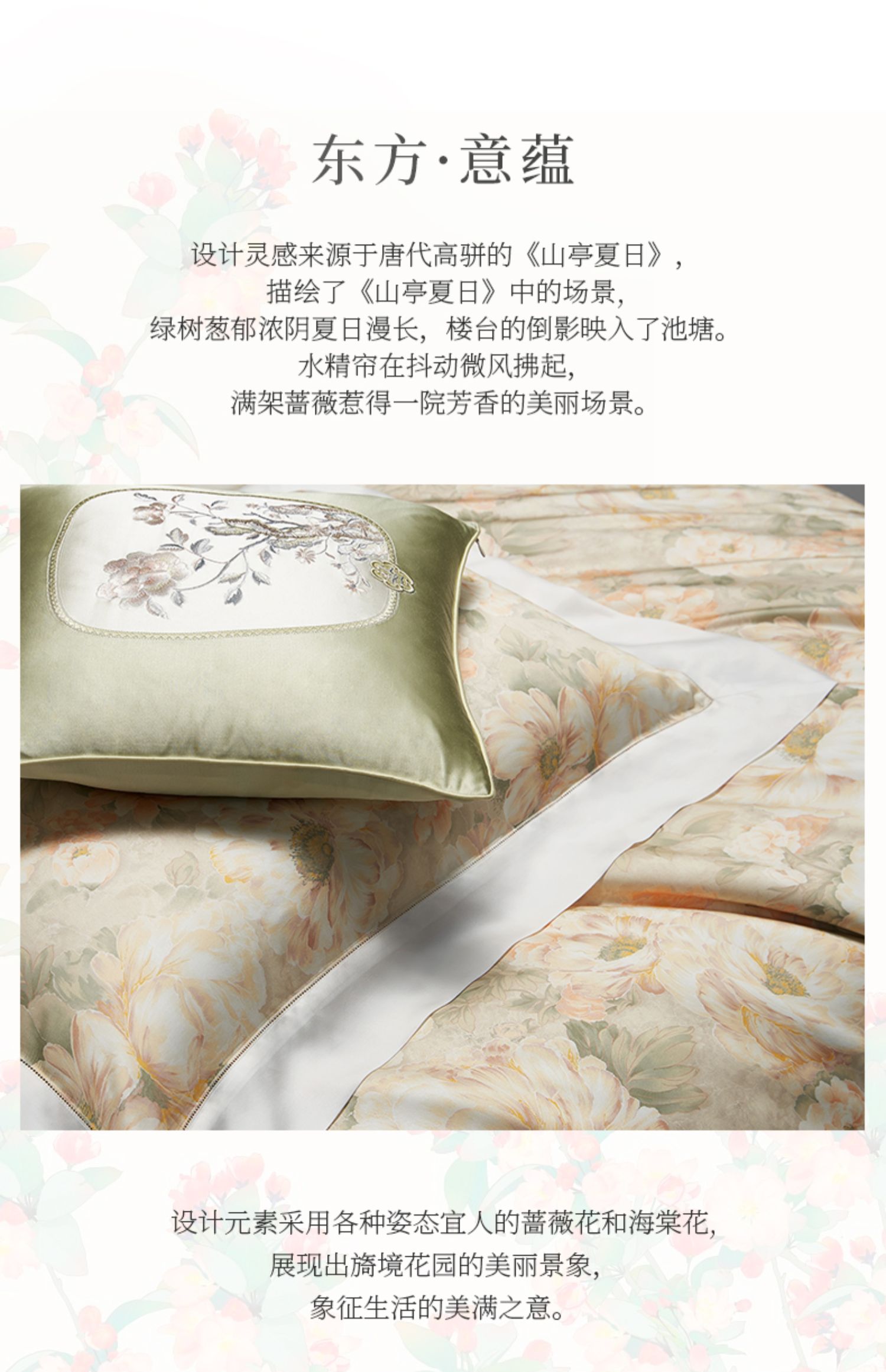 whinny/惠谊 新中式清新莱赛尔纤维滑爽天丝™印花四件套 绮境花园