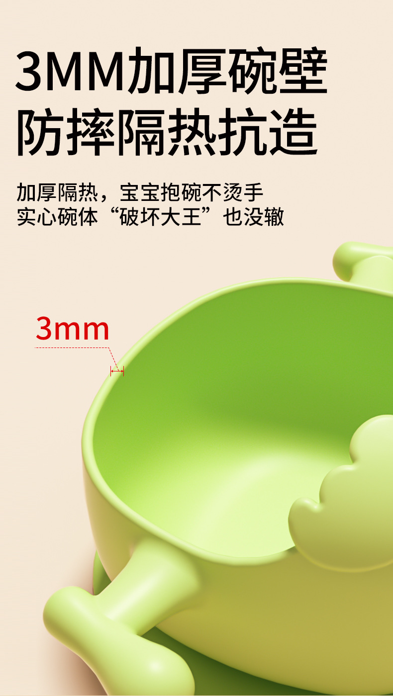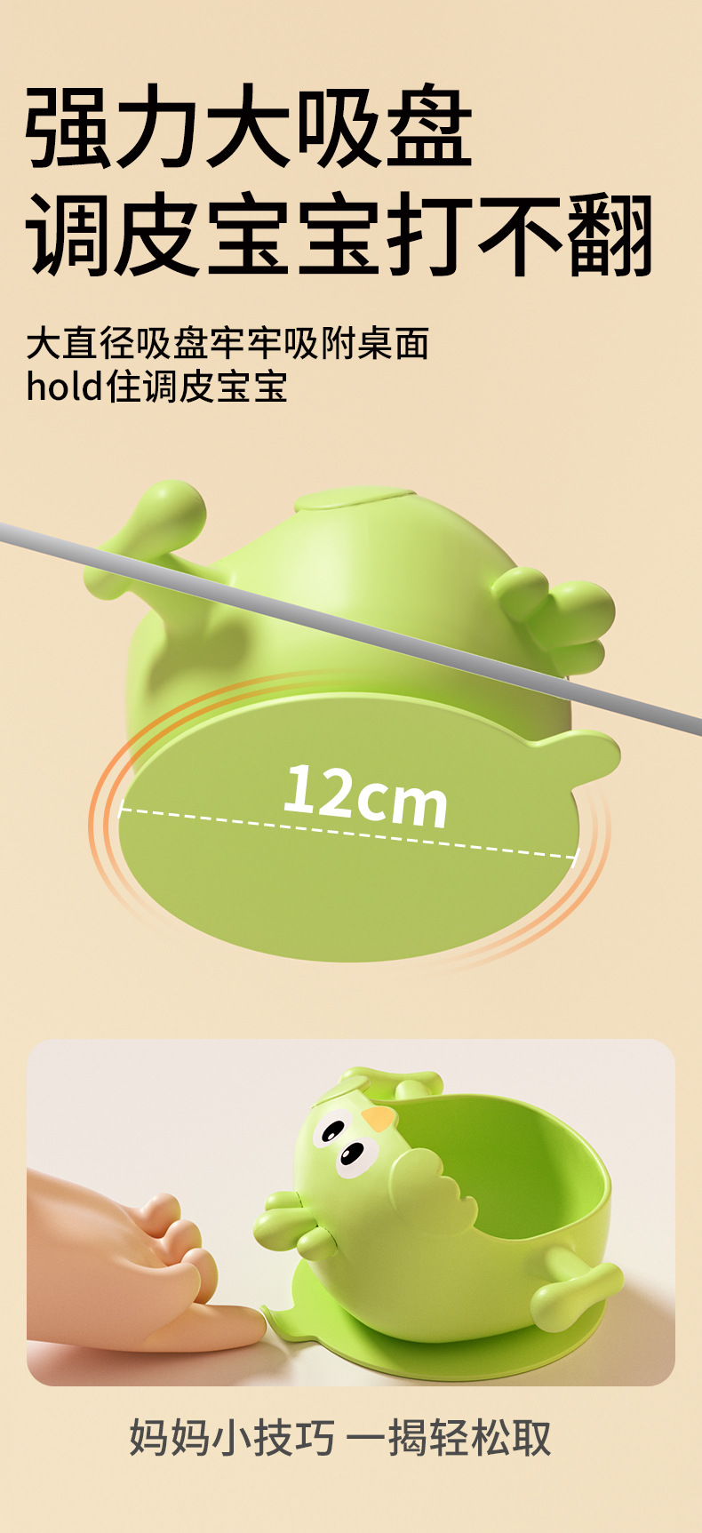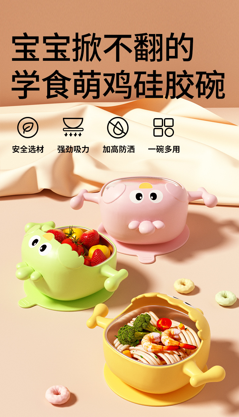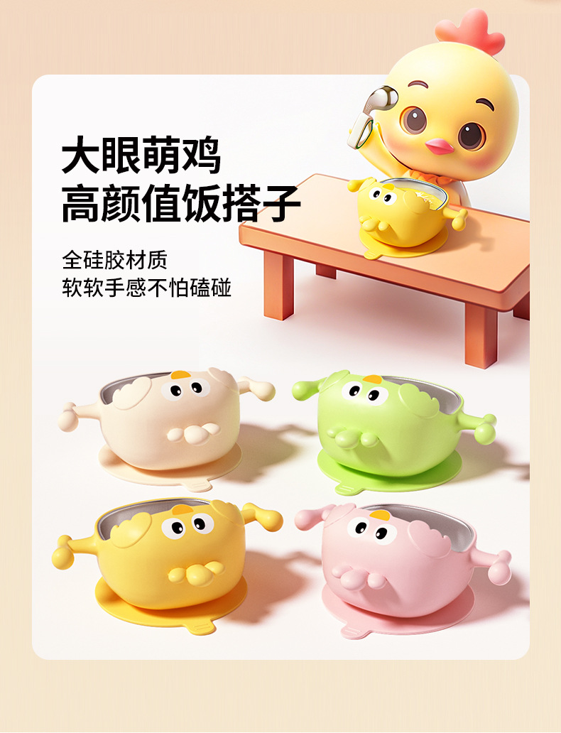 【宝宝掀不翻的,学食萌鸡硅胶碗~】宝宝辅食碗 婴儿专用吸盘碗 硅胶防摔防烫 自主进食儿童餐具-QQ