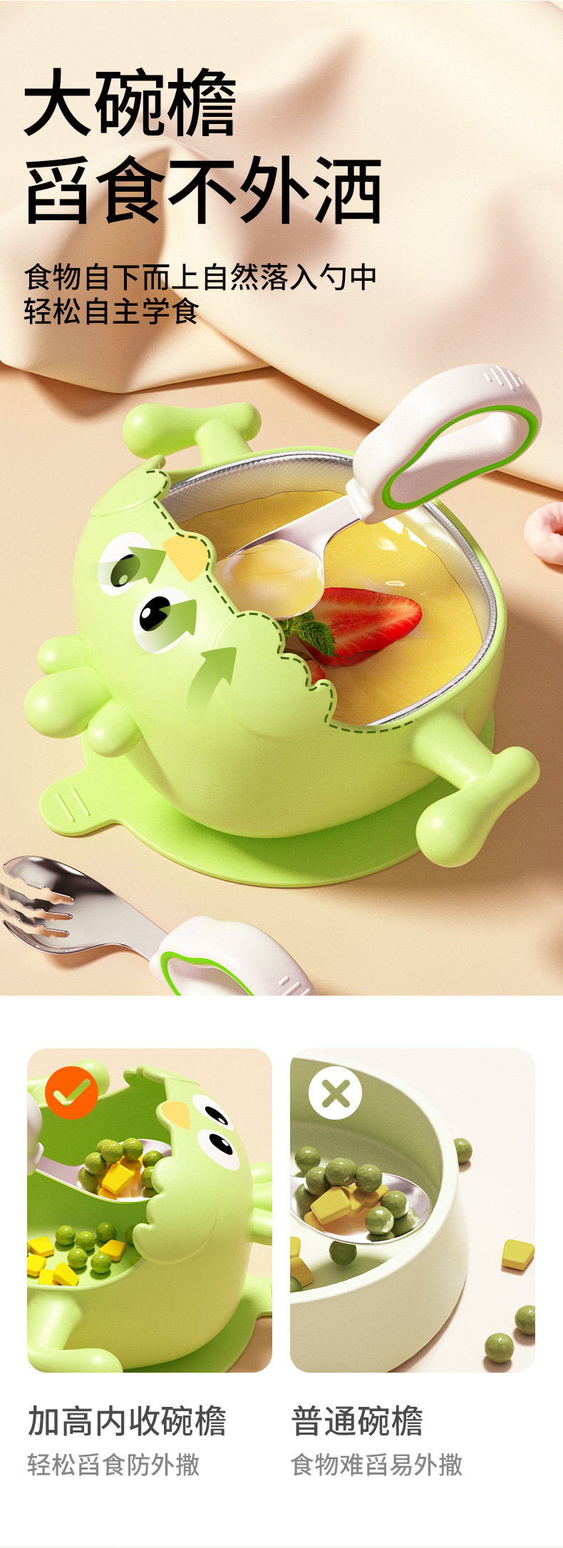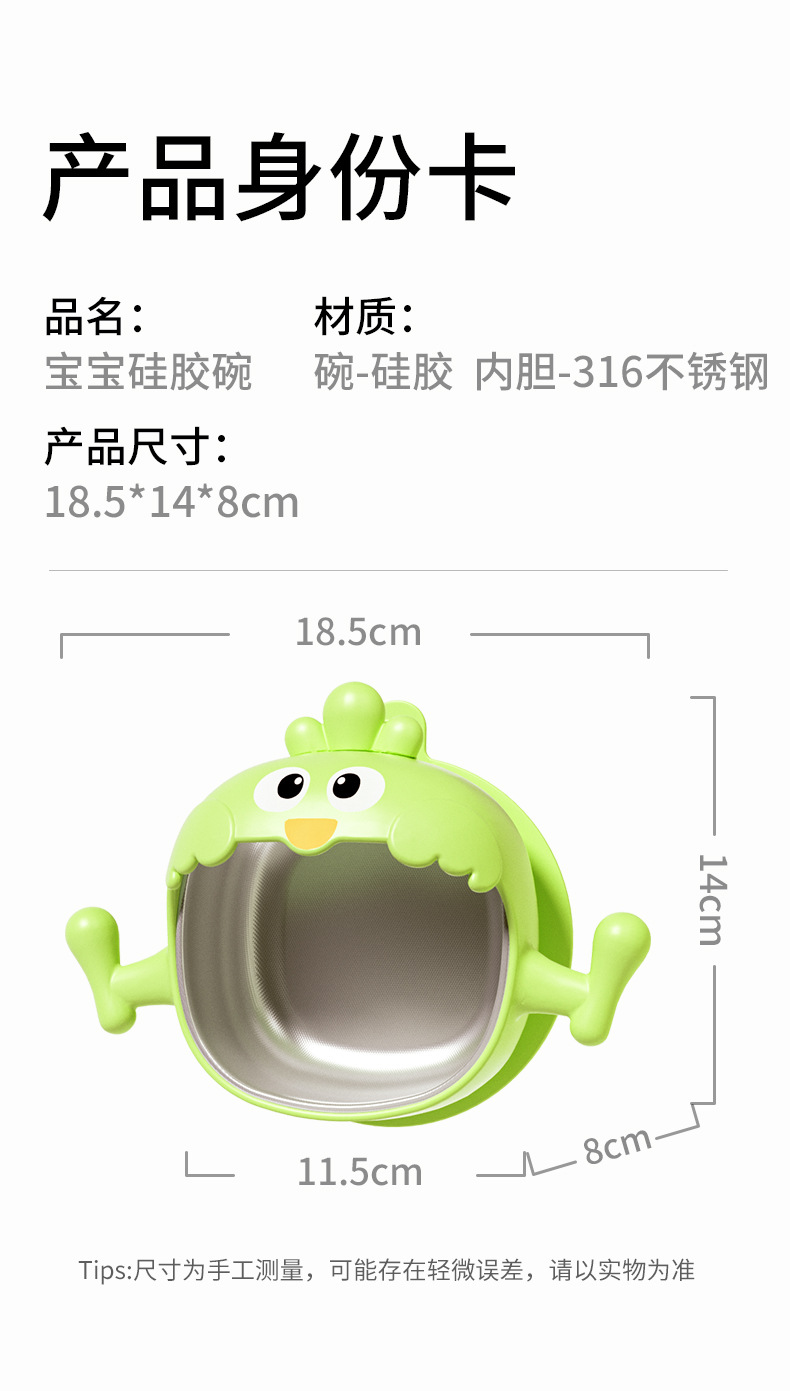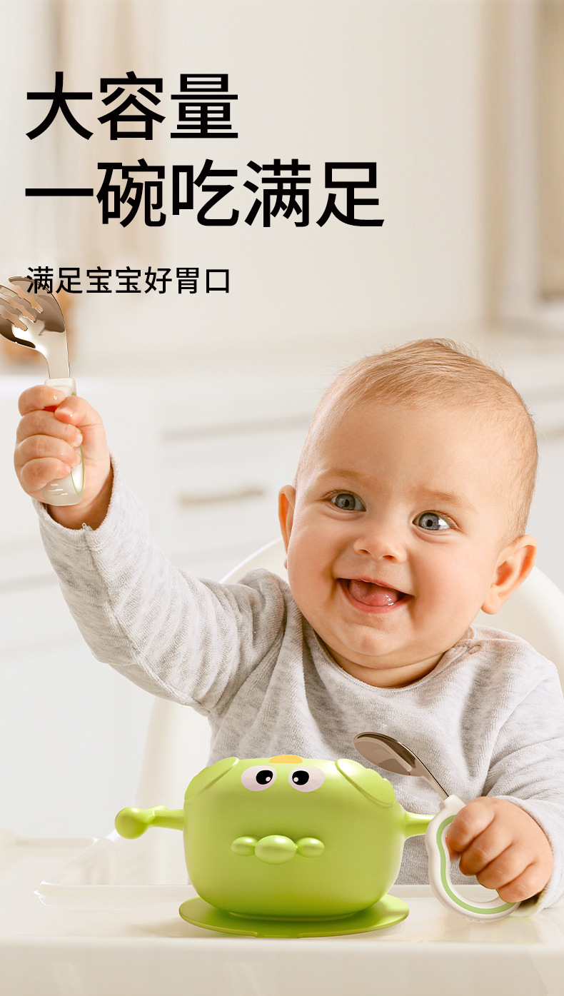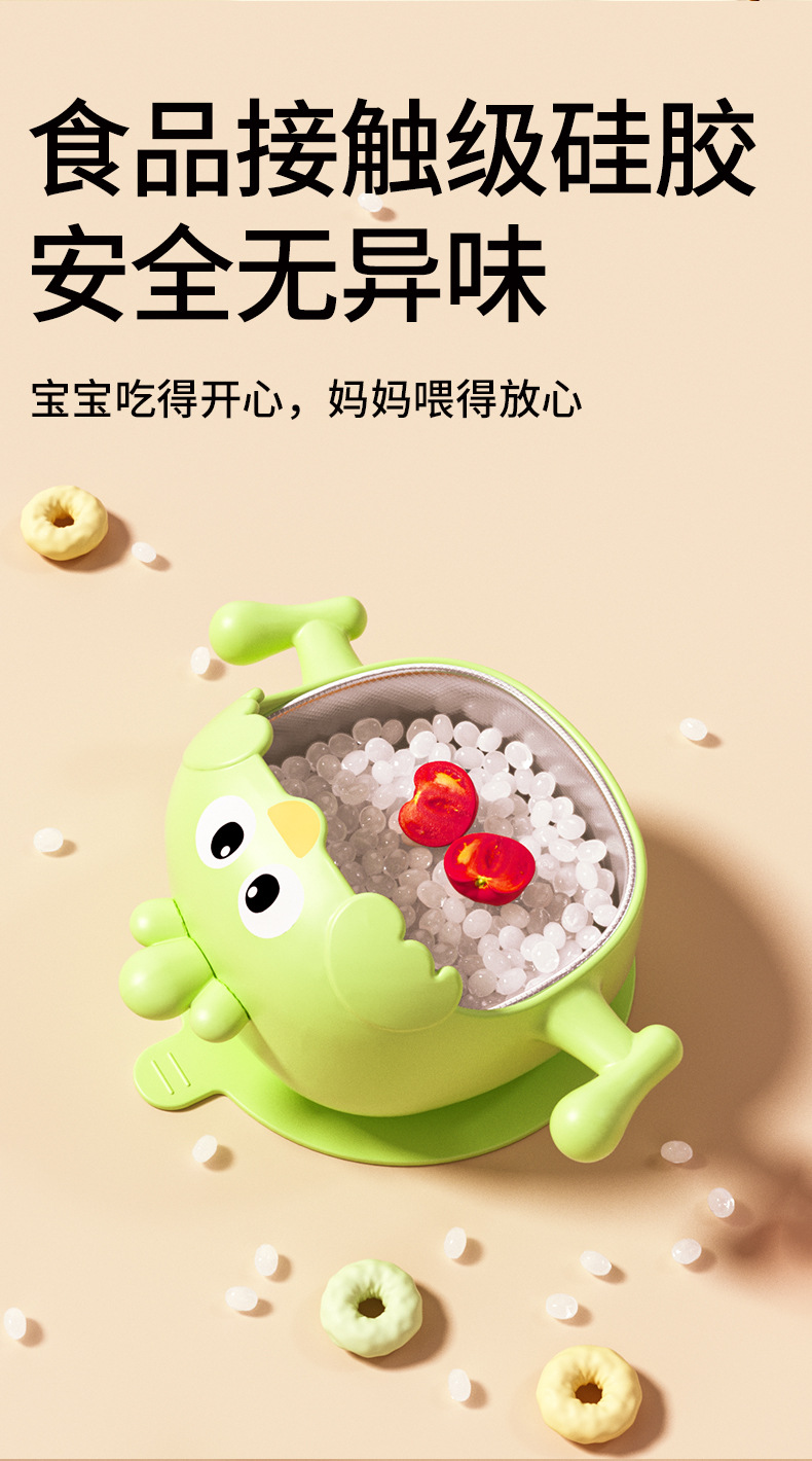 【宝宝掀不翻的,学食萌鸡硅胶碗~】宝宝辅食碗 婴儿专用吸盘碗 硅胶防摔防烫 自主进食儿童餐具-QQ