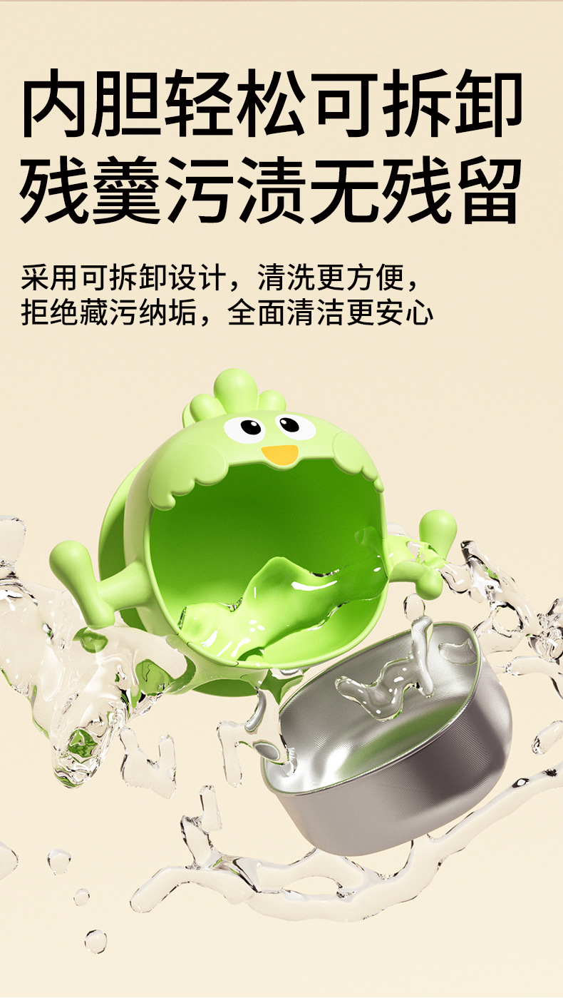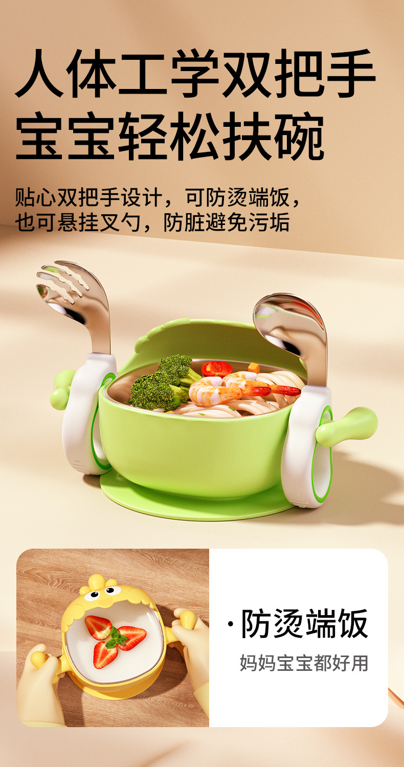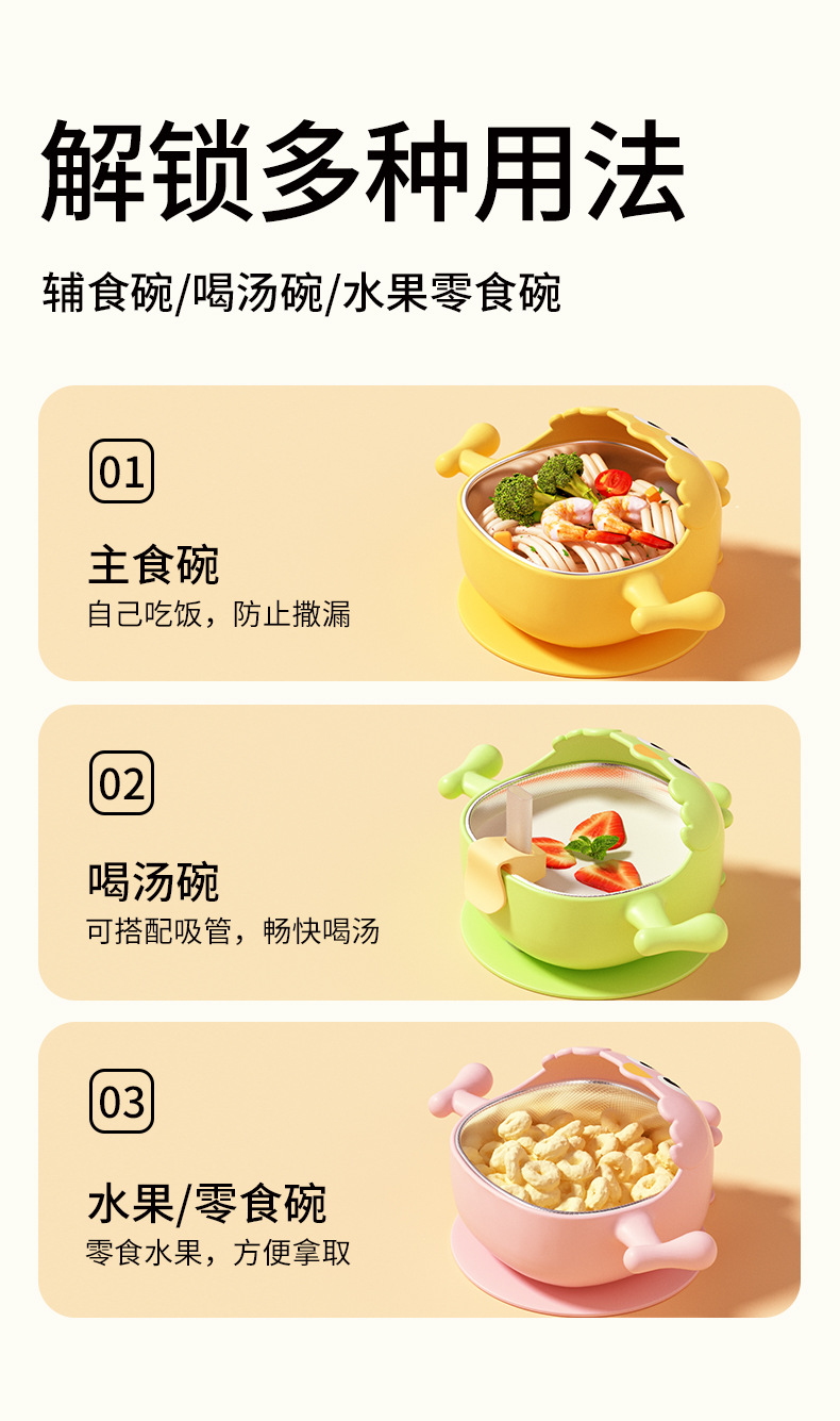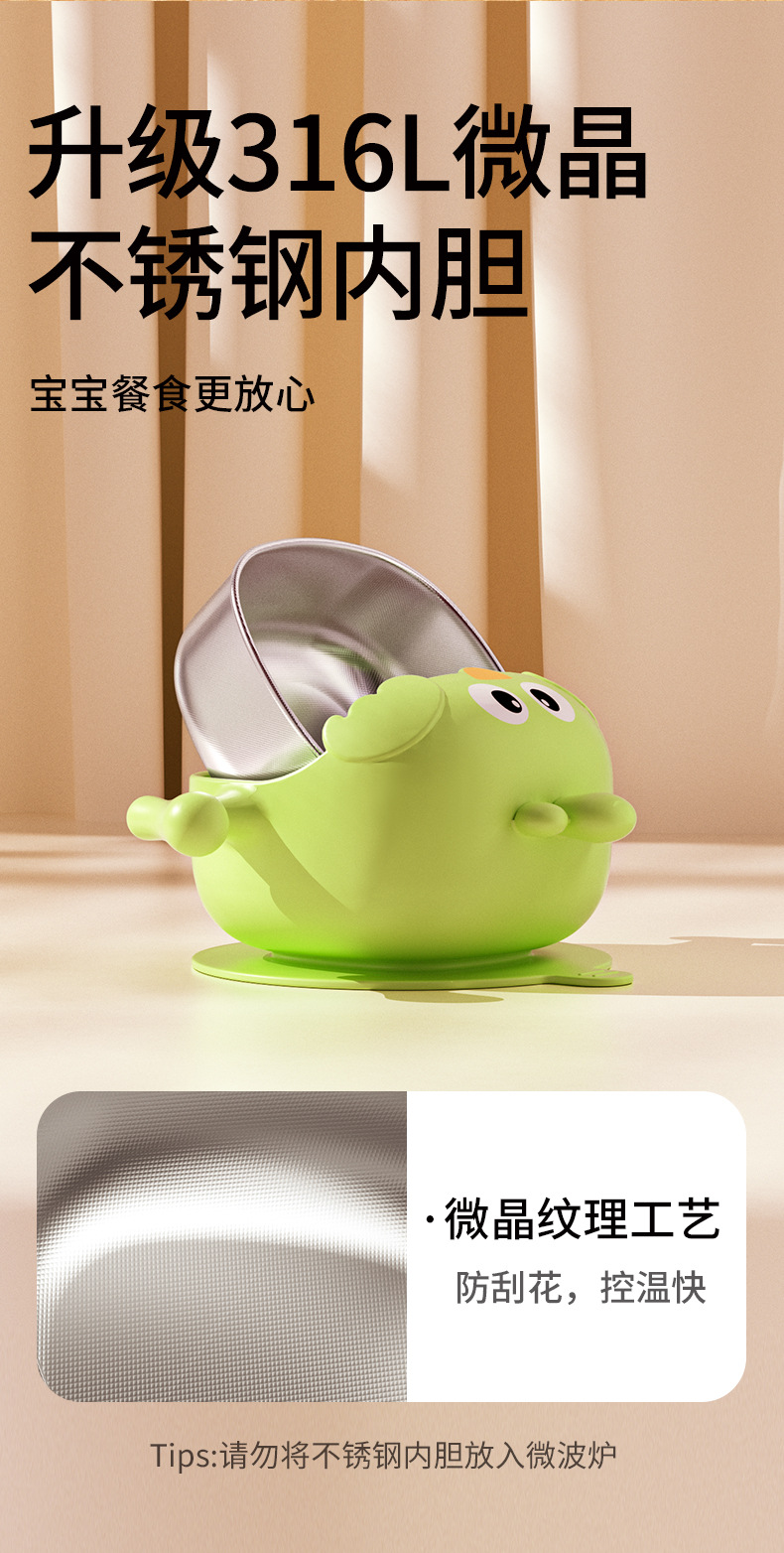 【宝宝掀不翻的,学食萌鸡硅胶碗~】宝宝辅食碗 婴儿专用吸盘碗 硅胶防摔防烫 自主进食儿童餐具-QQ