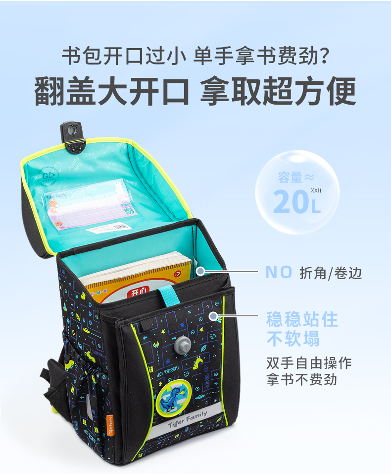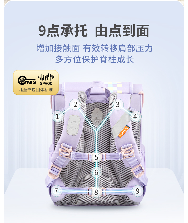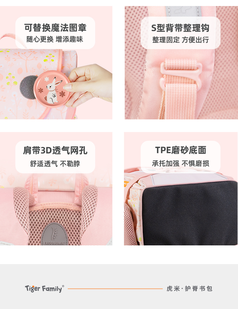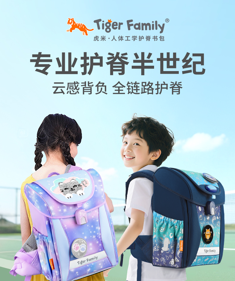 Tiger Family虎米 1-5年级小学生儿童书包护脊减负女孩新款男童背包学院风