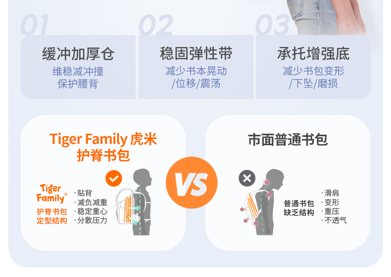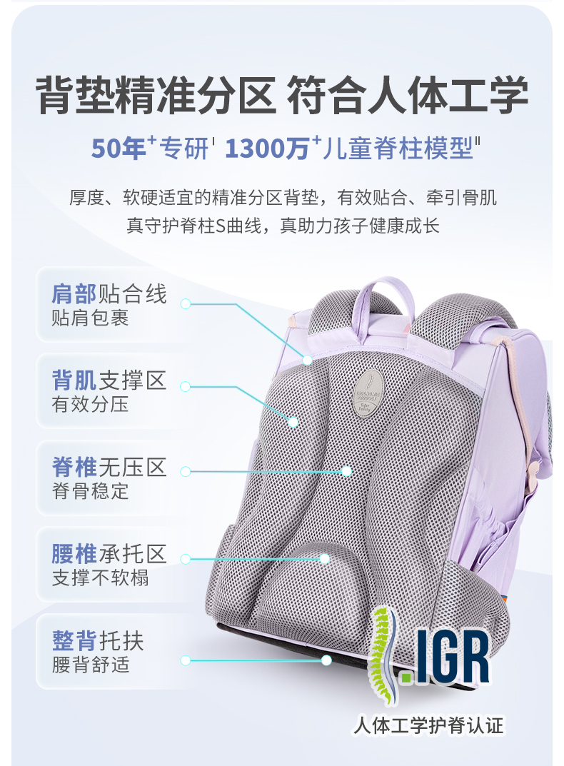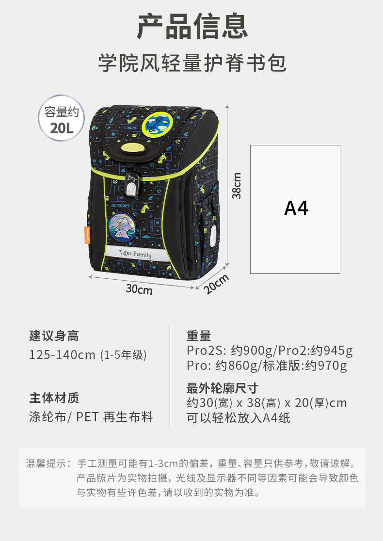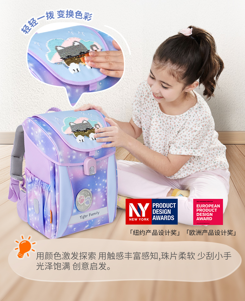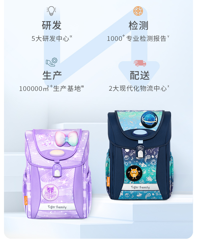 Tiger Family虎米 1-5年级小学生儿童书包护脊减负女孩新款男童背包学院风
