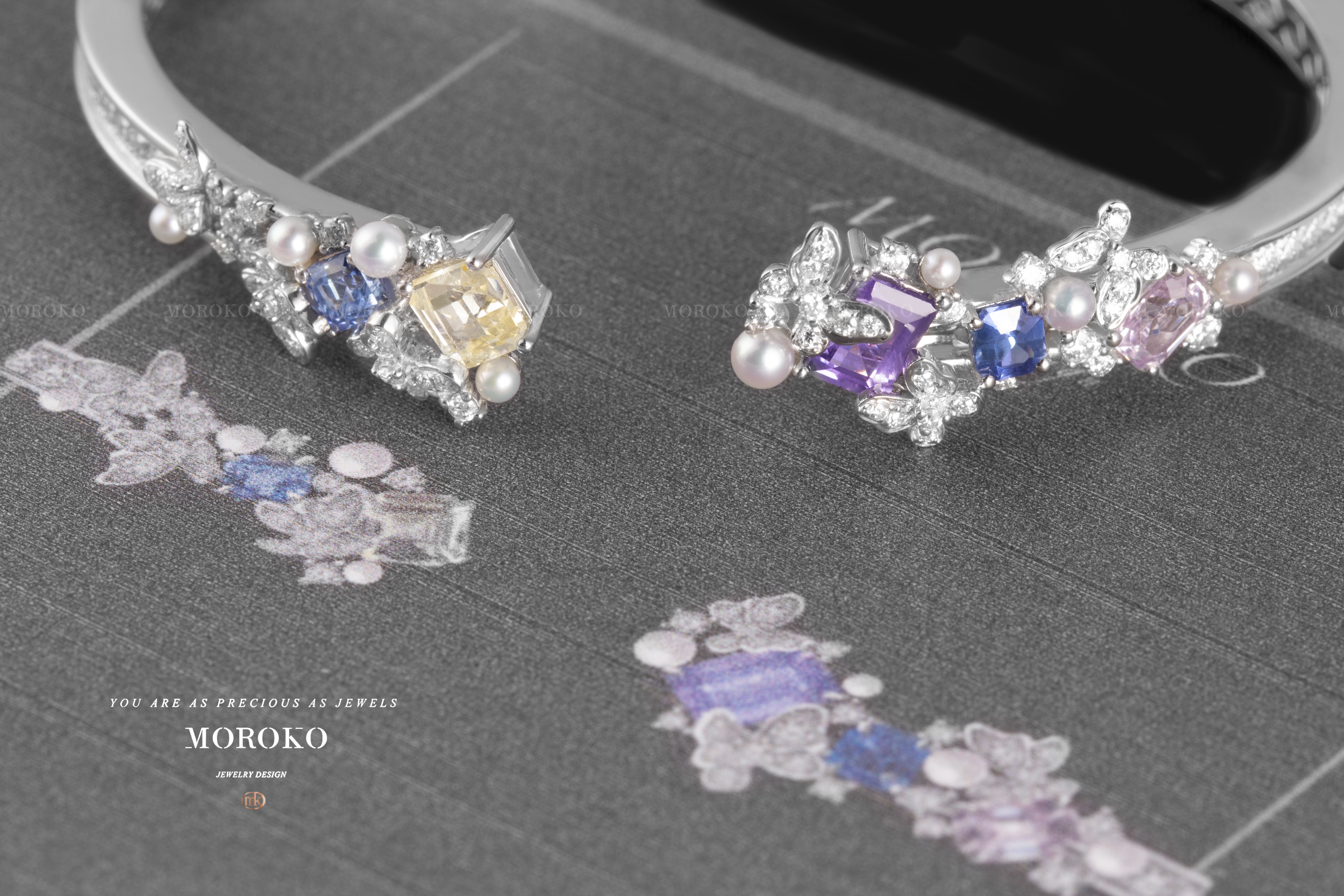 随手将蓝宝石撒在桌子上,色调的丰盈,便激发出设计灵感