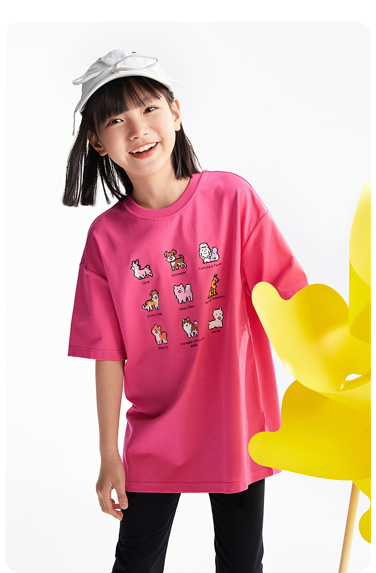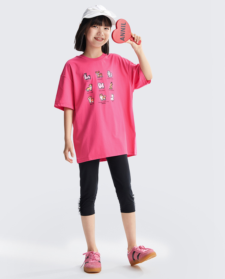 女童SORONA凉感圆领短袖针织衫夏季新款安奈儿童装EG621700