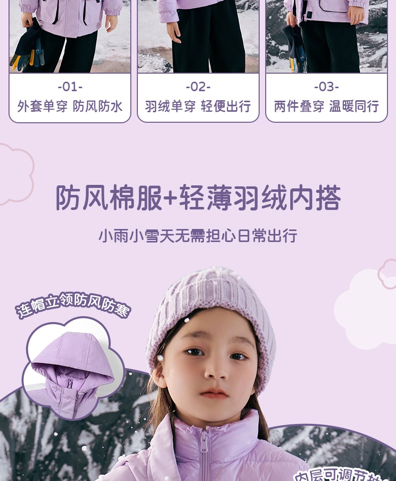 【秒】【LAVI】男女童羽绒服冬季新款中长款连帽两件套加厚儿童外套