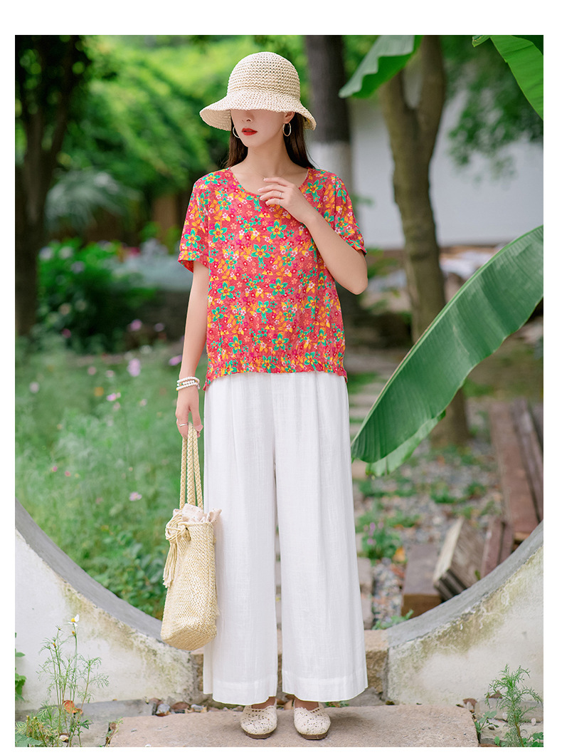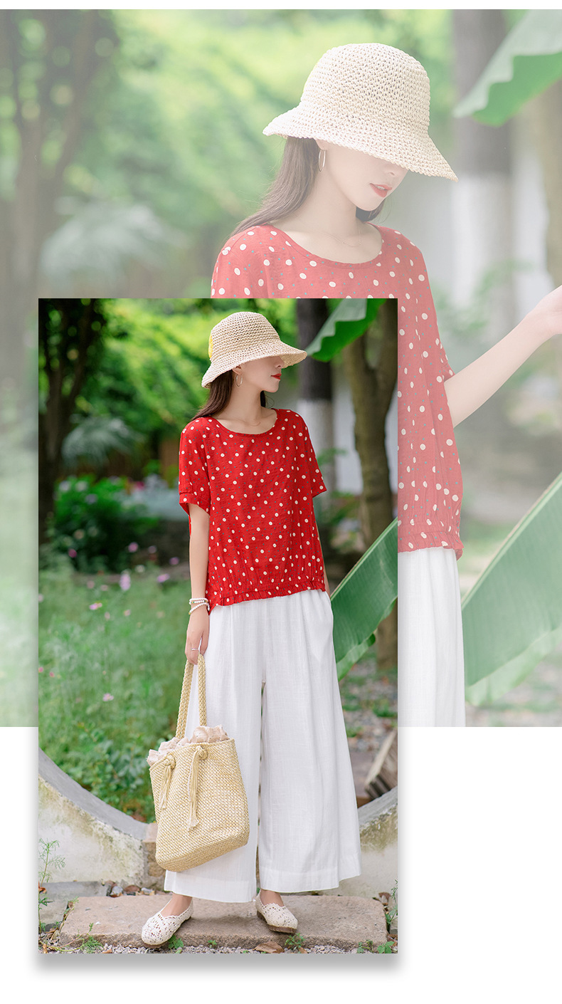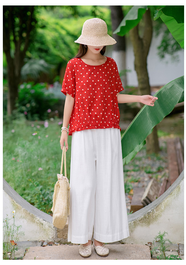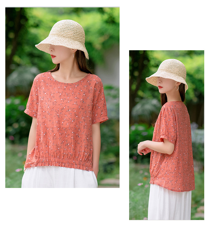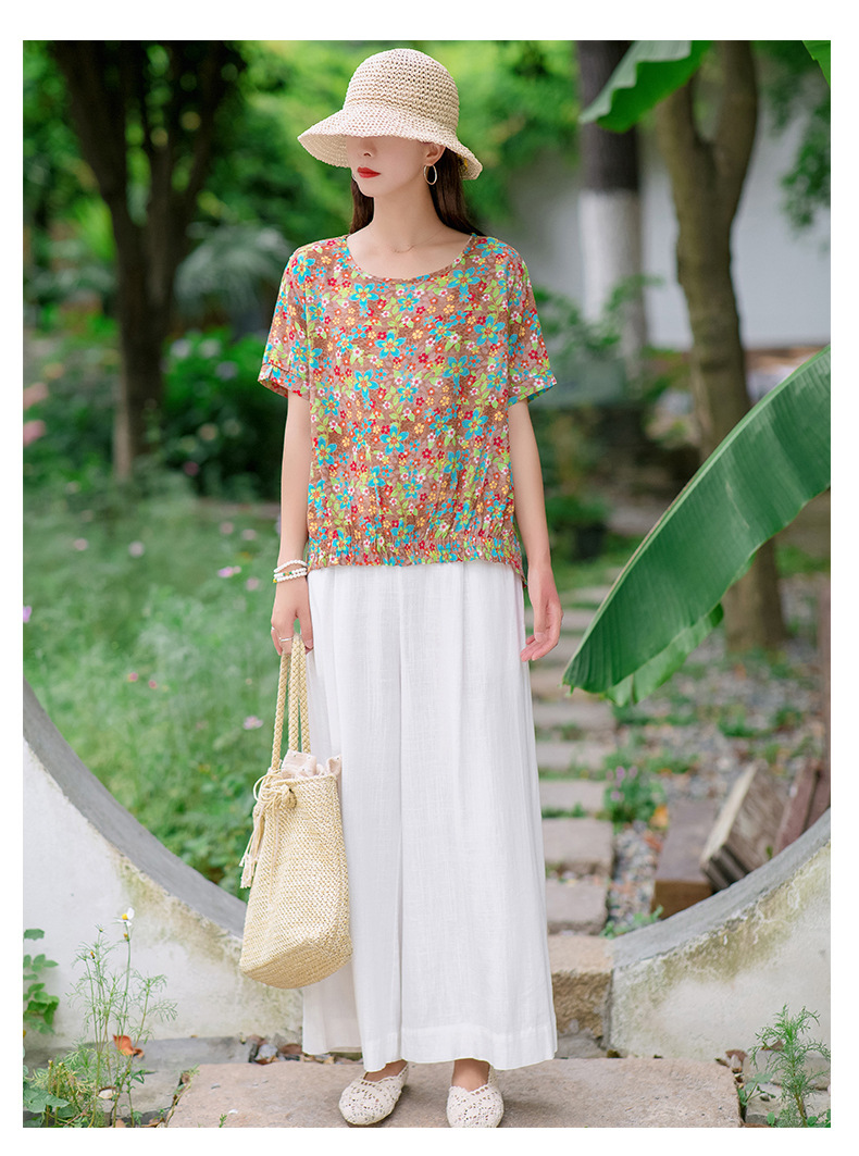 MQ-1918-A809夏新款民族风圆领宽松格子条纹短袖棉麻t恤YY